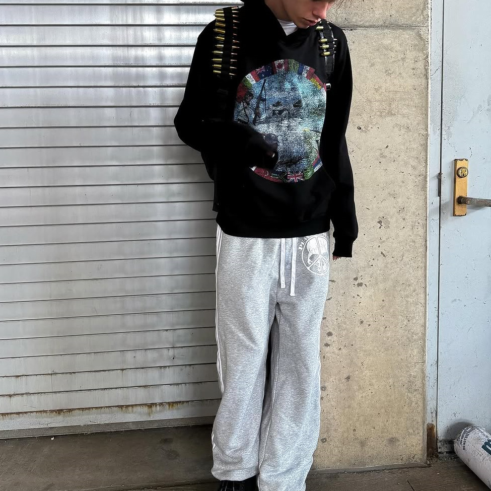 유럽과 미국의 도매 맞춤형 프린트 스웨트 셔츠와 스웨트 팬츠 긴팔 풀오버 후드 슈트 복고풍 재킷 스트리트 트렌드스토어 가기
