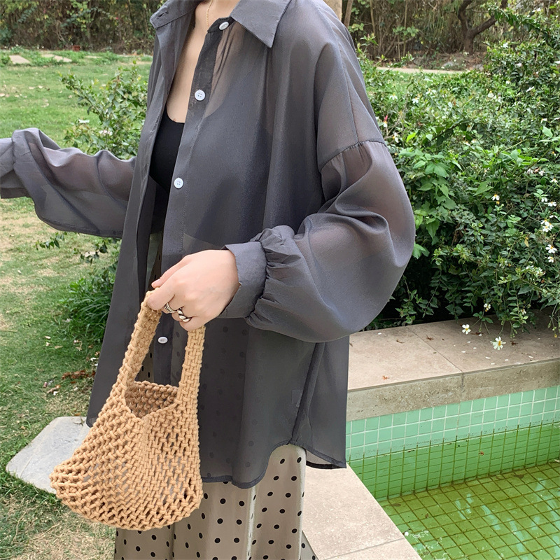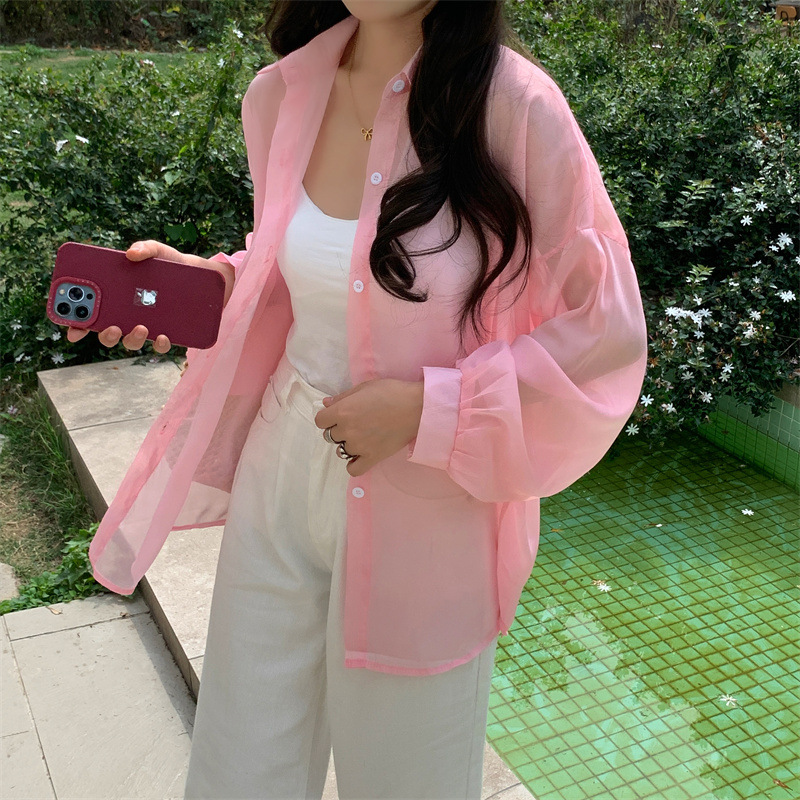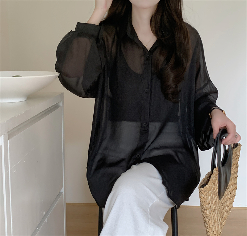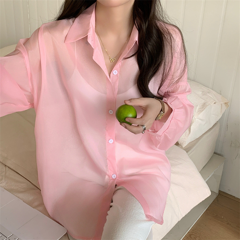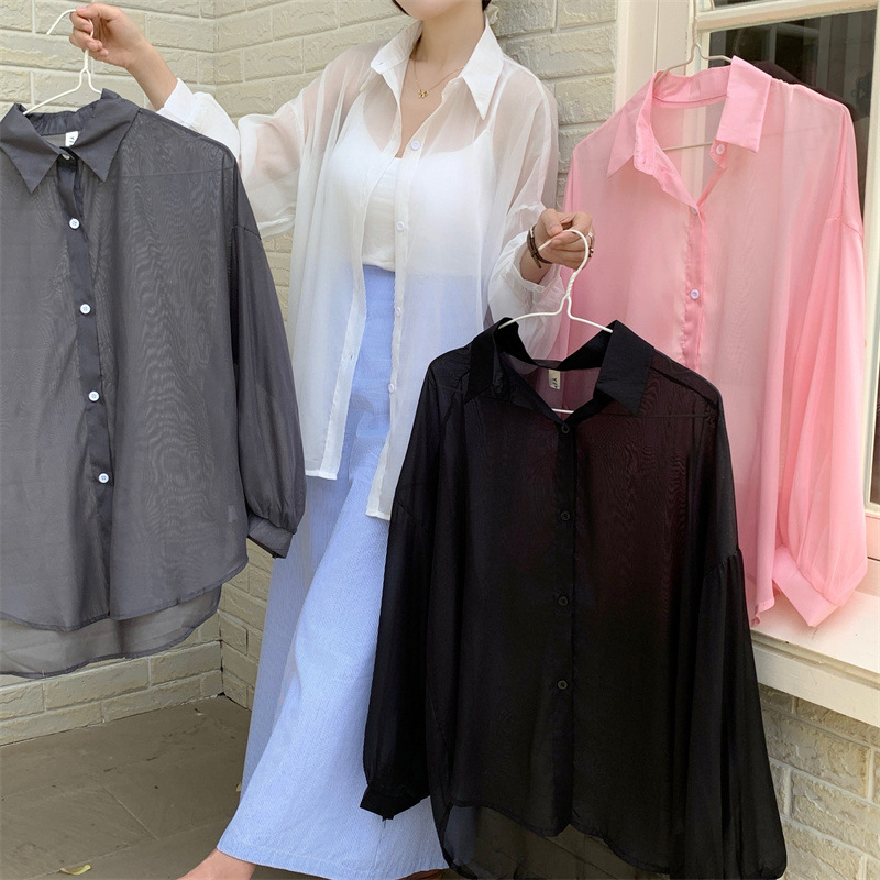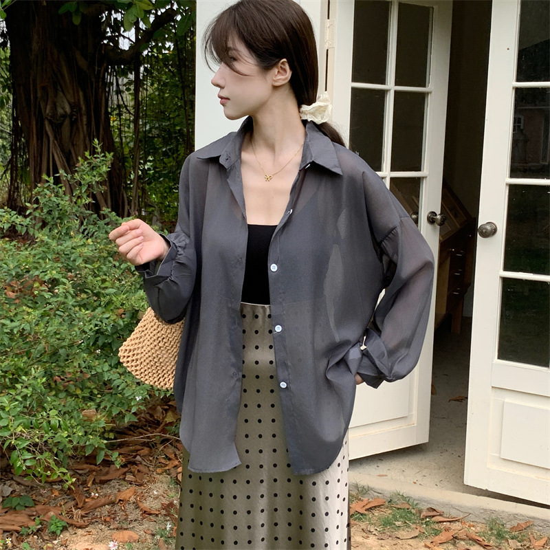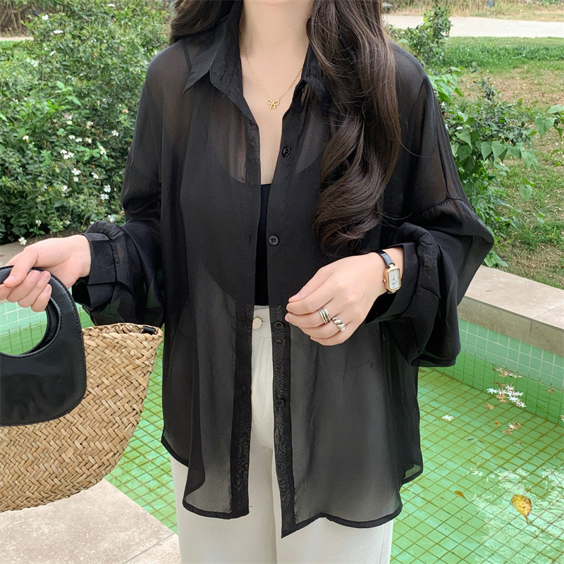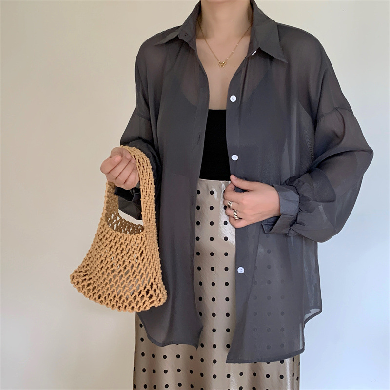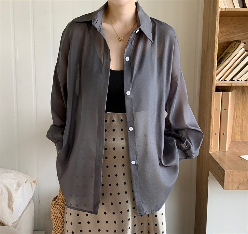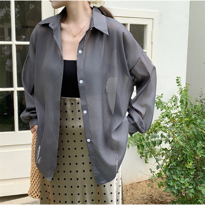 느슨한 플러스 사이즈 선 스크린 긴 소매 셔츠 여성의 여름 얇은 카디건 디자인 센스 밀면 블라우스 셔츠 코트 탑