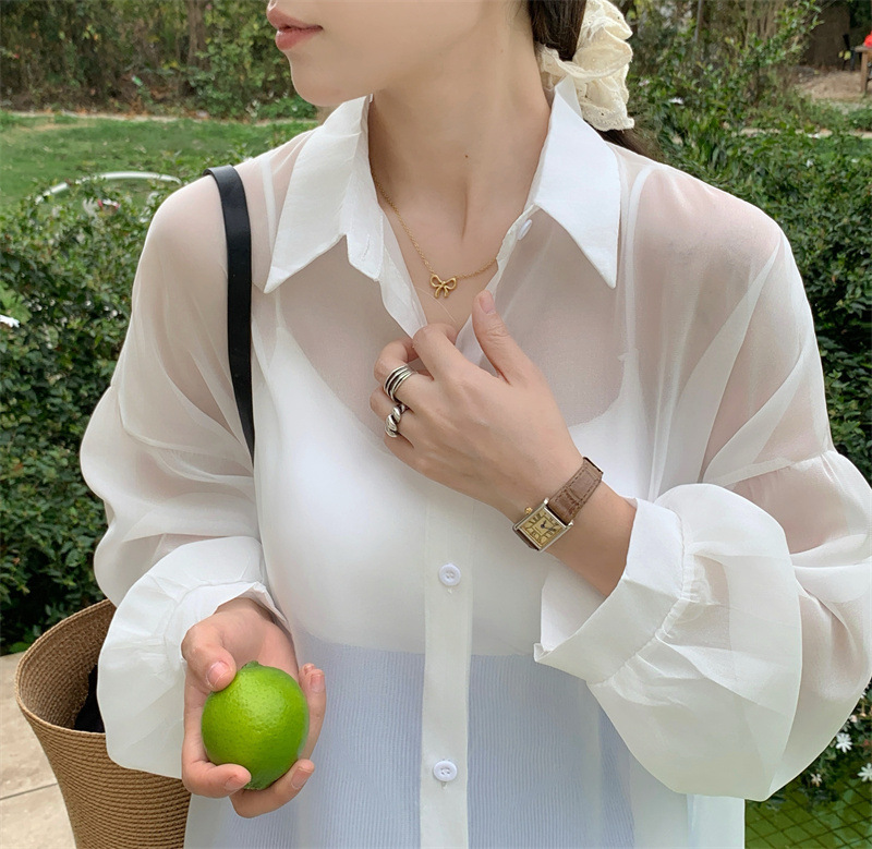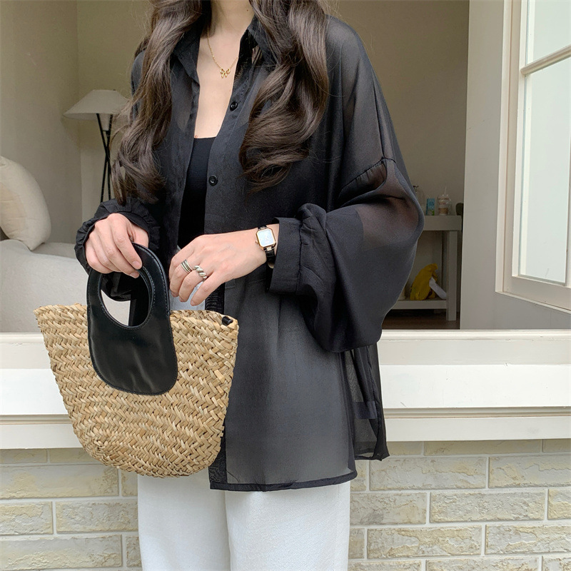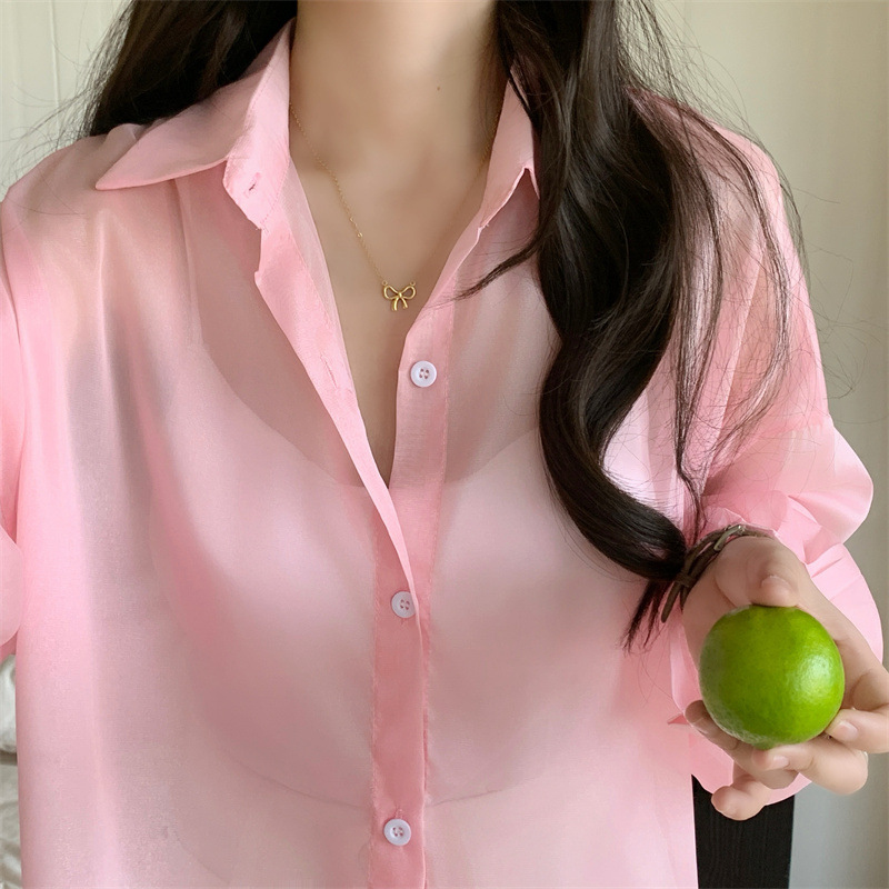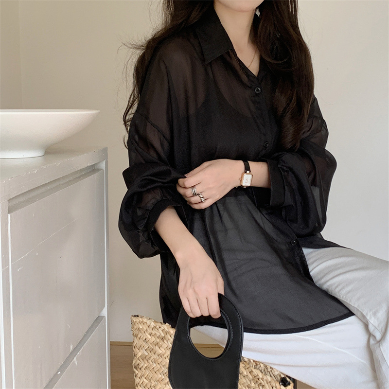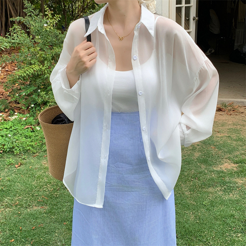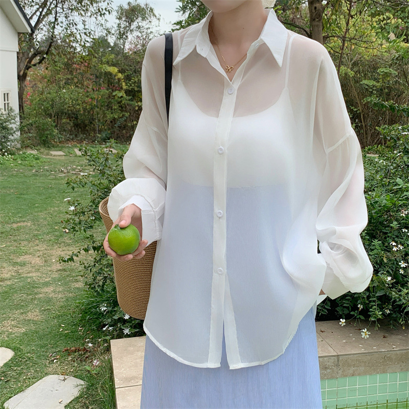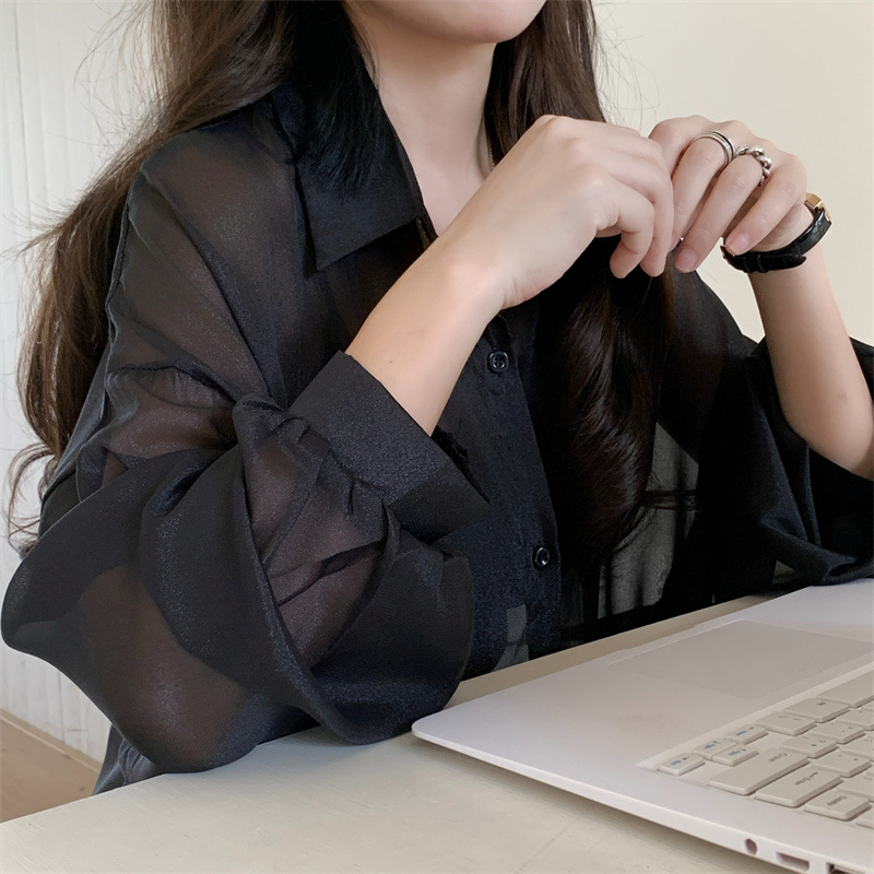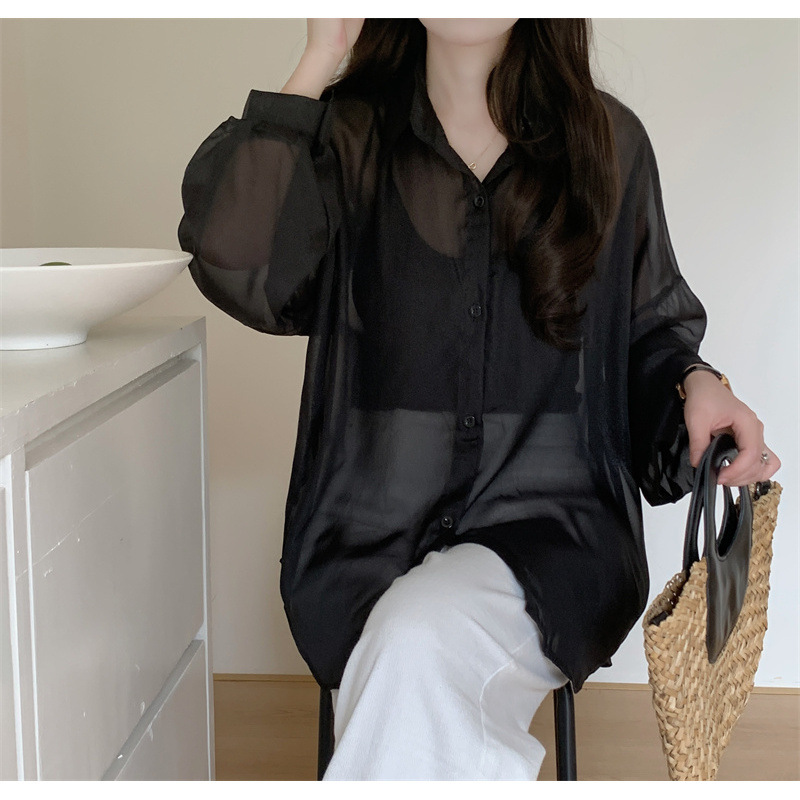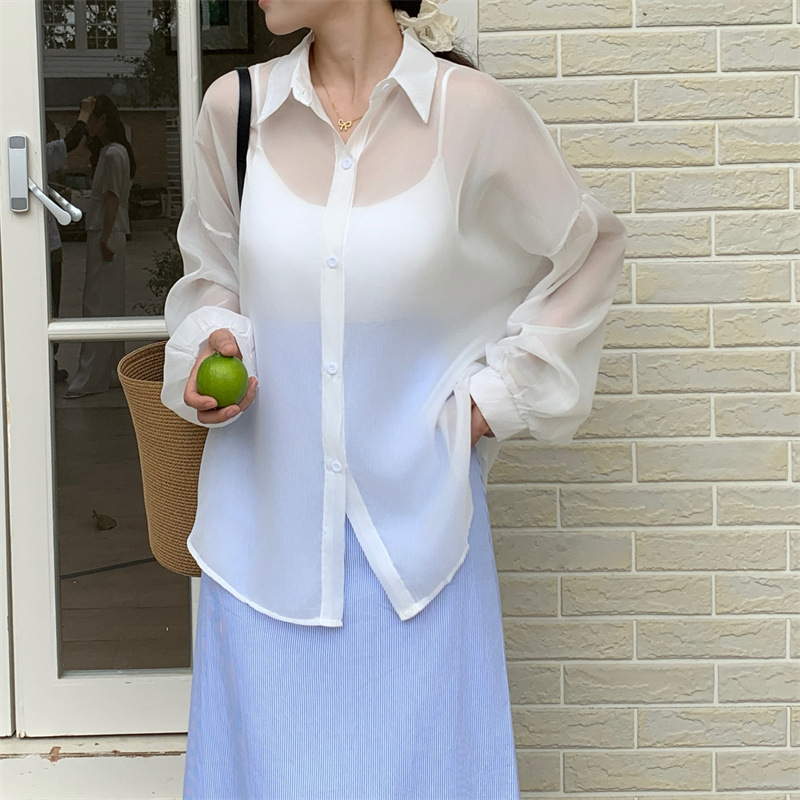 느슨한 플러스 사이즈 선 스크린 긴 소매 셔츠 여성의 여름 얇은 카디건 디자인 센스 밀면 블라우스 셔츠 코트 탑