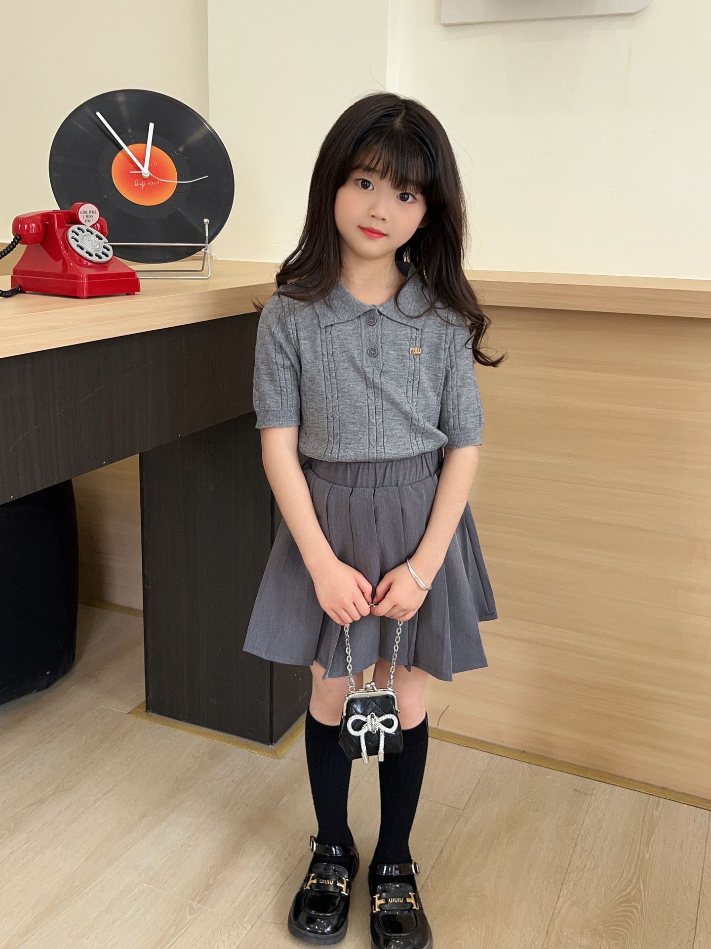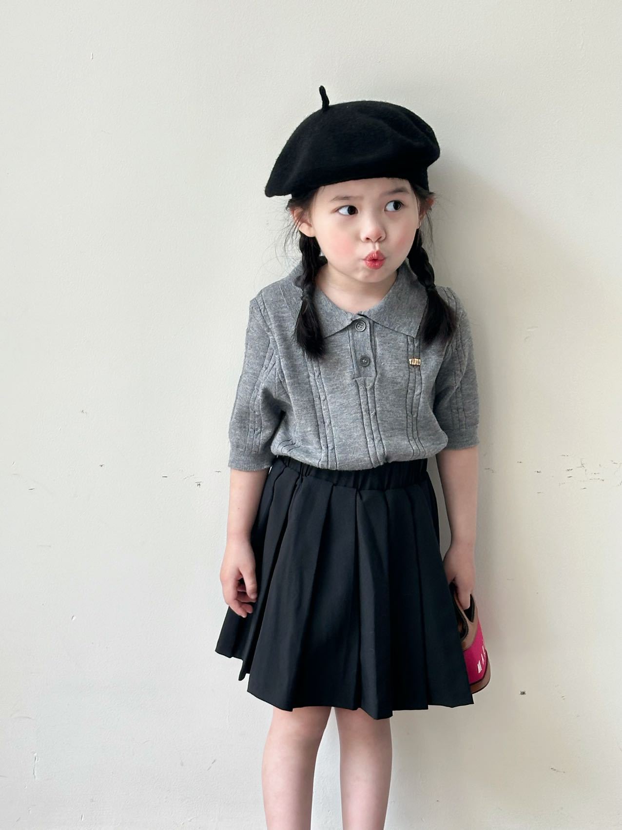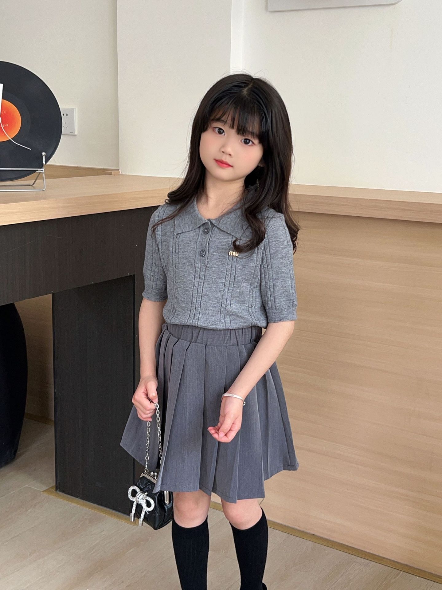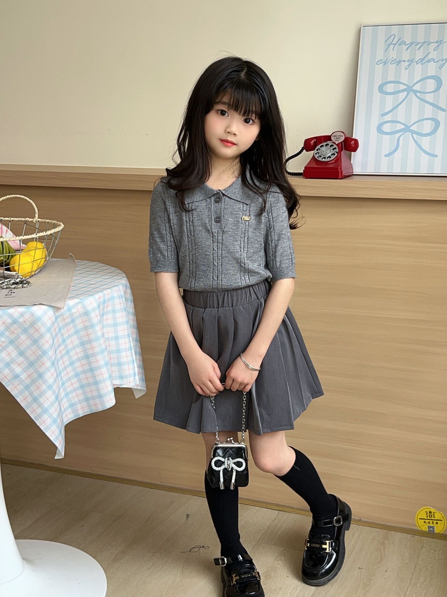 여름 아동용 칼리지 스타일 니트 반팔 폴로 셔츠 스웨터 도매 플리츠 스커트 여아 스커트 아동복 숏 스타일스토어 가기