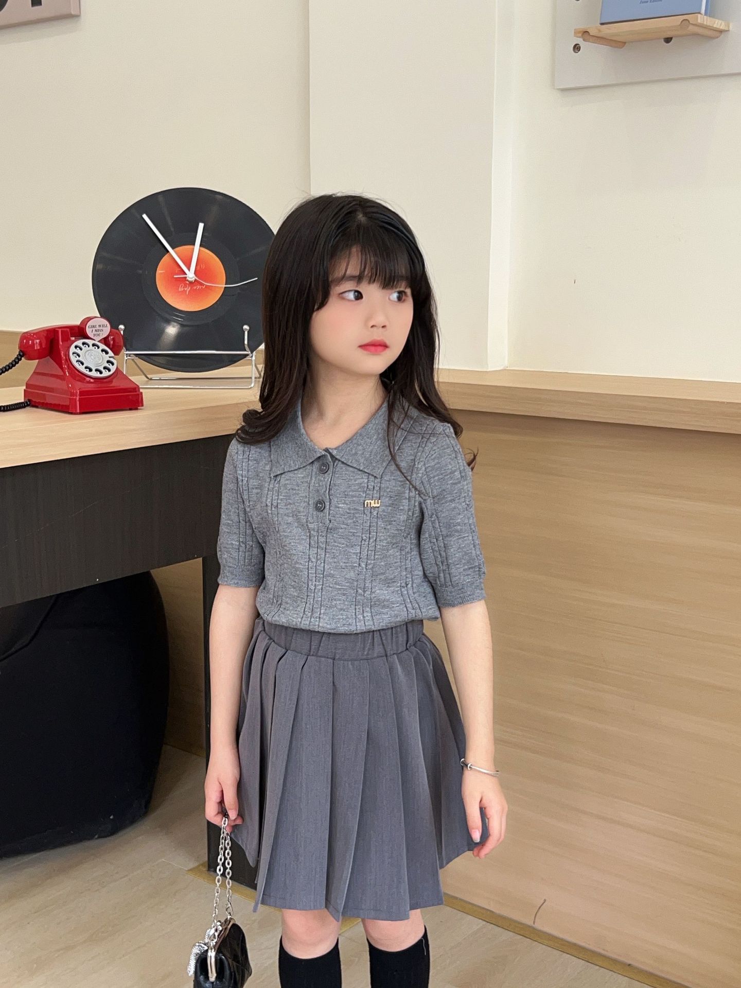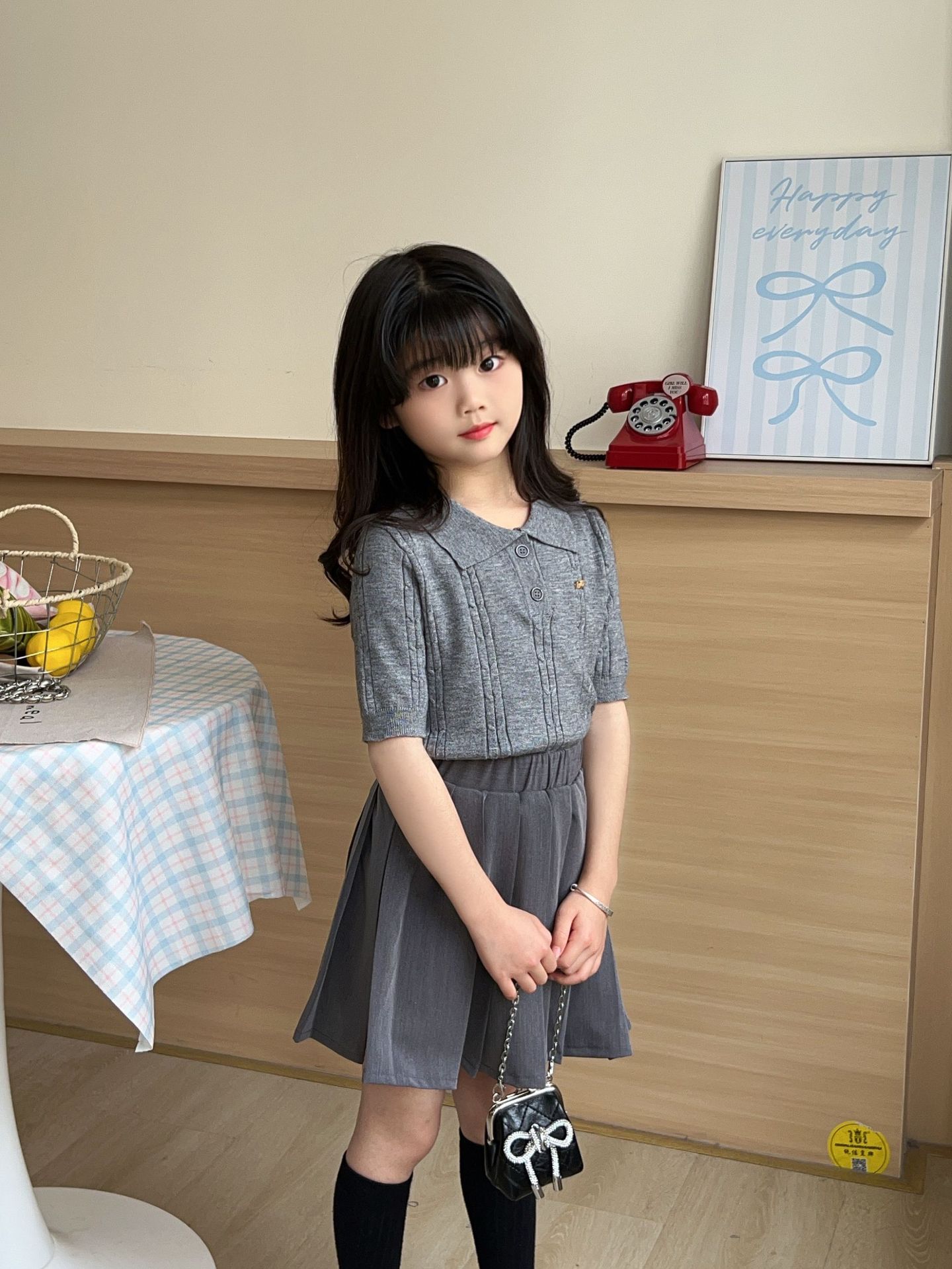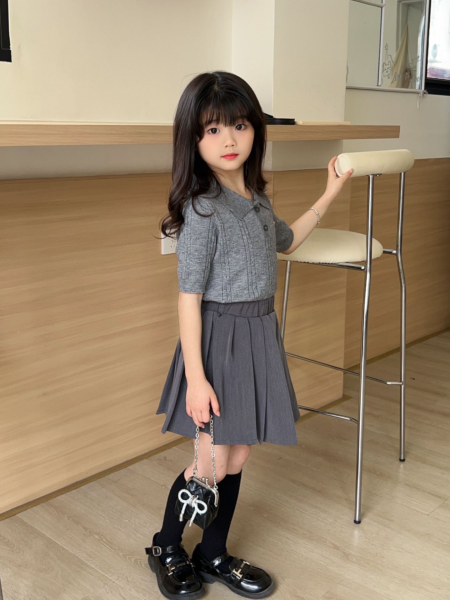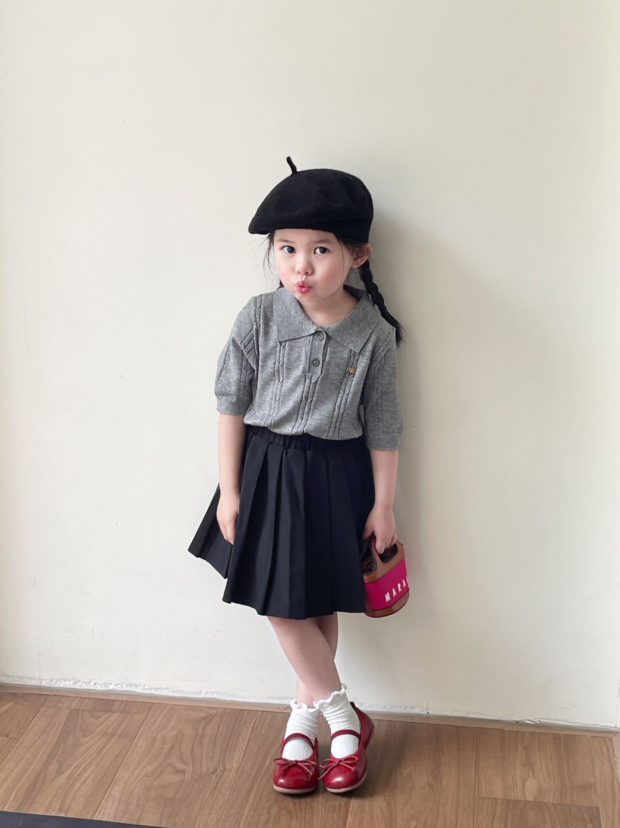 여름 아동용 칼리지 스타일 니트 반팔 폴로 셔츠 스웨터 도매 플리츠 스커트 여아 스커트 아동복 숏 스타일스토어 가기