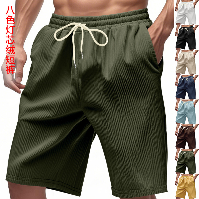 국경 간 아마존 여름 새로운 남성 캐주얼 루즈 코듀로이 트렌디 비치 스포츠 반바지 남성용 비치 바지