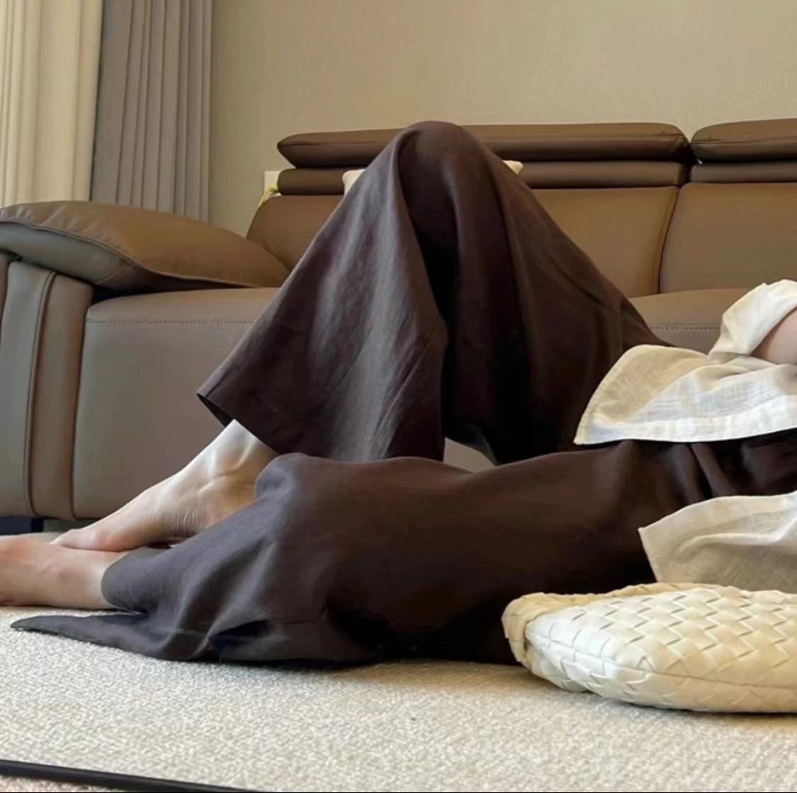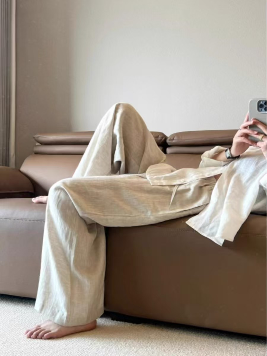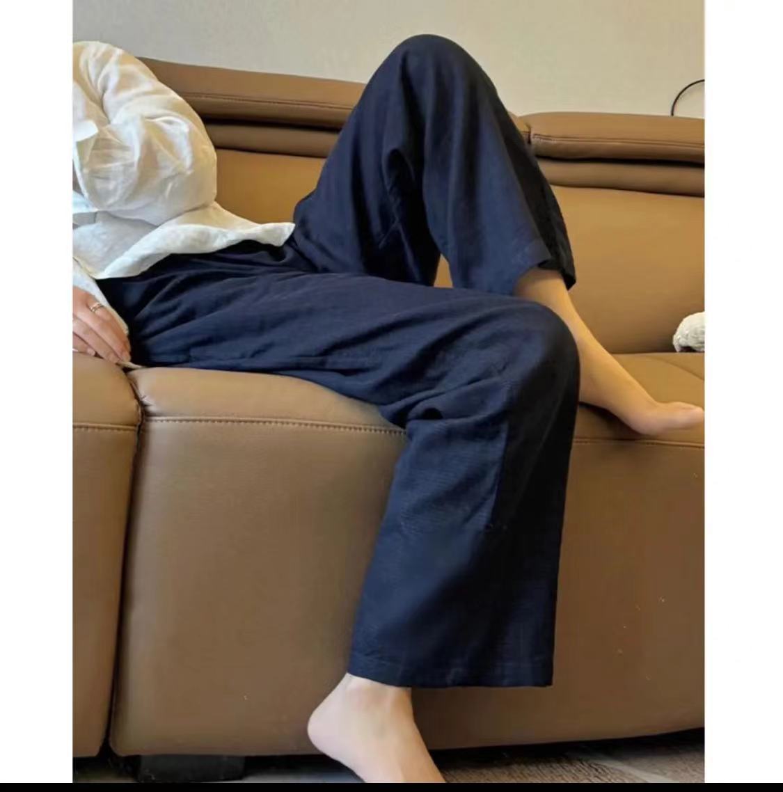亚麻直筒裤女夏季薄款棉麻山本裤子百搭日系垂感休闲拖地长裤