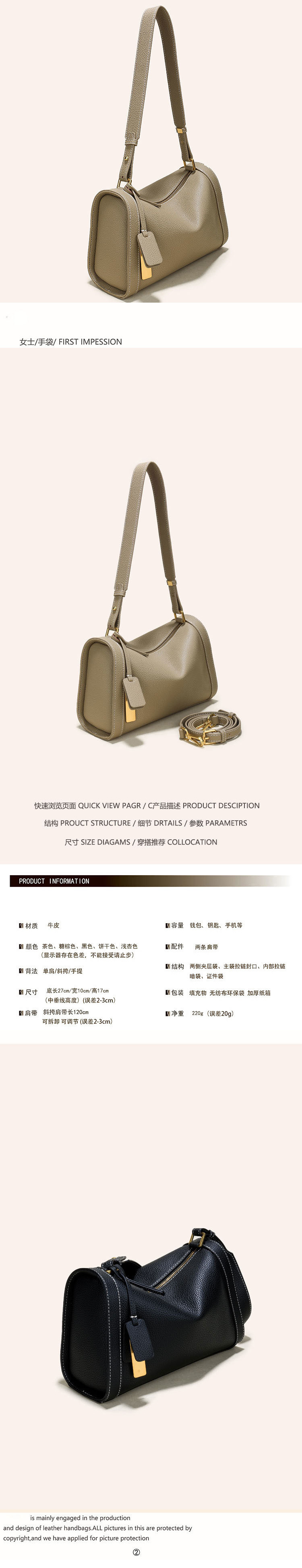 여성용 1층 소가죽 보스턴백 2024 트렌디 캐주얼 가죽 하이엔드 틈새 싱글 숄더 크로스바디 베개 백스토어 가기