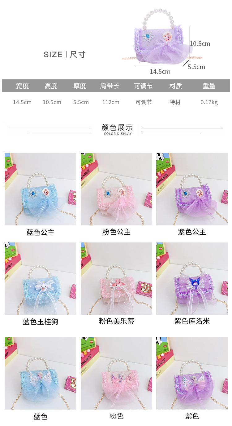 어린이 가방 패션 공주 진주 핸드백 귀여운 소녀 동전 지갑 세련된 레이스 어깨 크로스 바디 백