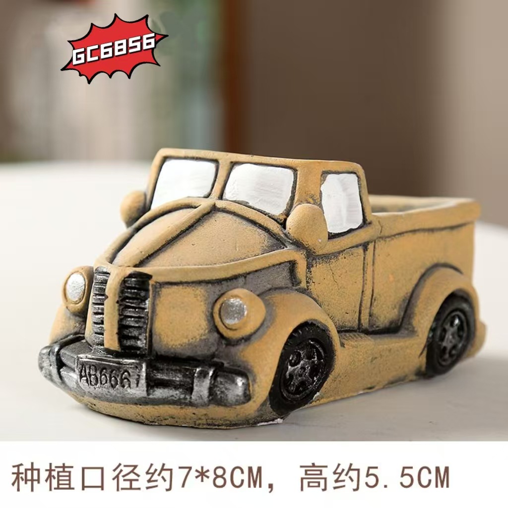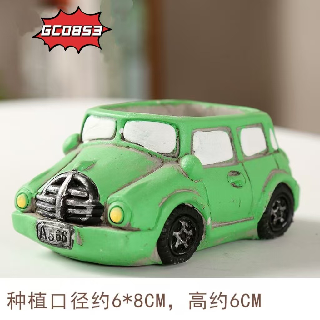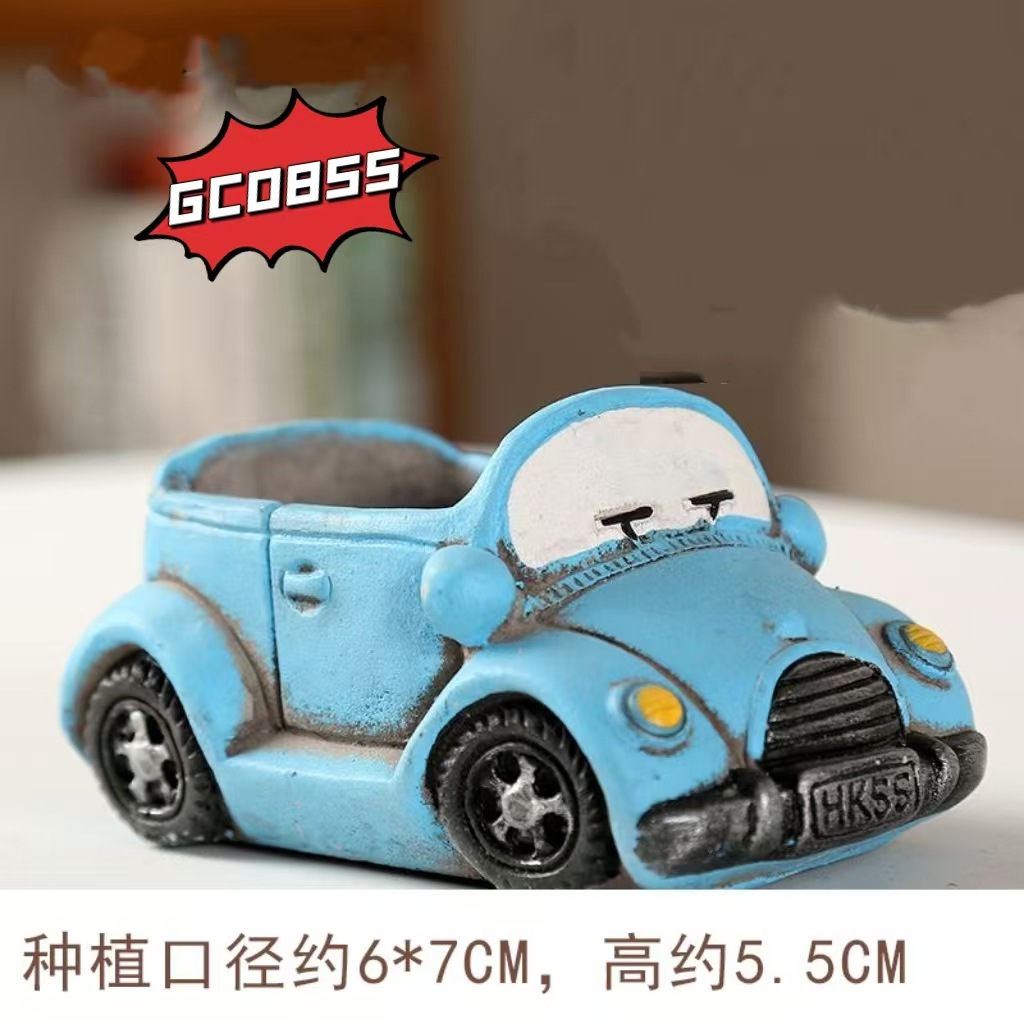자동차 테마 수지 장식품 크리 에이 티브 빨간색과 파란색 트럭 다육 화분 데스크탑 수조 조경 수생 식물 심기 냄비
