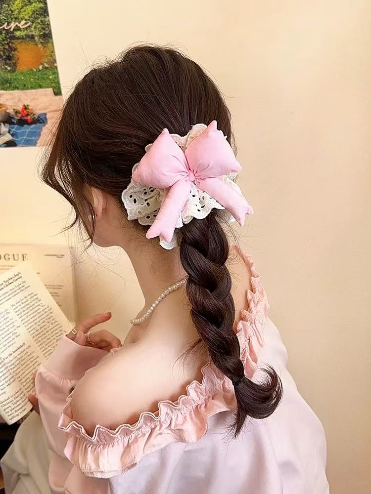 2025 새로운 핑크 그릇 머리 반지 여성의 달콤한 소녀 스타일 포니 테일 헤어 로프 패션 아름다운 헤어 액세서리