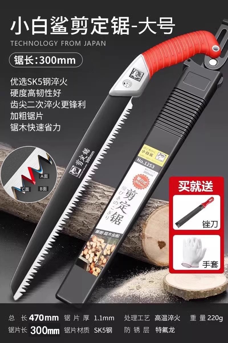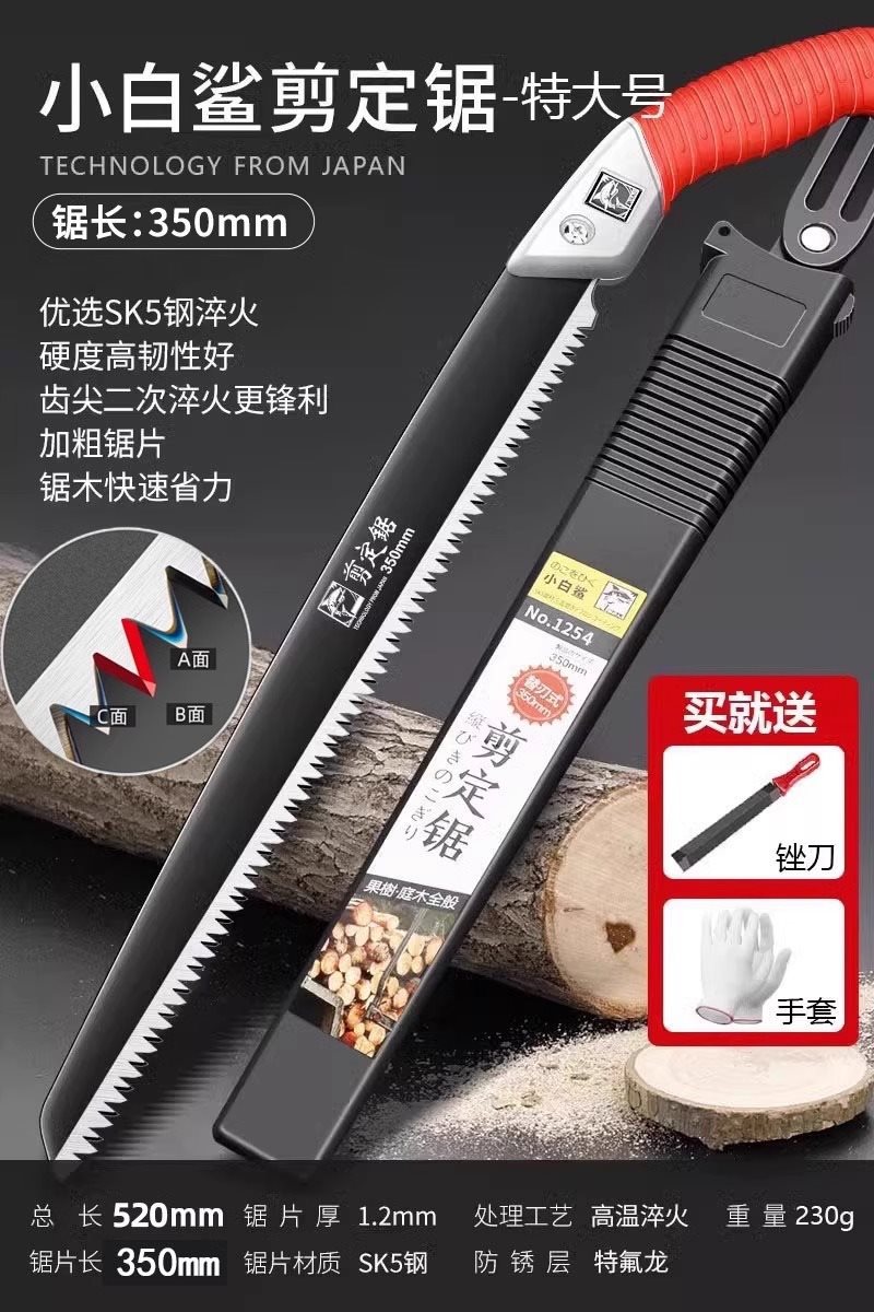 • 440mm 일본식 작은 흰색 상어 SK5 강철 가위-중형(샌딩 + 장갑 + 톱 커버 포함)