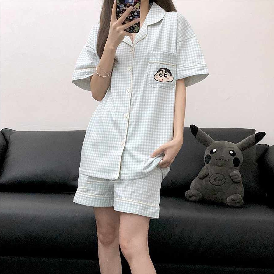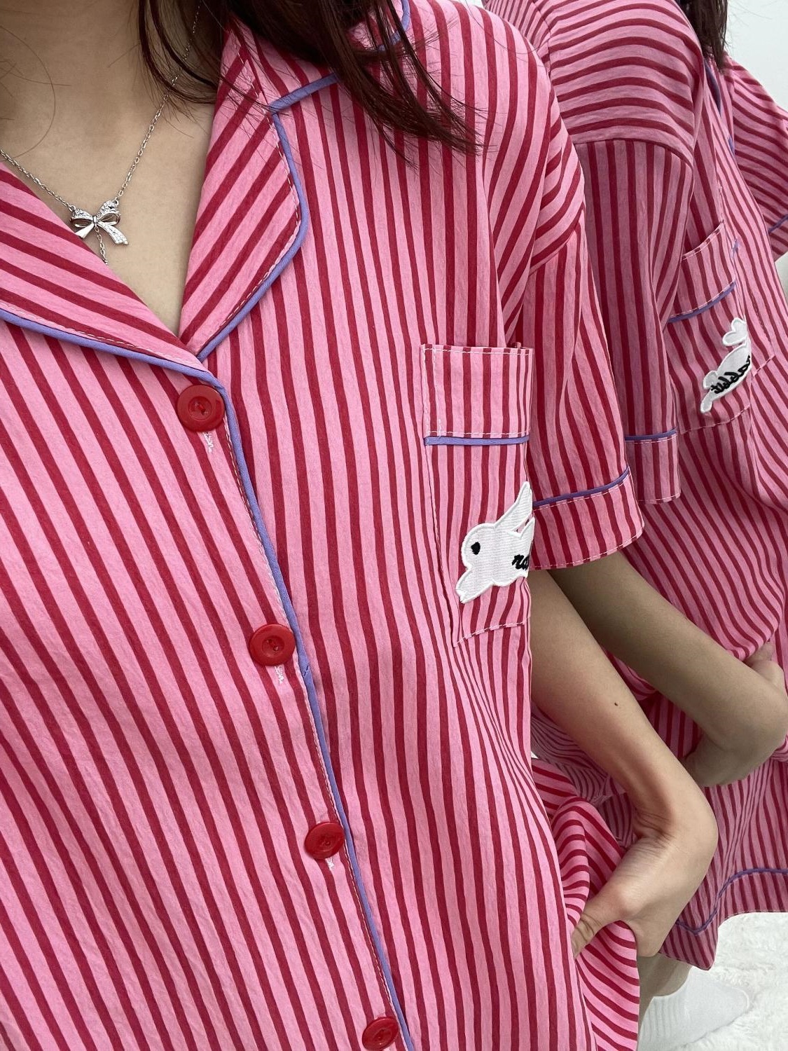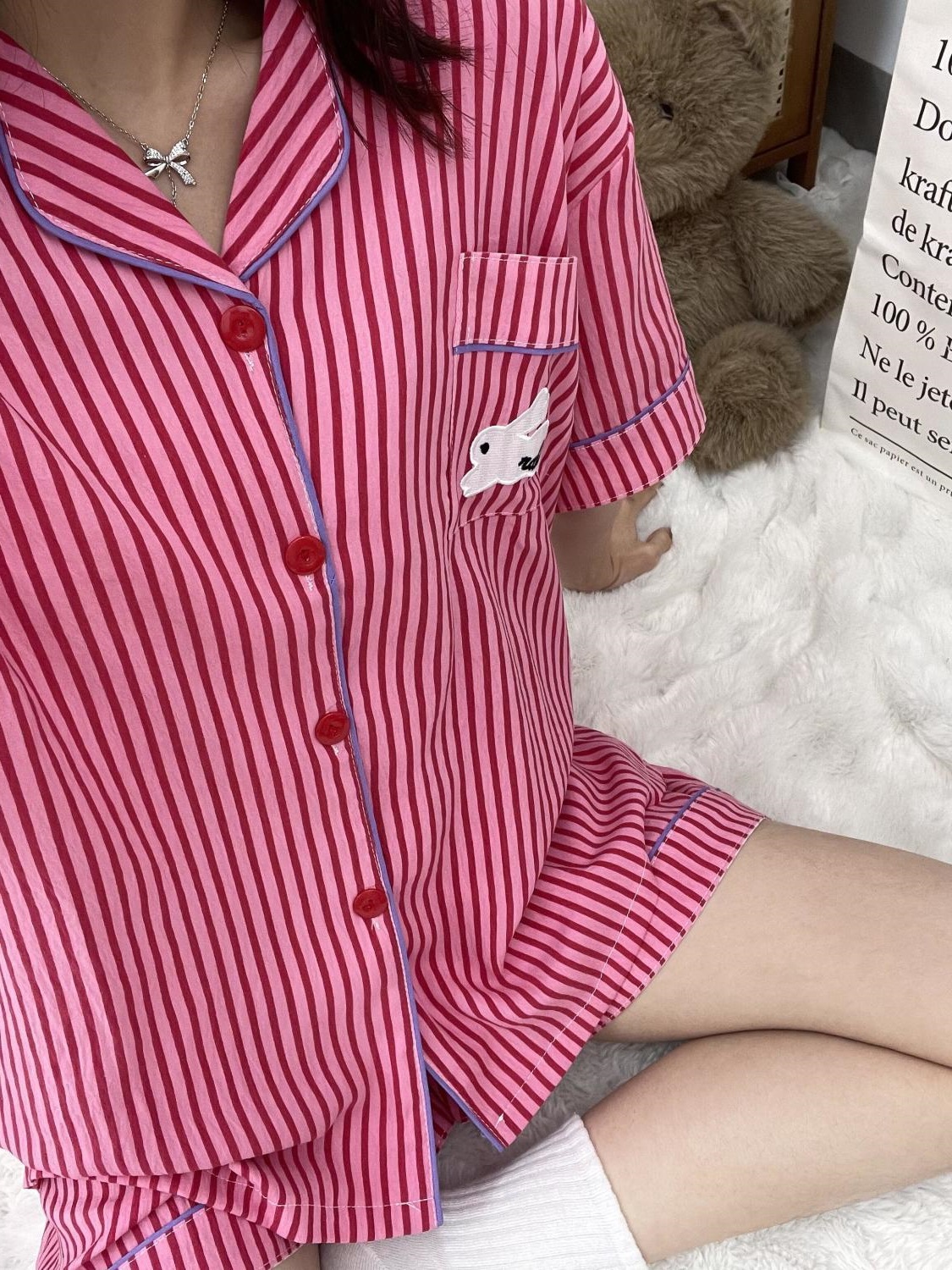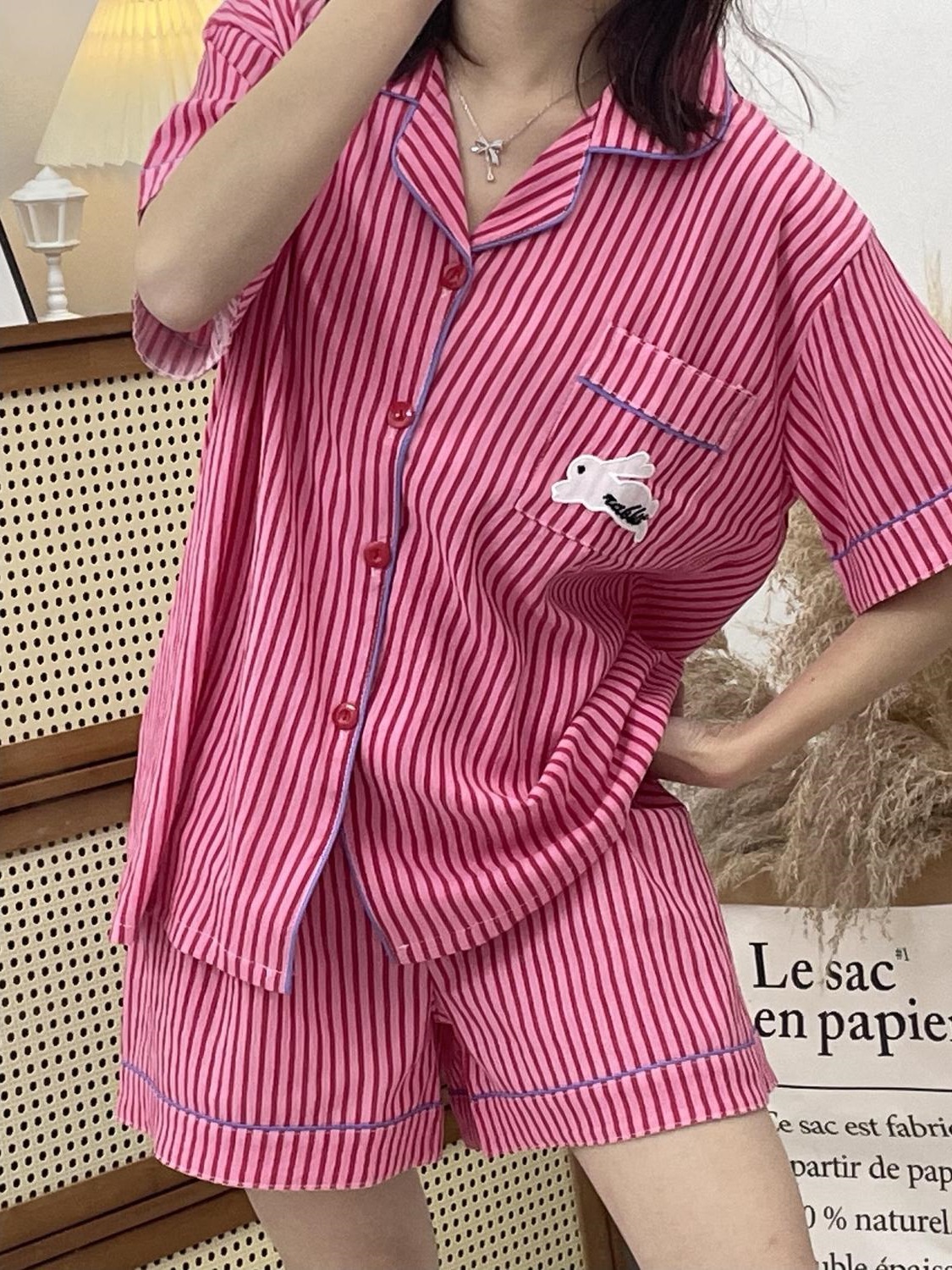 줄무늬 토끼 잠옷 여성 여름 새 반팔 반바지 일본식 만화 학생 홈 의류 세트 외복스토어 가기