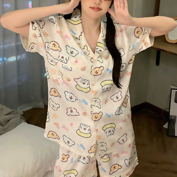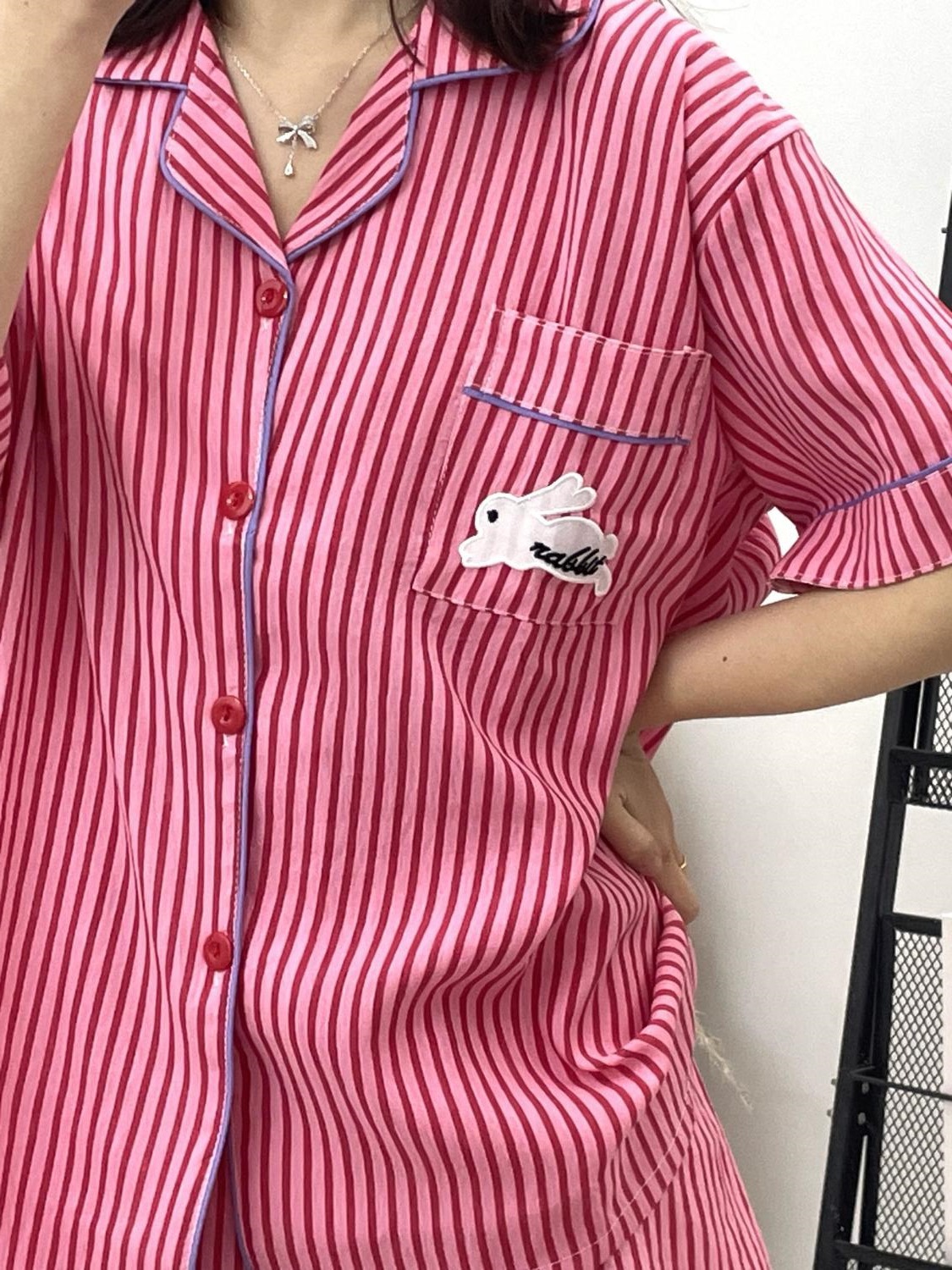 줄무늬 토끼 잠옷 여성 여름 새 반팔 반바지 일본식 만화 학생 홈 의류 세트 외복