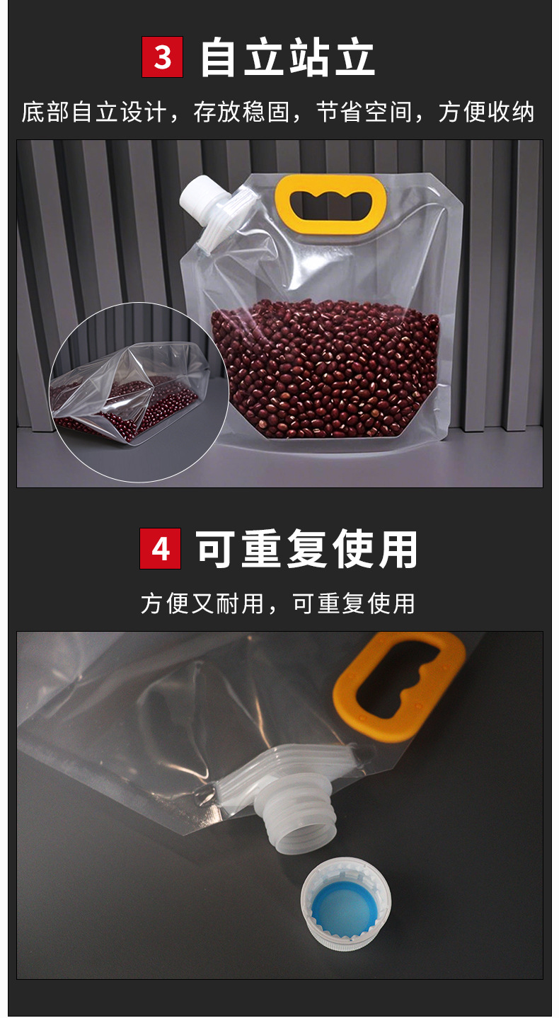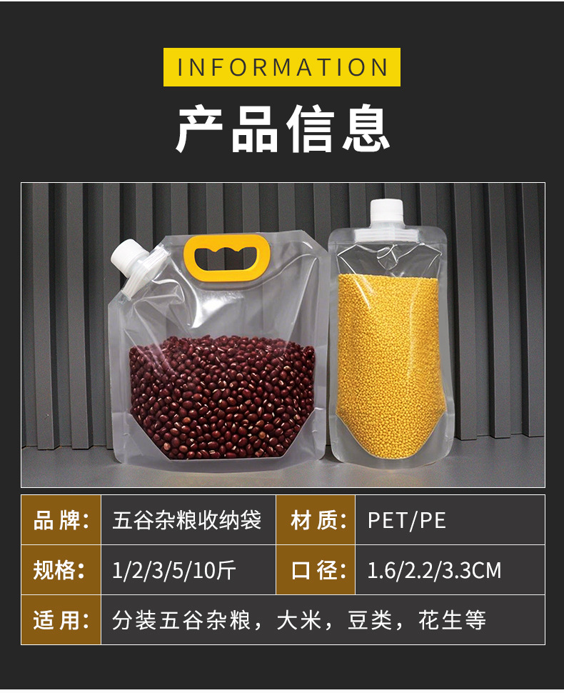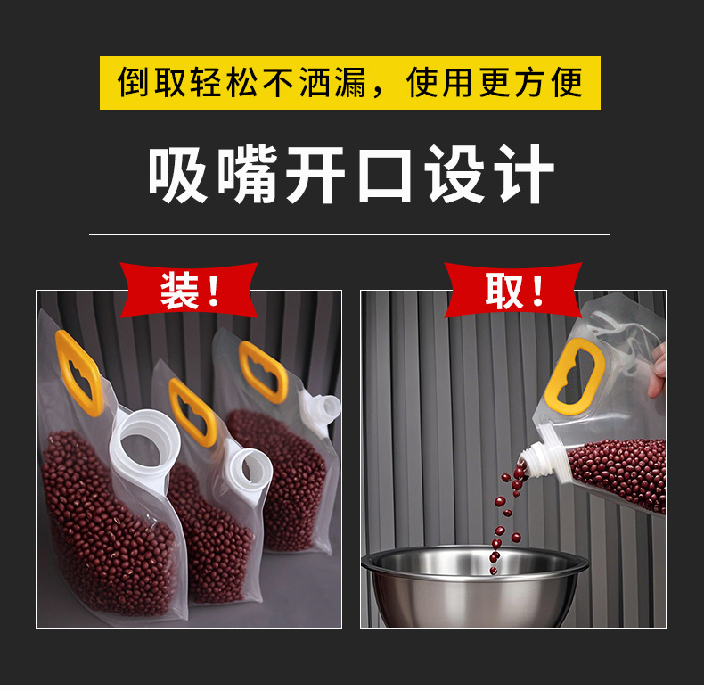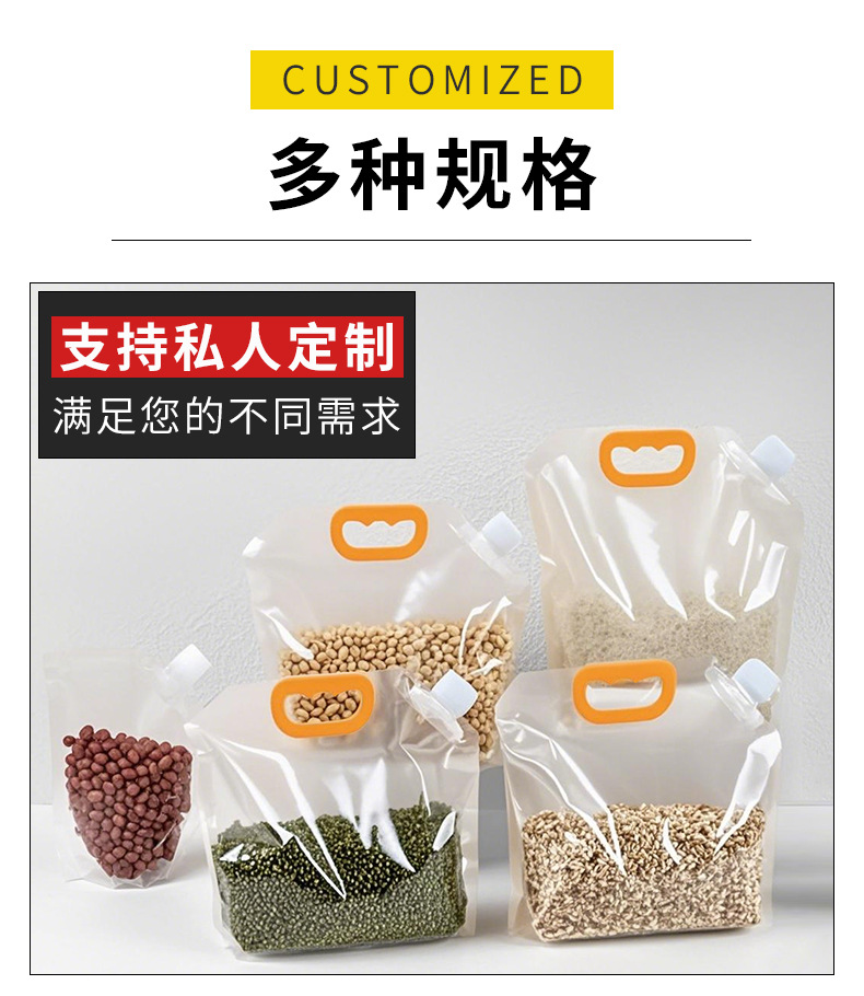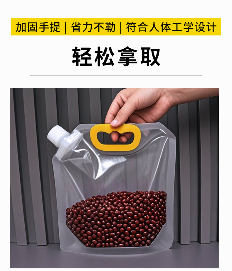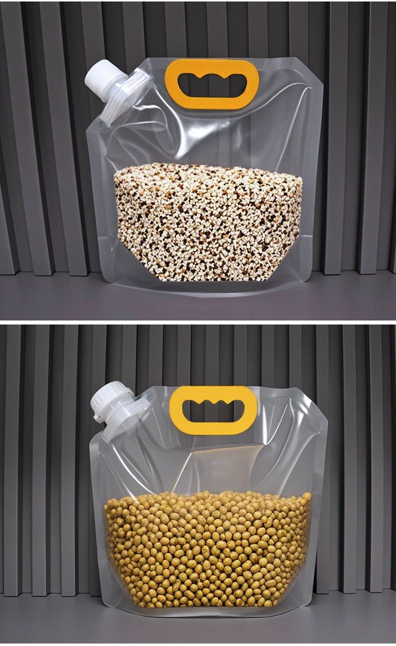곡물 큰 직경 밀봉 저장 가방 쌀 5.00kg 휴대용 투명 두꺼운 자립 흡입 입 가방
