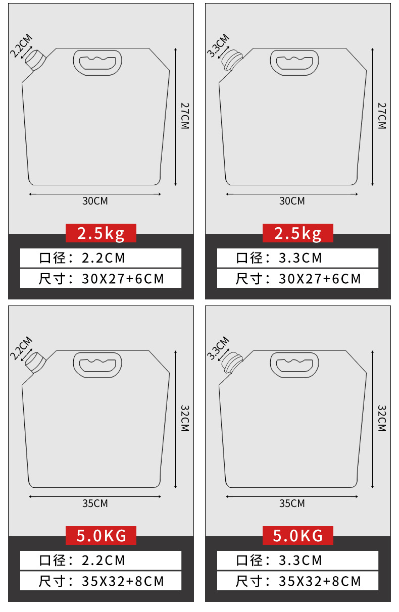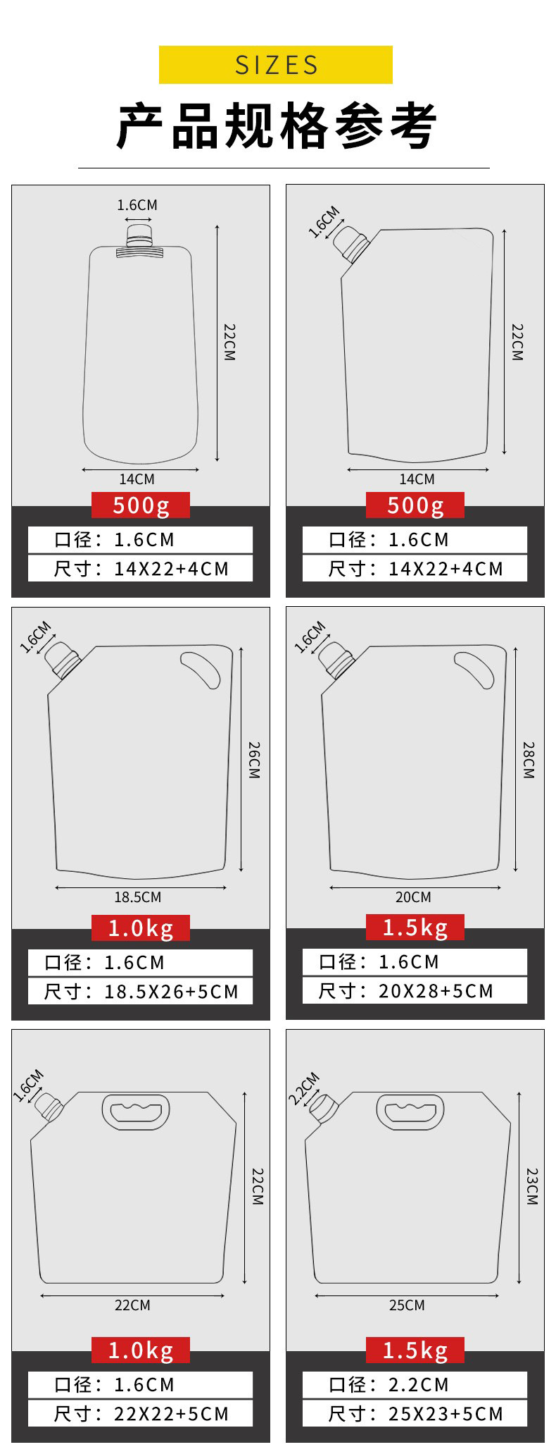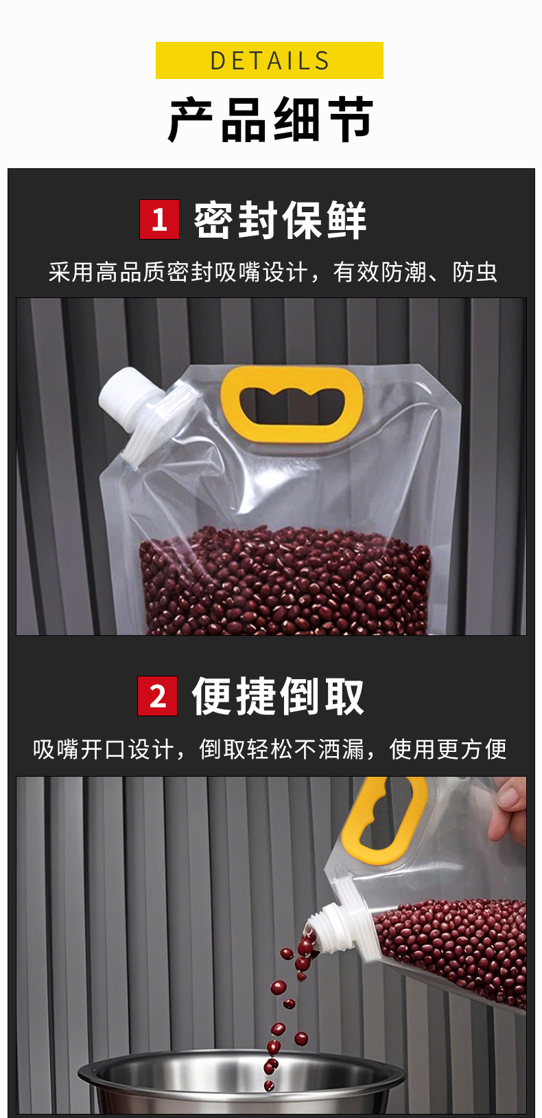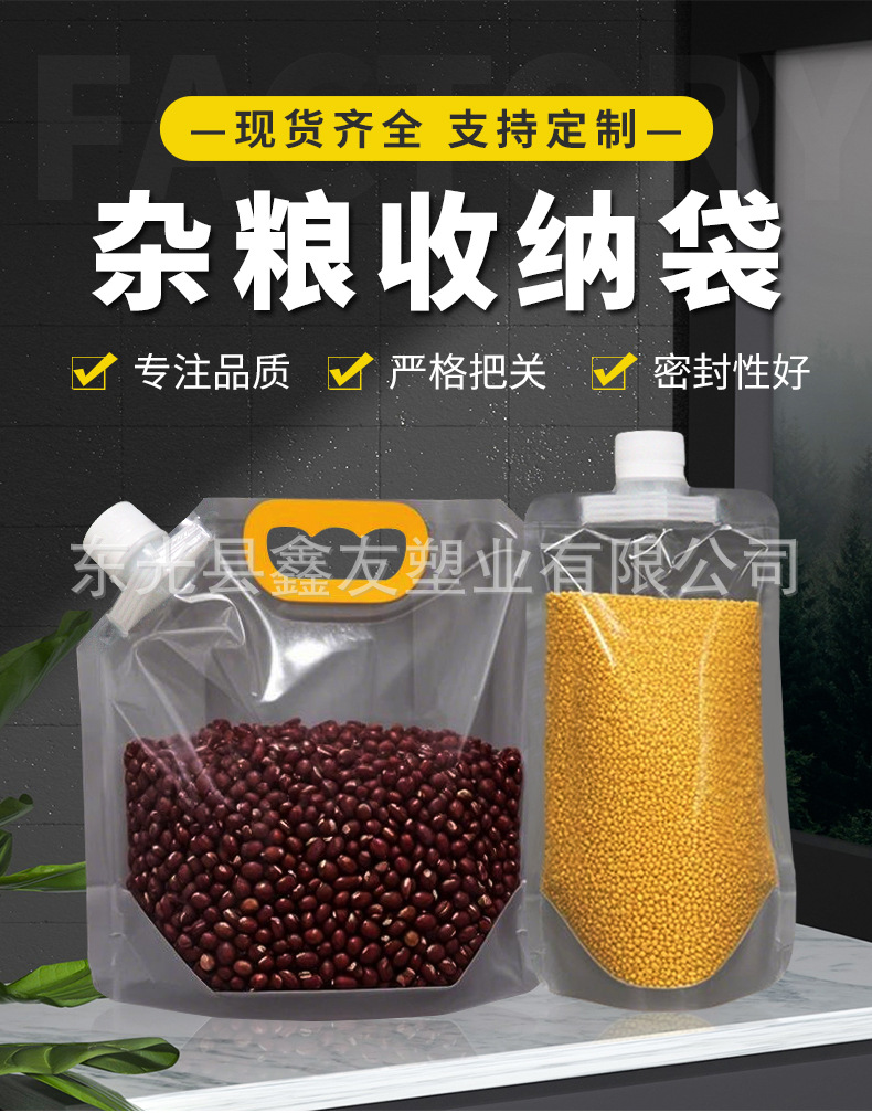 곡물 큰 직경 밀봉 저장 가방 쌀 5.00kg 휴대용 투명 두꺼운 자립 흡입 입 가방