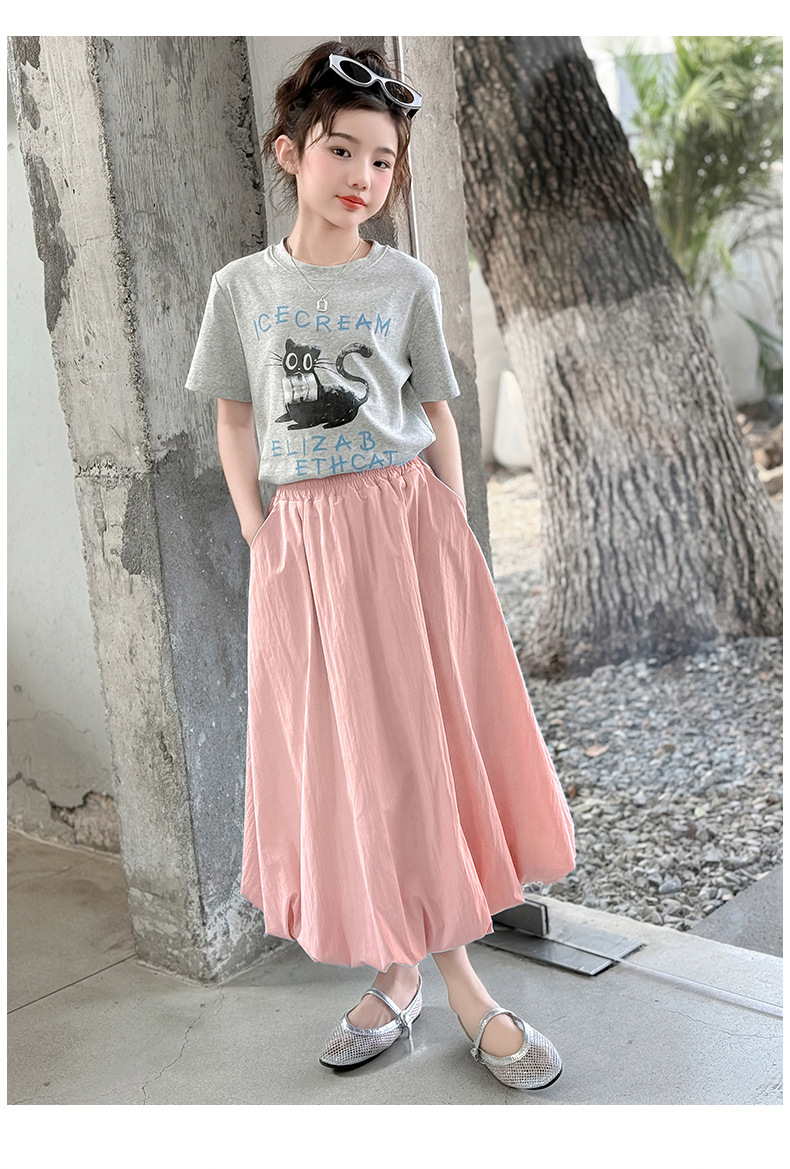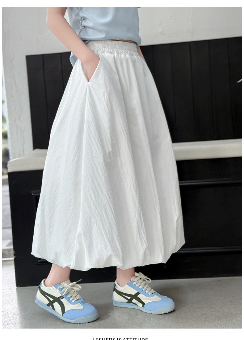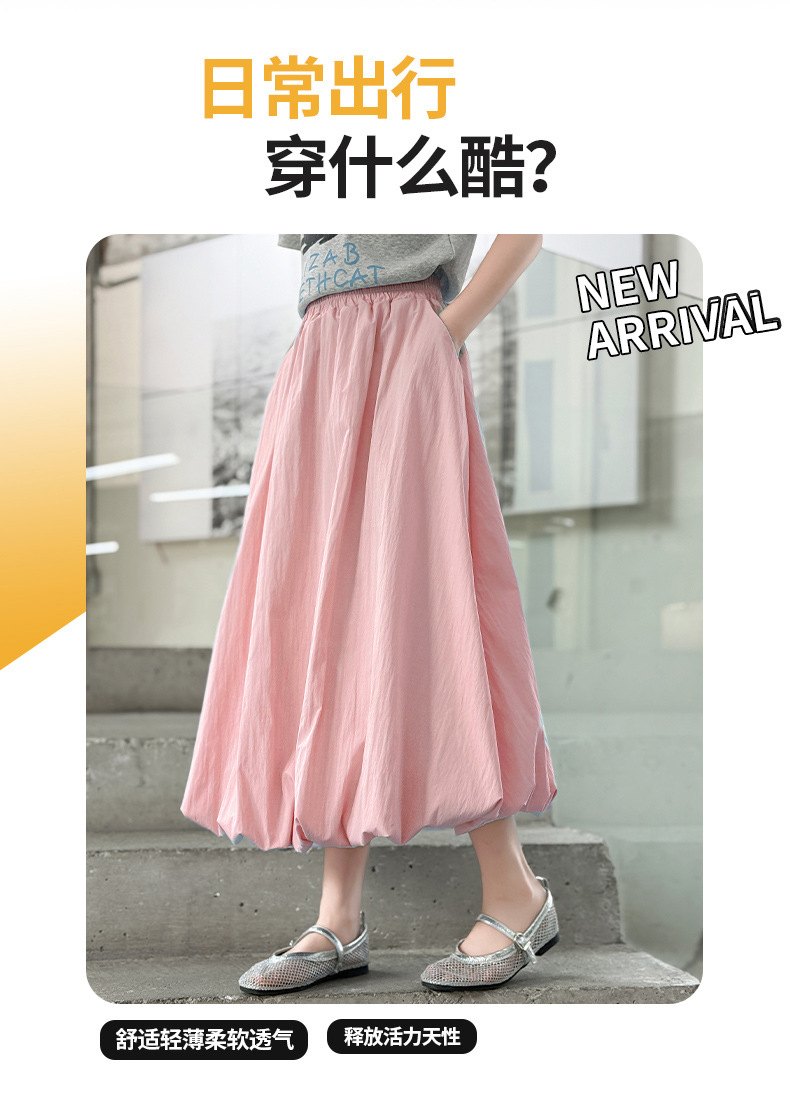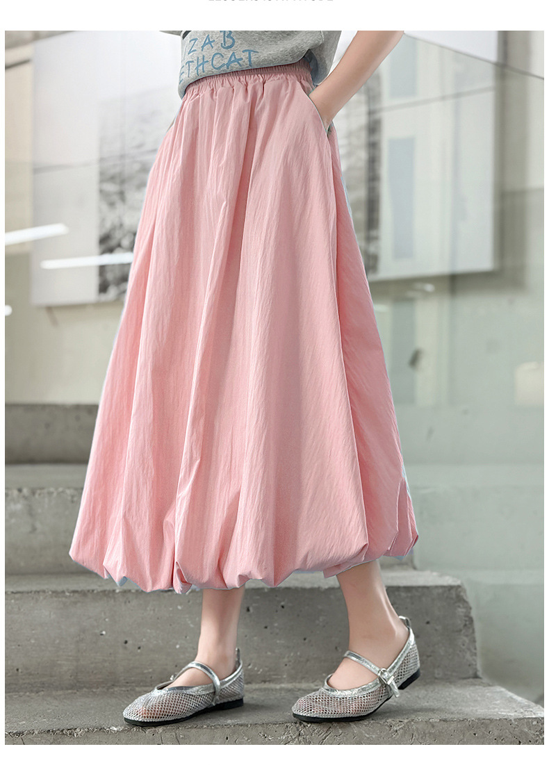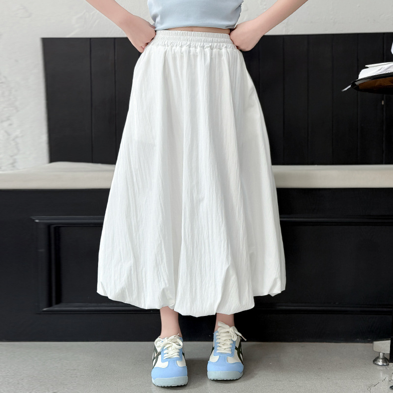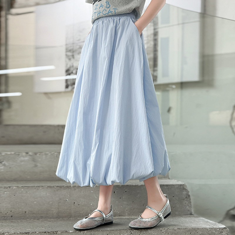 꽃 봉오리 치마 소녀 여름 새로운 신축성있는 허리 솜털 랜턴 달콤한 캐주얼 스커트 하이 허리 A 라인 롱 스커트 크로스 테두리스토어 가기