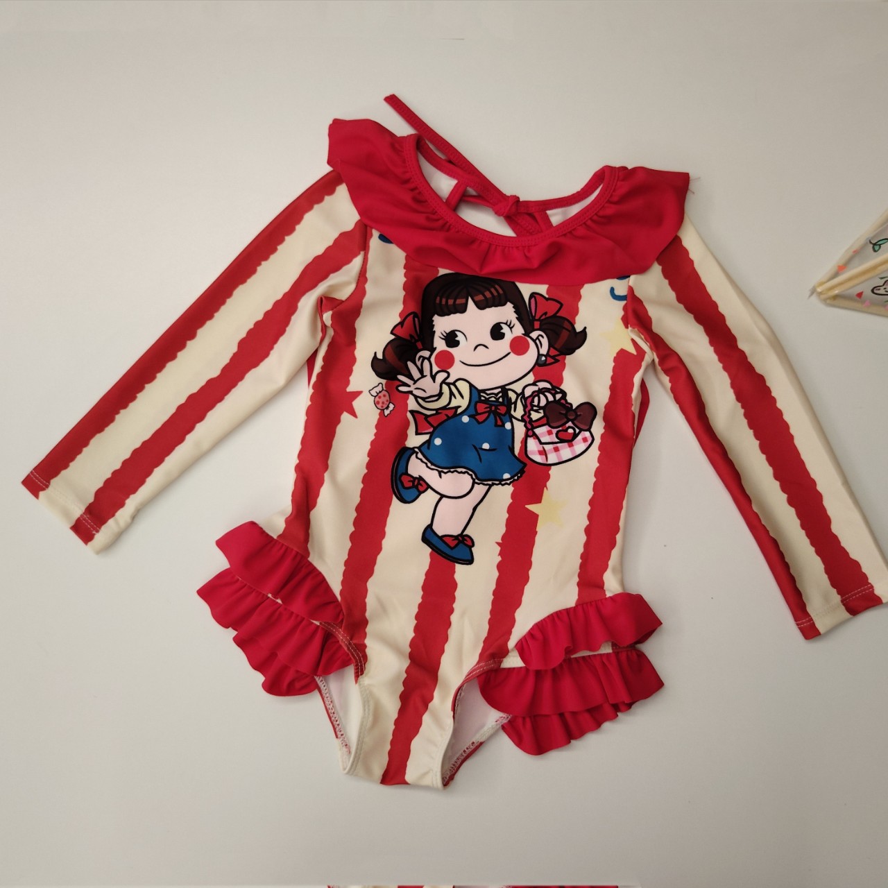 2025 신종 소녀상 원피스 수영복 아기소녀 선스크린 긴팔 수영복 한국 공주 여자 수영복