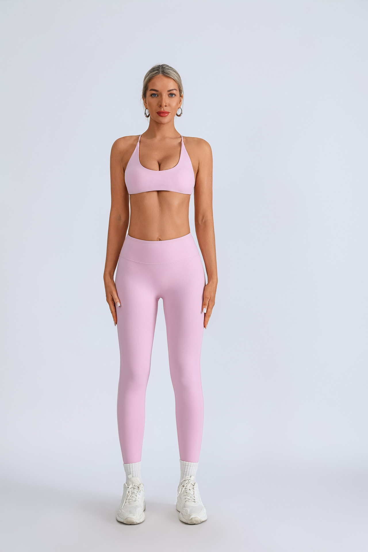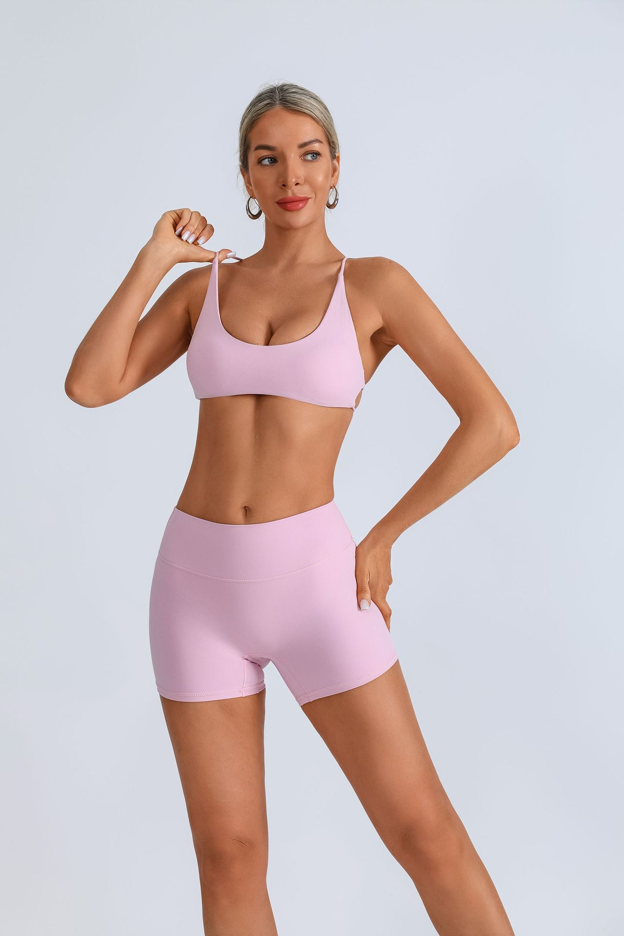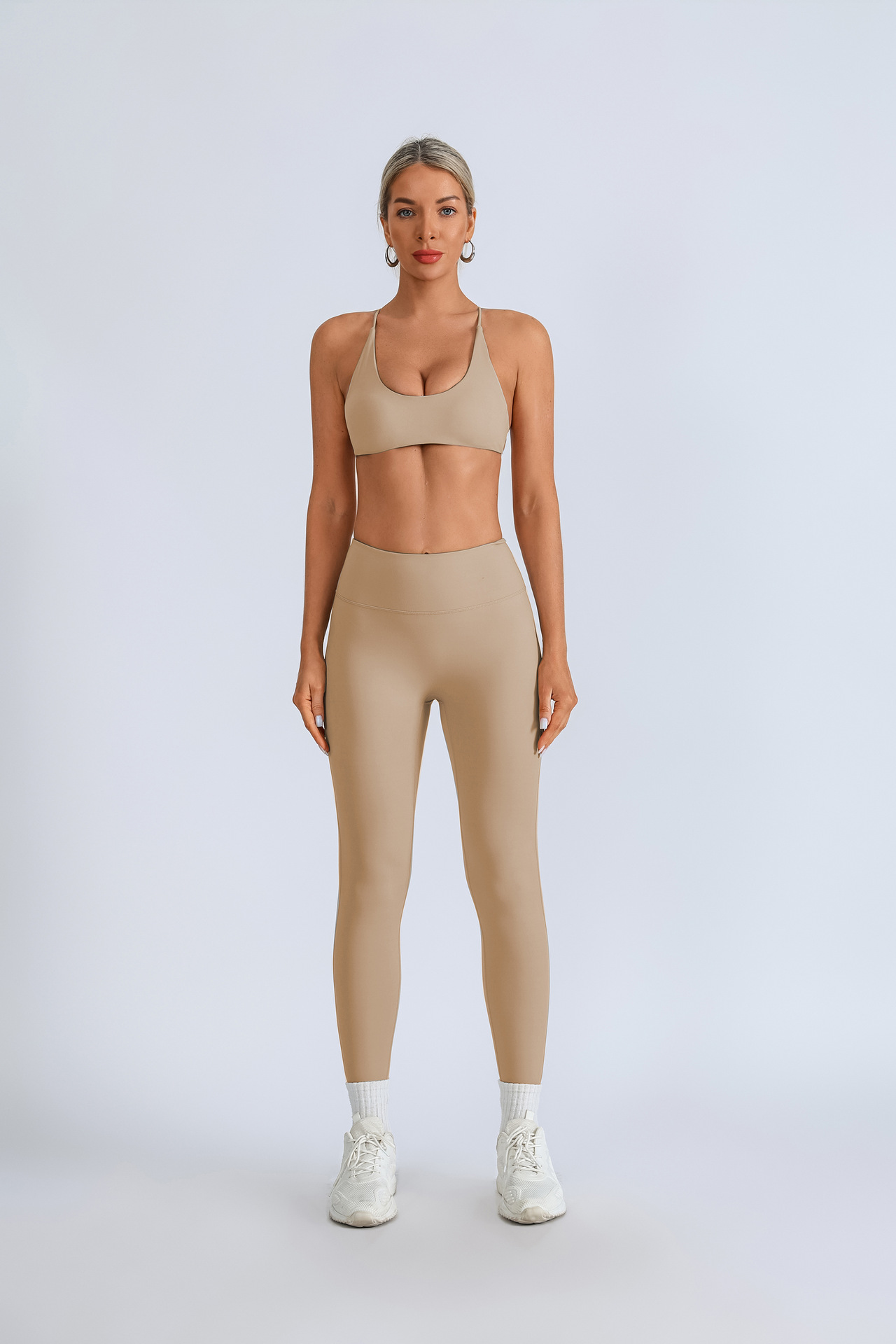 가슴 패드 크로스 스트랩 브라 높은 허리 복숭아 빠른 건조 스포츠 피트니스 바지를 입은 국경 간 유럽 및 미국 요가 의류스토어 가기