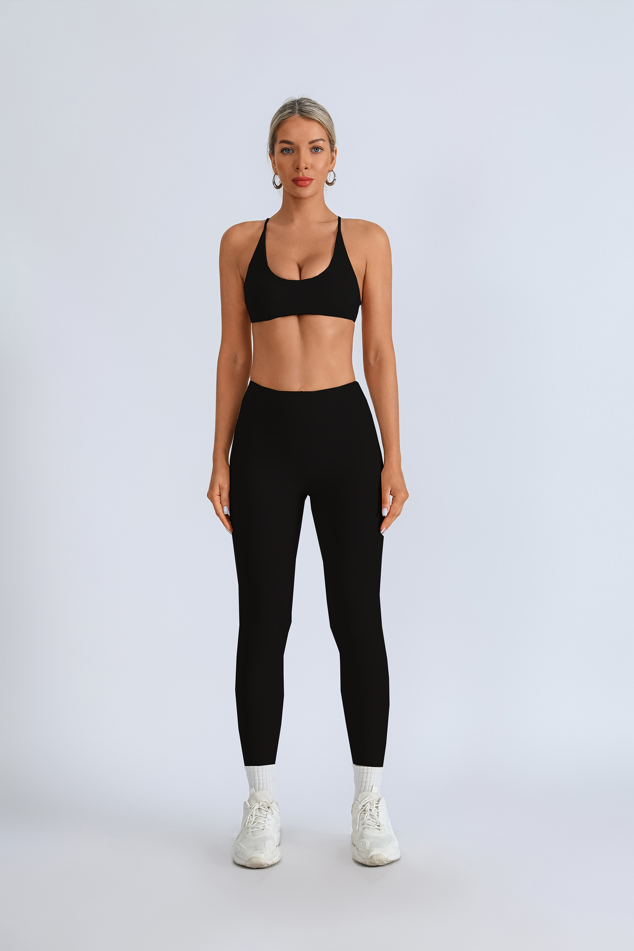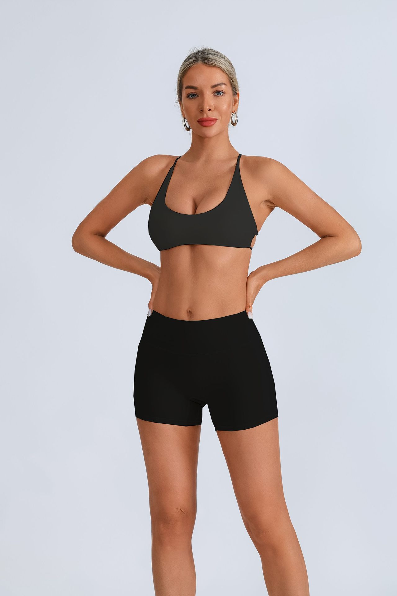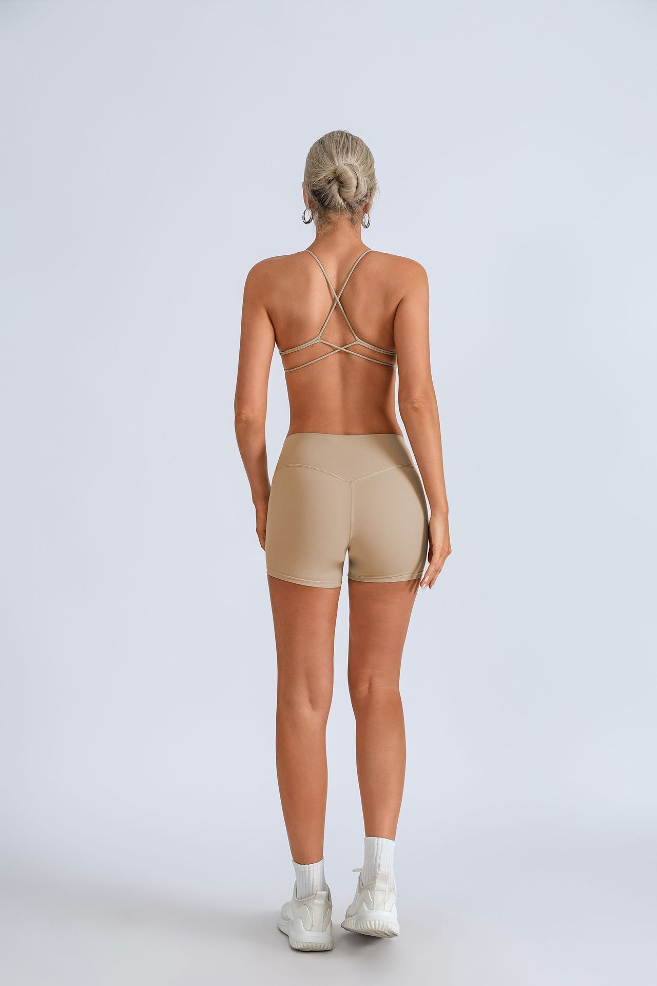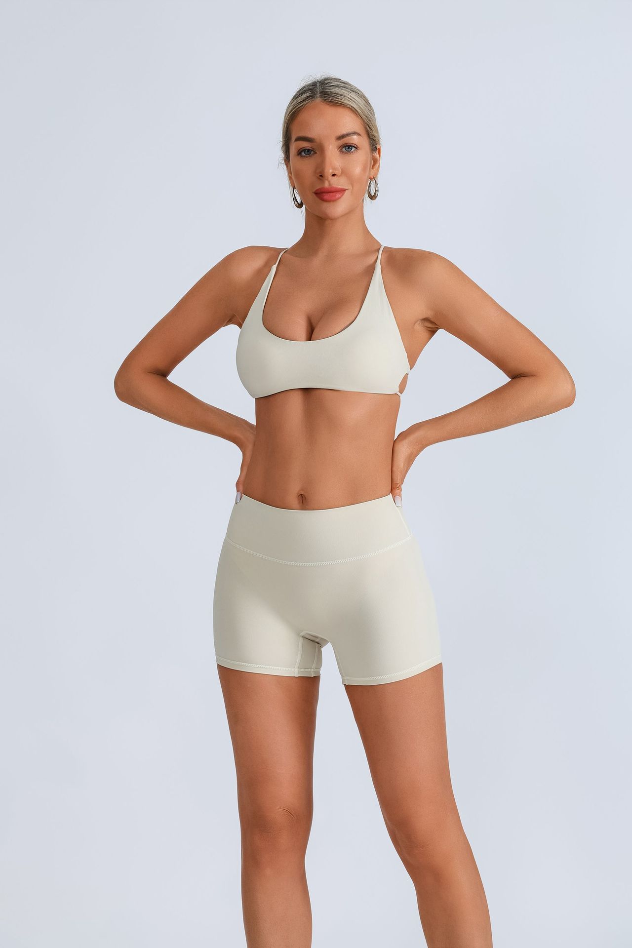 가슴 패드 크로스 스트랩 브라 높은 허리 복숭아 빠른 건조 스포츠 피트니스 바지를 입은 국경 간 유럽 및 미국 요가 의류스토어 가기