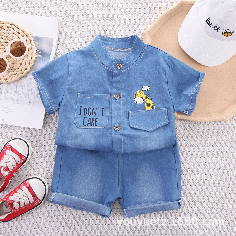 국경 간 아동복 도매 소년 소녀 새로운 데님 짧은 소매 반바지 어린이 여름 세트 외국 스타일의 아기 옷
