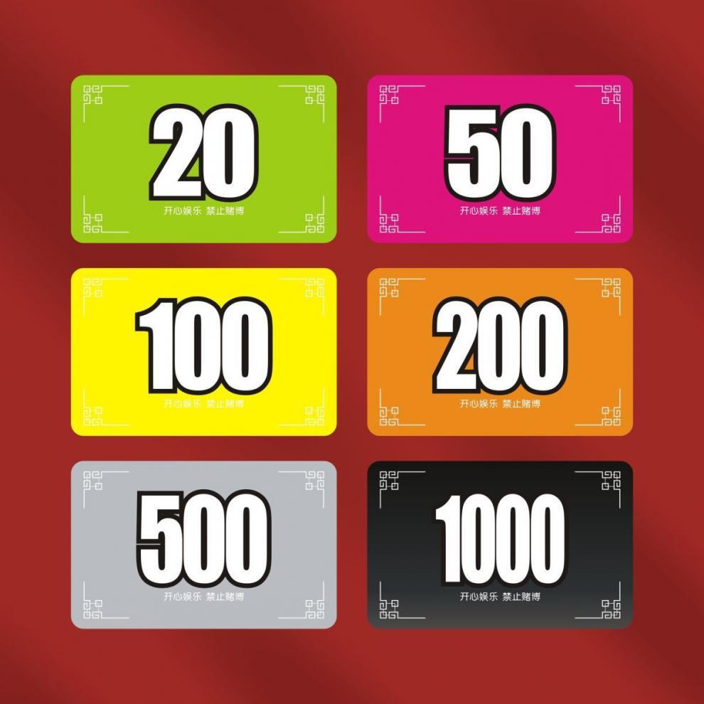 • 5-10-20-50-100 각 20장 - 대문자 칩 - 반투명 카드 - 두꺼운 카드