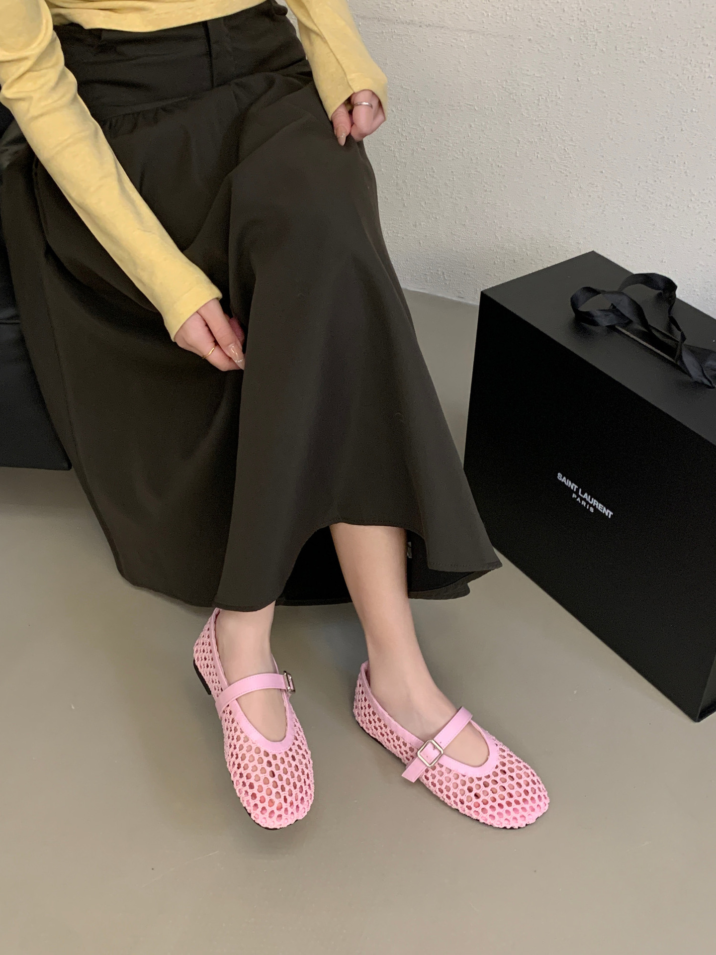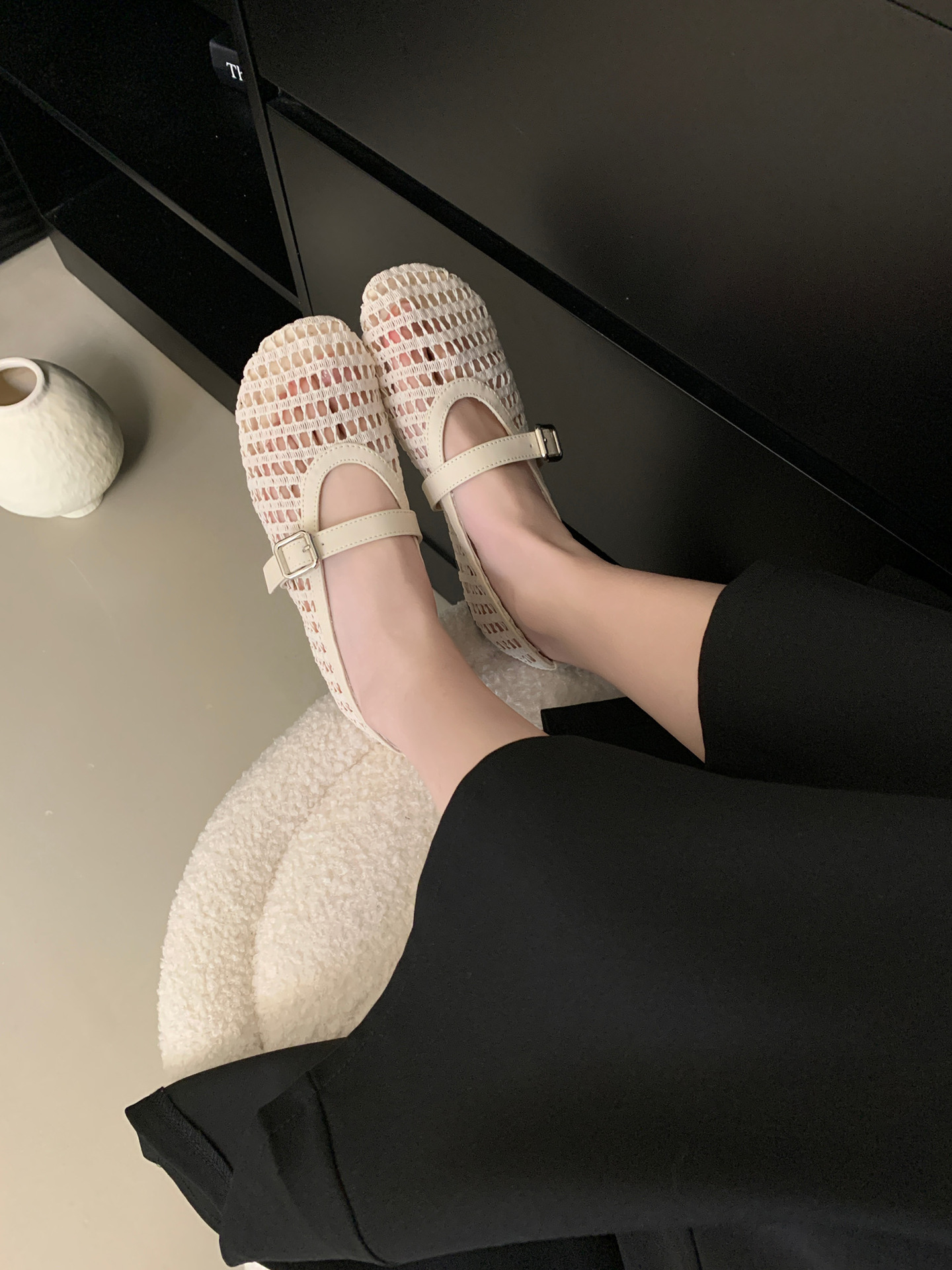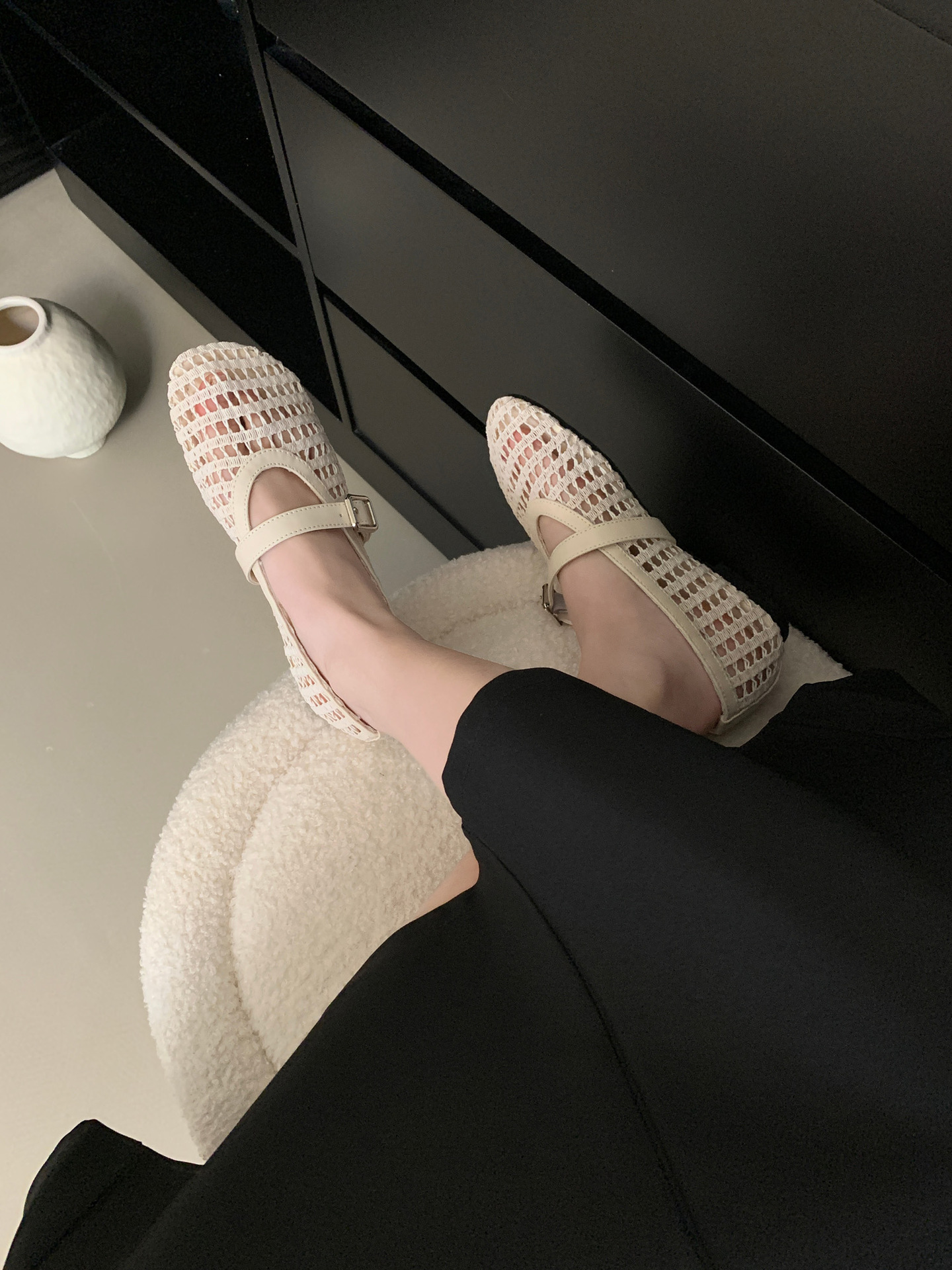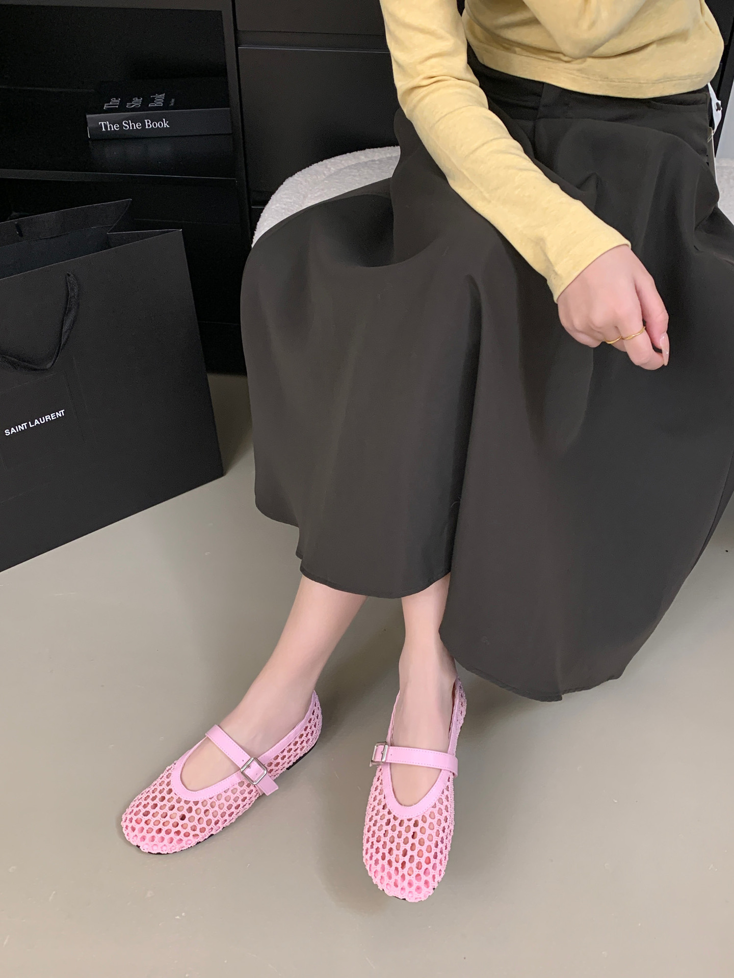 2025년 여름 신상품 라운드 투 메쉬 중공 통기성 원라인 밑창이 있는 다용도 통근 플랫 바닥 해변 휴가 샌들스토어 가기
