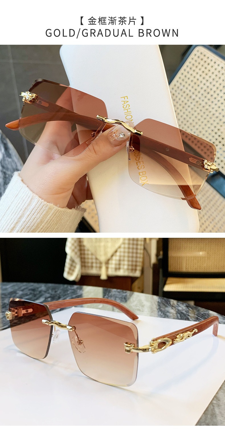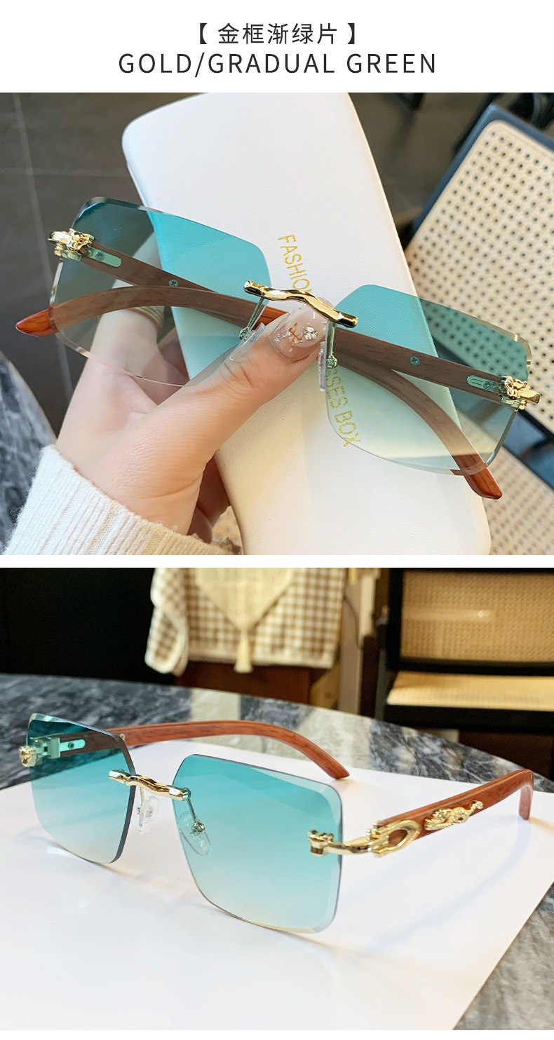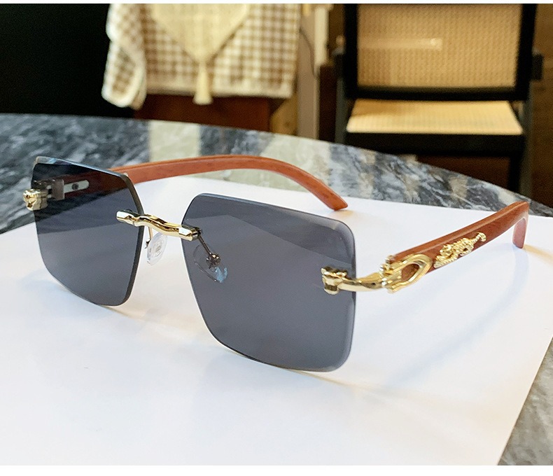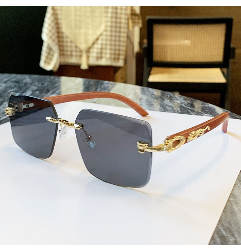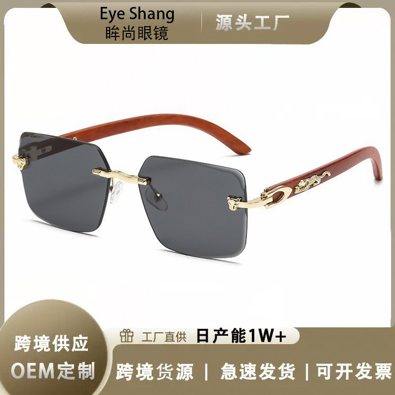 2025 유럽과 미국의 성격 스퀘어 선글라스 크로스 보더 뉴 레오파드 우드 그레인 다리 프레임리스 트림 남성용 선글라스스토어 가기