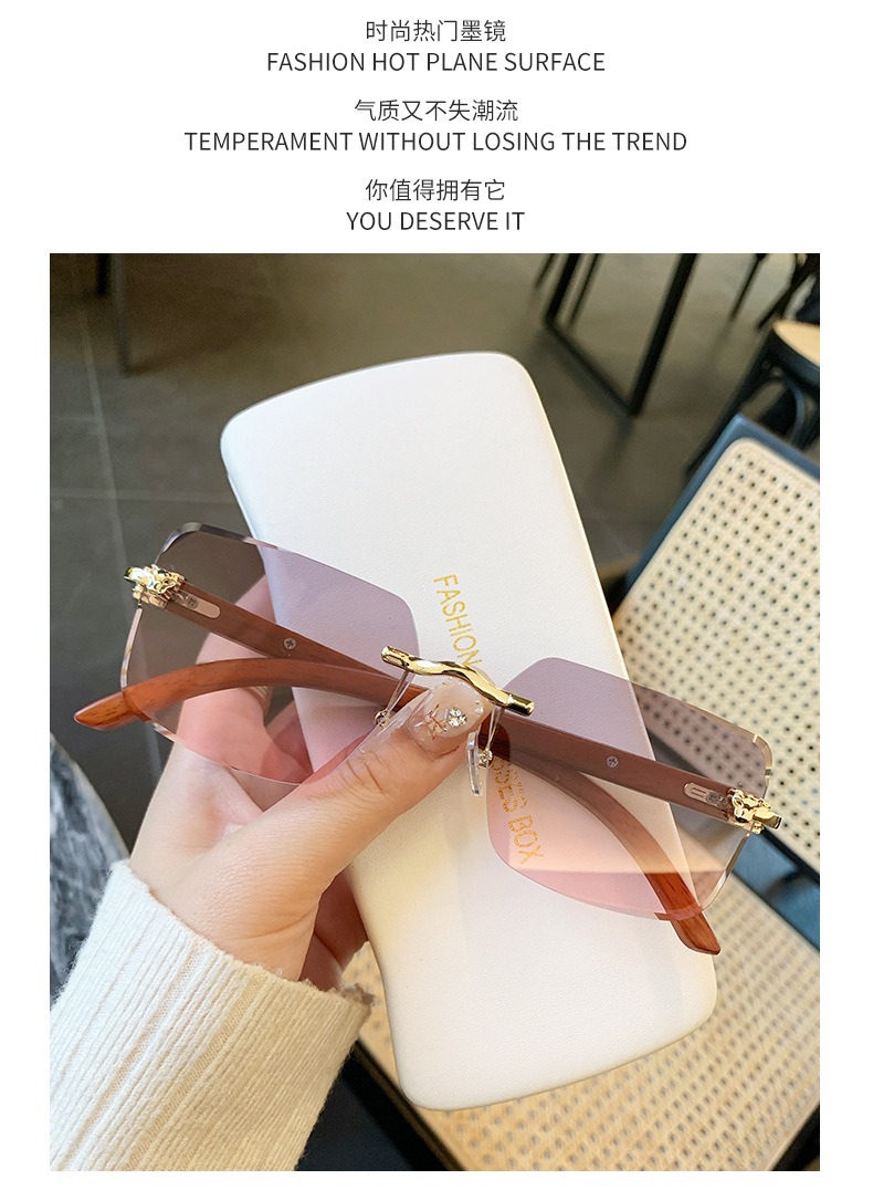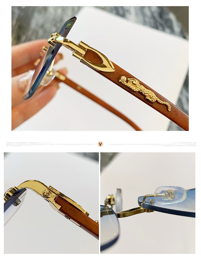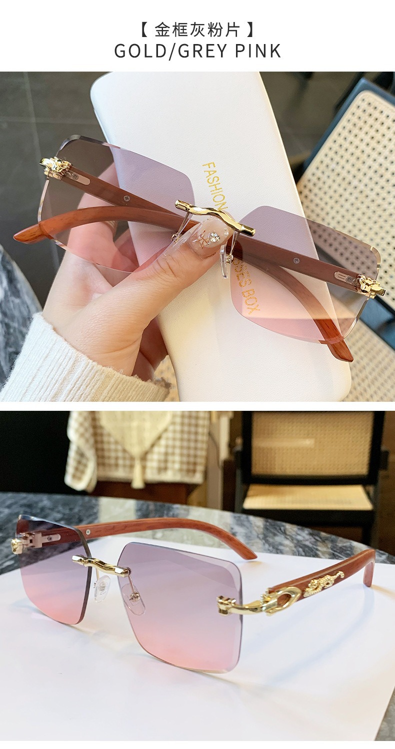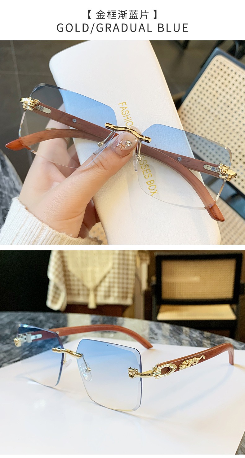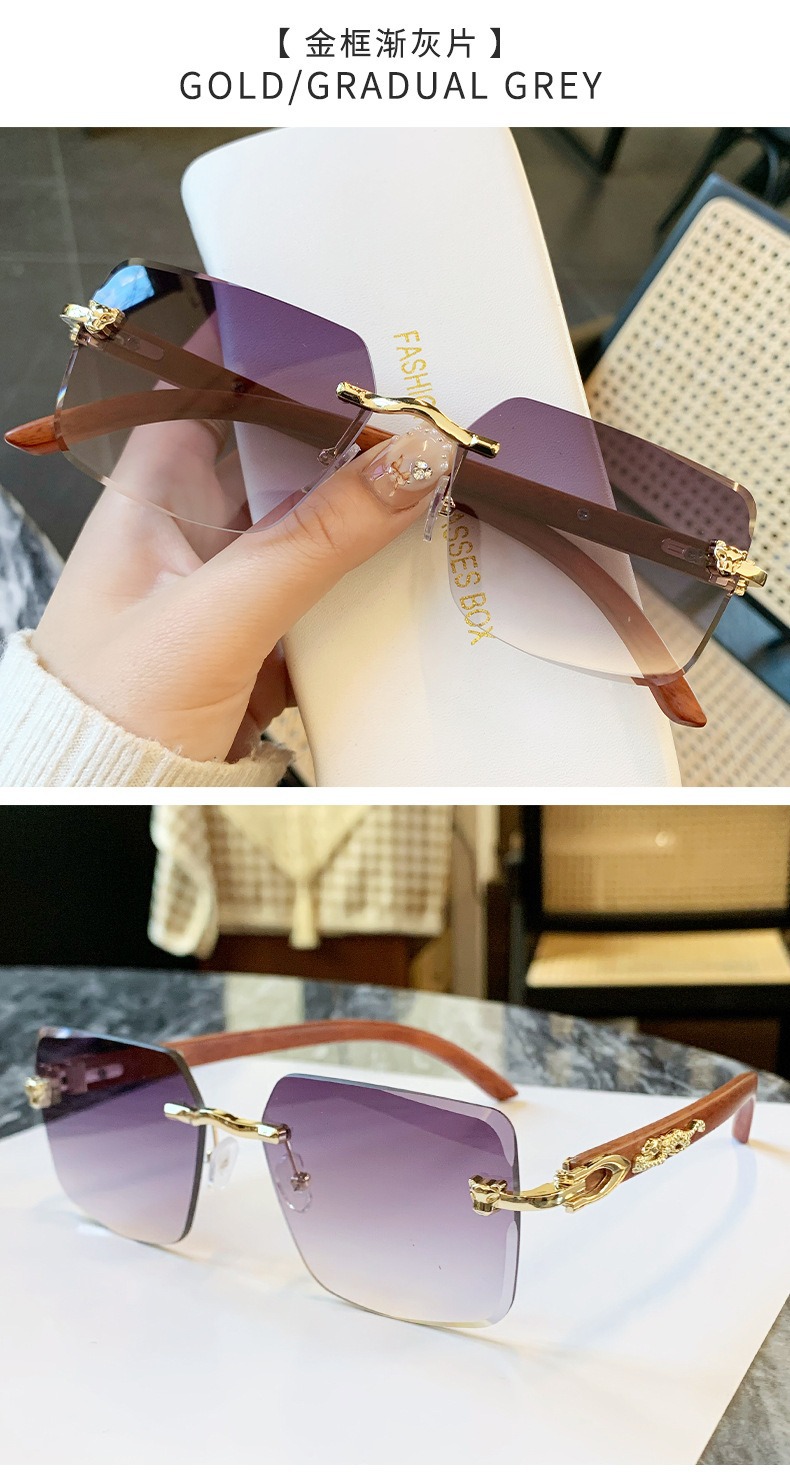 2025 유럽과 미국의 성격 스퀘어 선글라스 크로스 보더 뉴 레오파드 우드 그레인 다리 프레임리스 트림 남성용 선글라스스토어 가기
