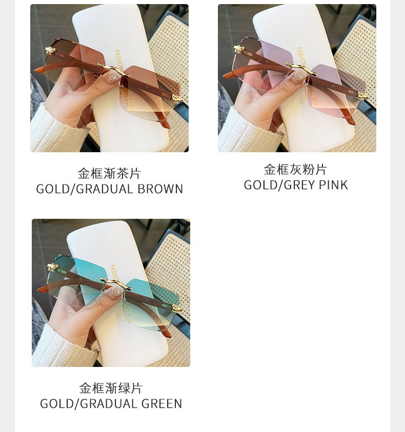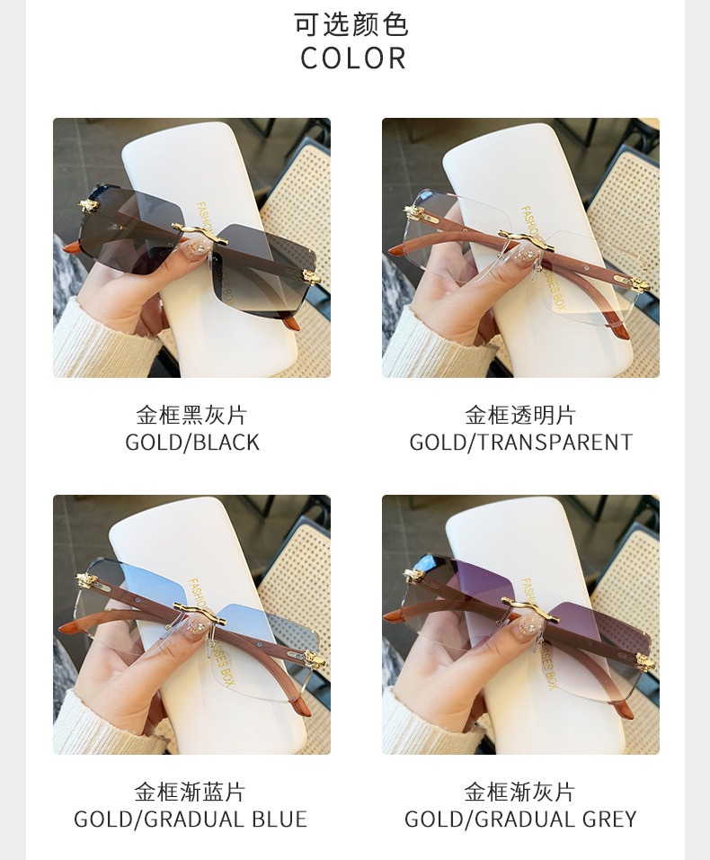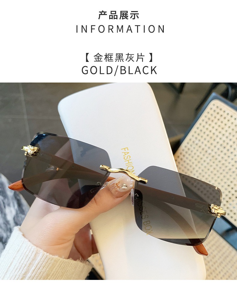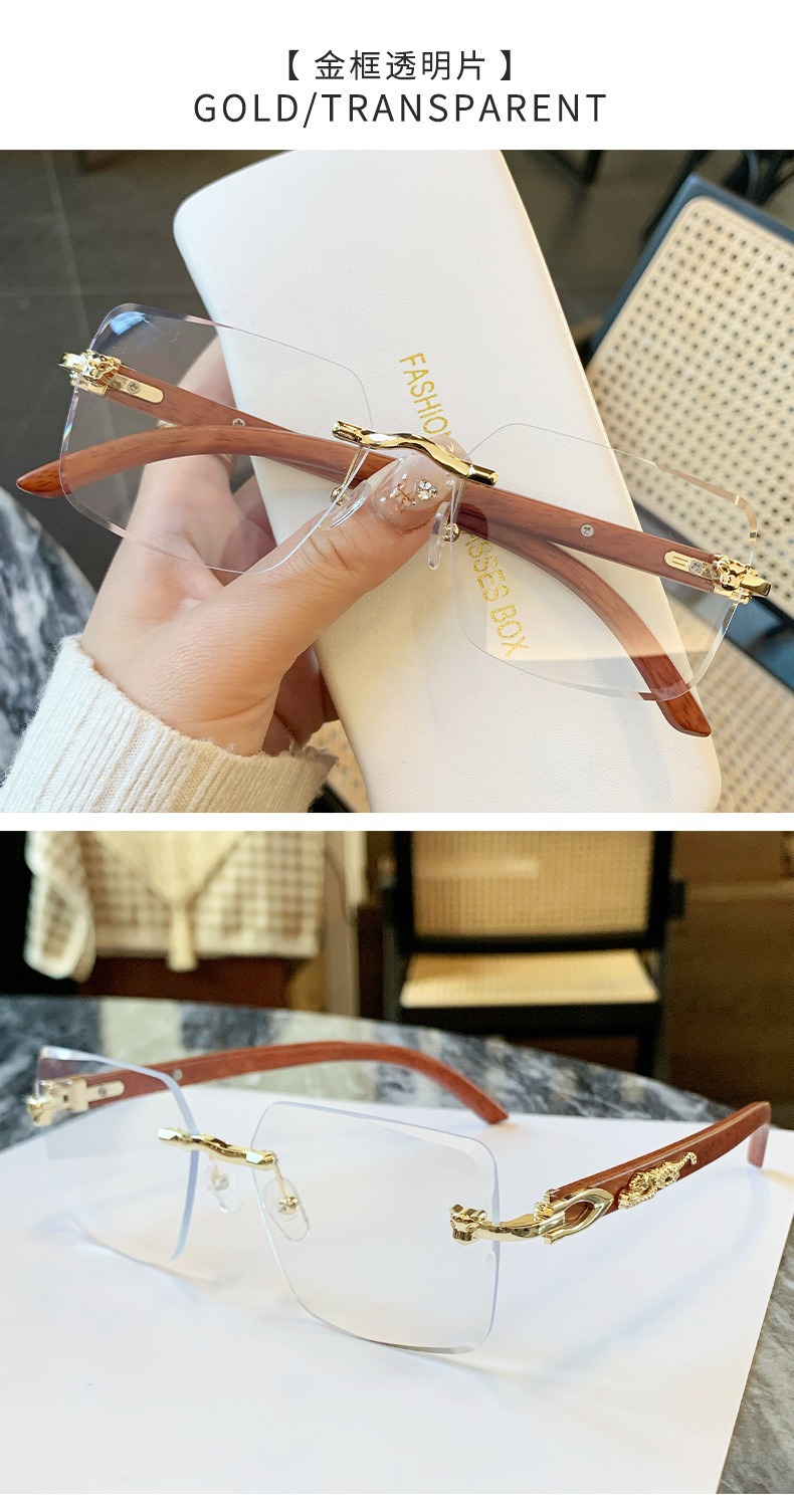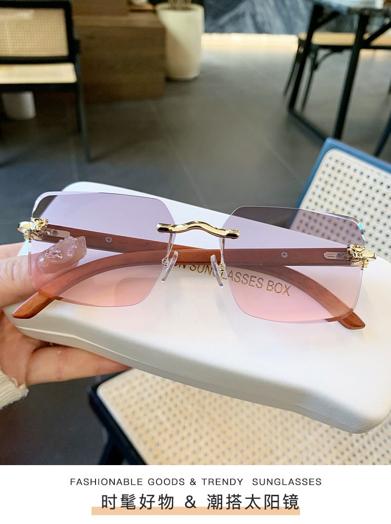 2025 유럽과 미국의 성격 스퀘어 선글라스 크로스 보더 뉴 레오파드 우드 그레인 다리 프레임리스 트림 남성용 선글라스스토어 가기