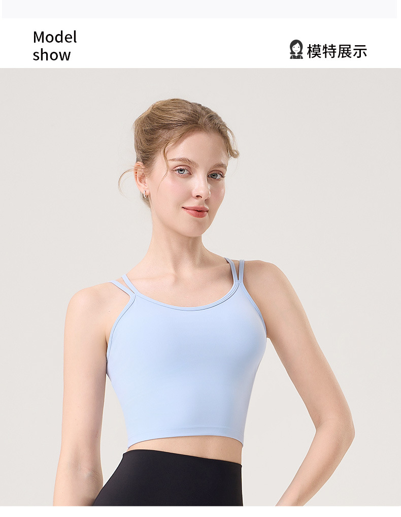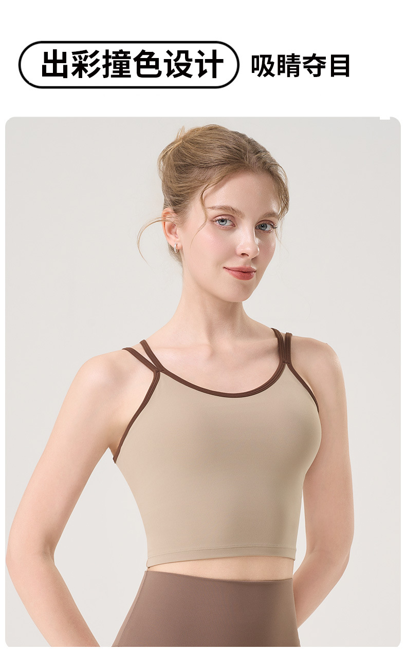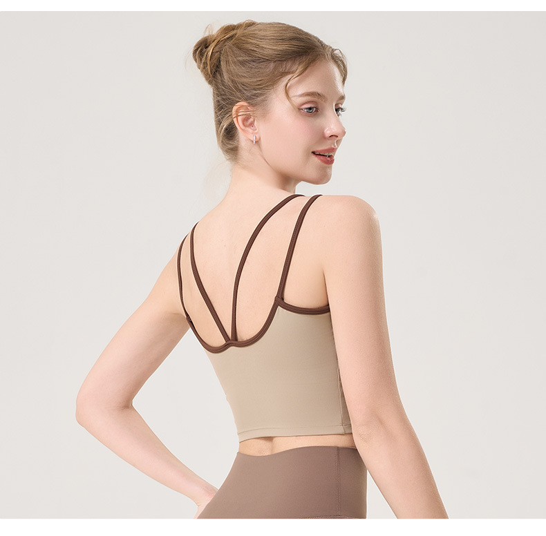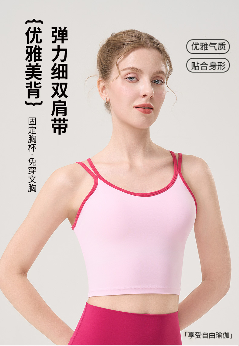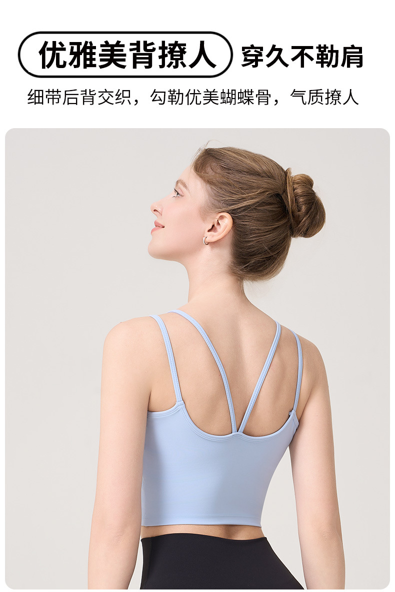 더블 숄더 스트랩, 아름다운 등 스트랩, 요가 조끼, 여성용 스포츠 브라, 푸쉬업 처짐 방지 필라테스 브라, 피트니스 탑