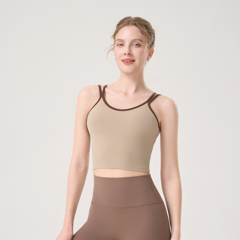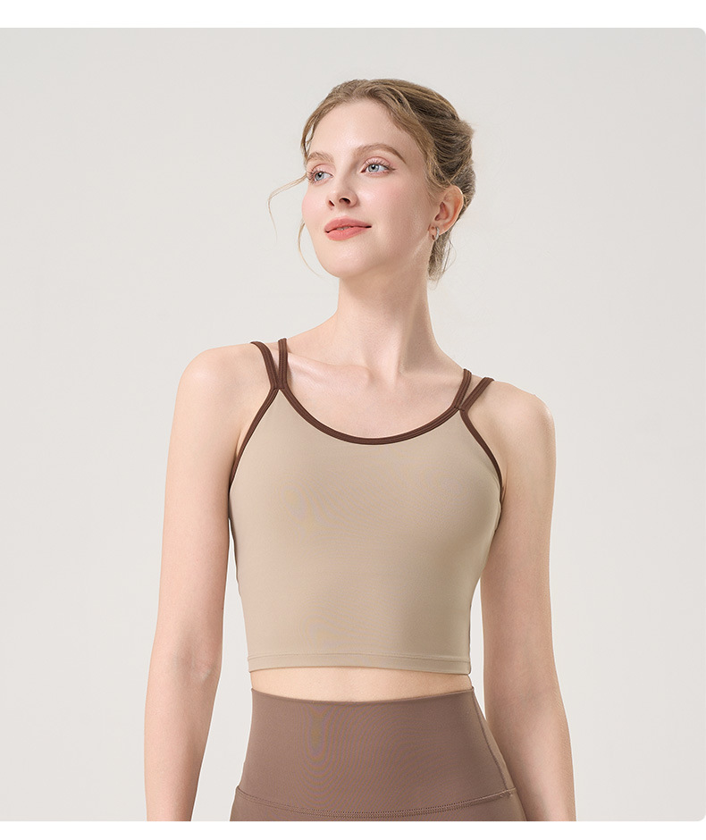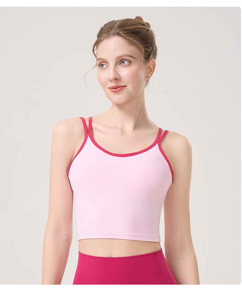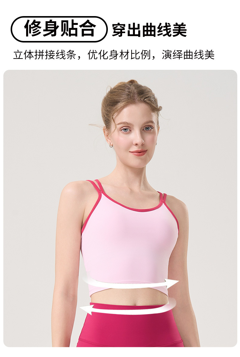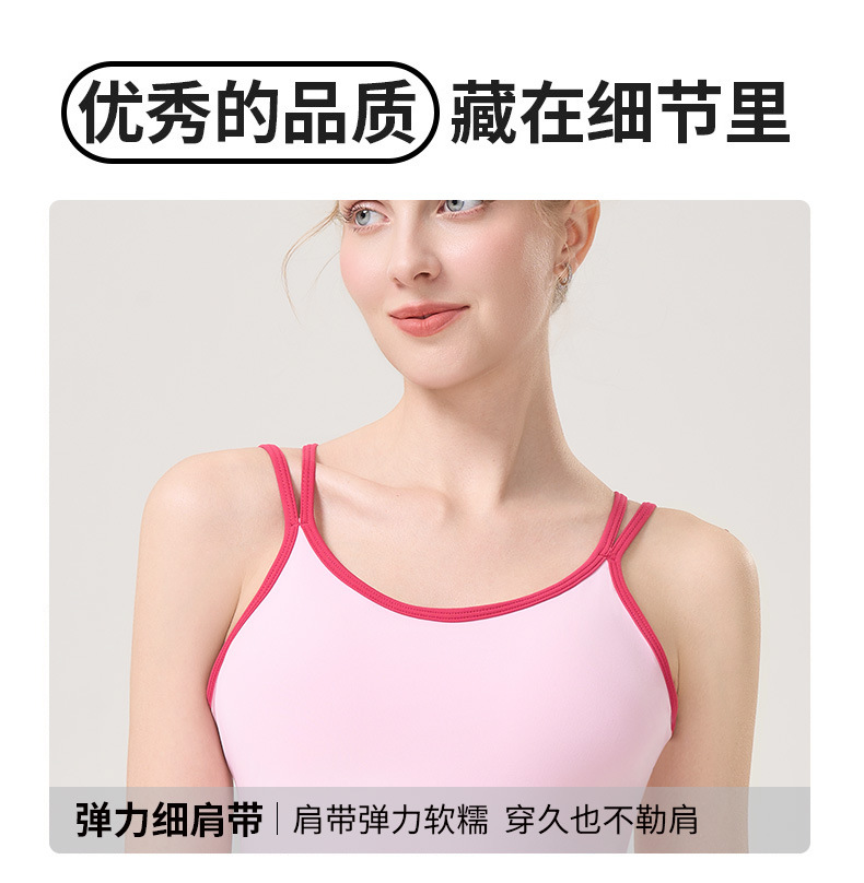 더블 숄더 스트랩, 아름다운 등 스트랩, 요가 조끼, 여성용 스포츠 브라, 푸쉬업 처짐 방지 필라테스 브라, 피트니스 탑