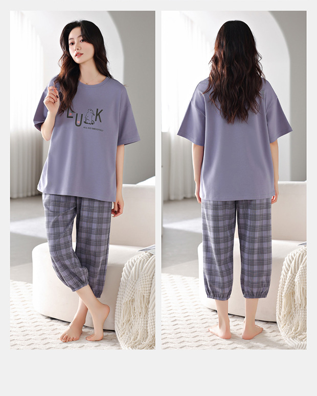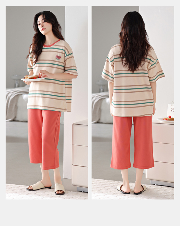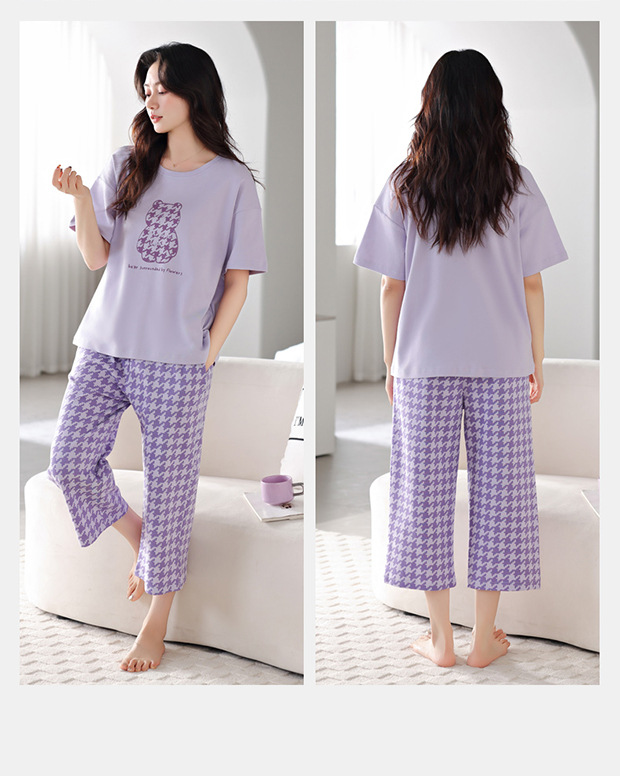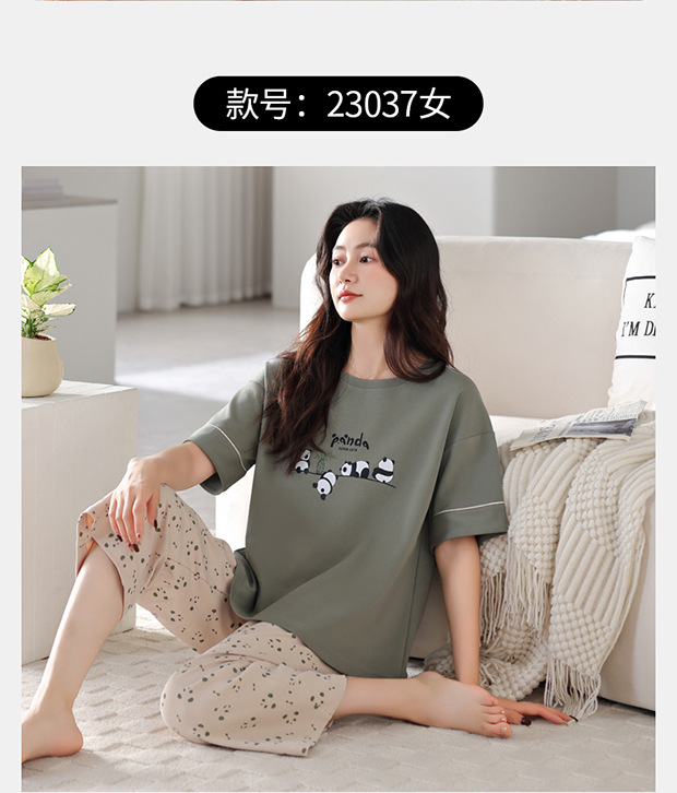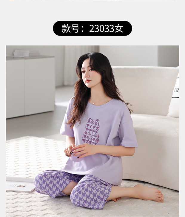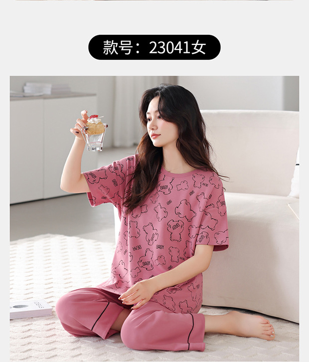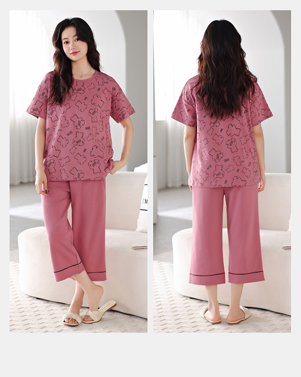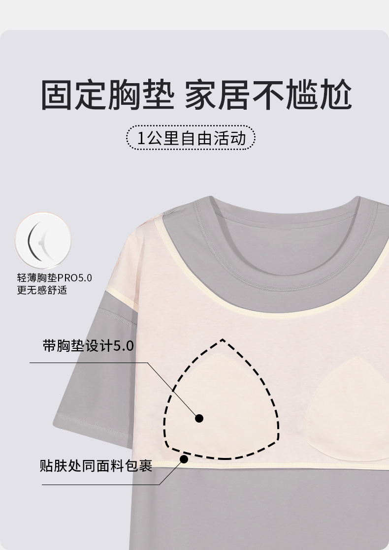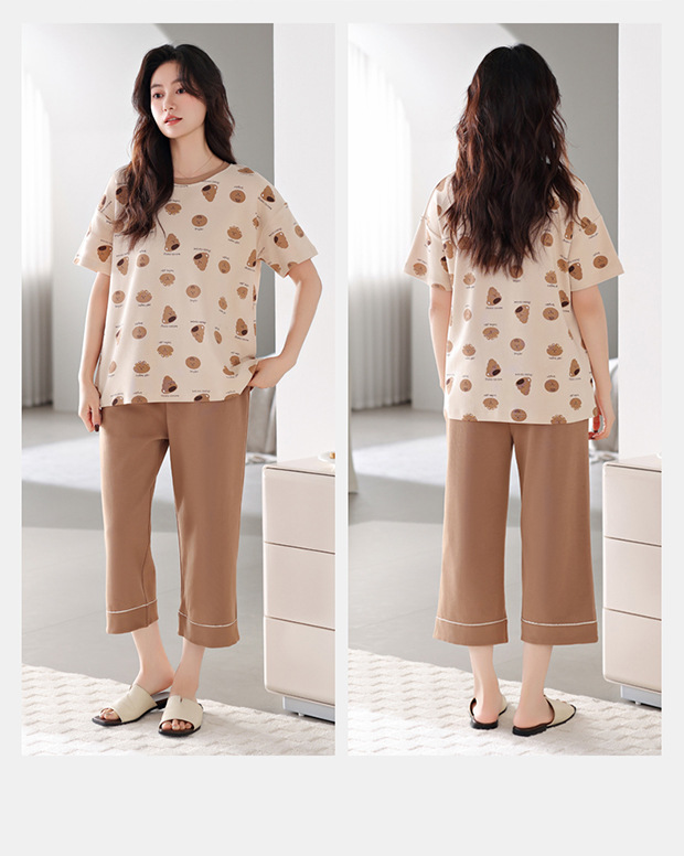 잠옷 여성의 여름 순면 반소매 바지 가슴 패드와 함께 바지 여름 2025 새로운 면 홈 의류 여름 얇은스토어 가기