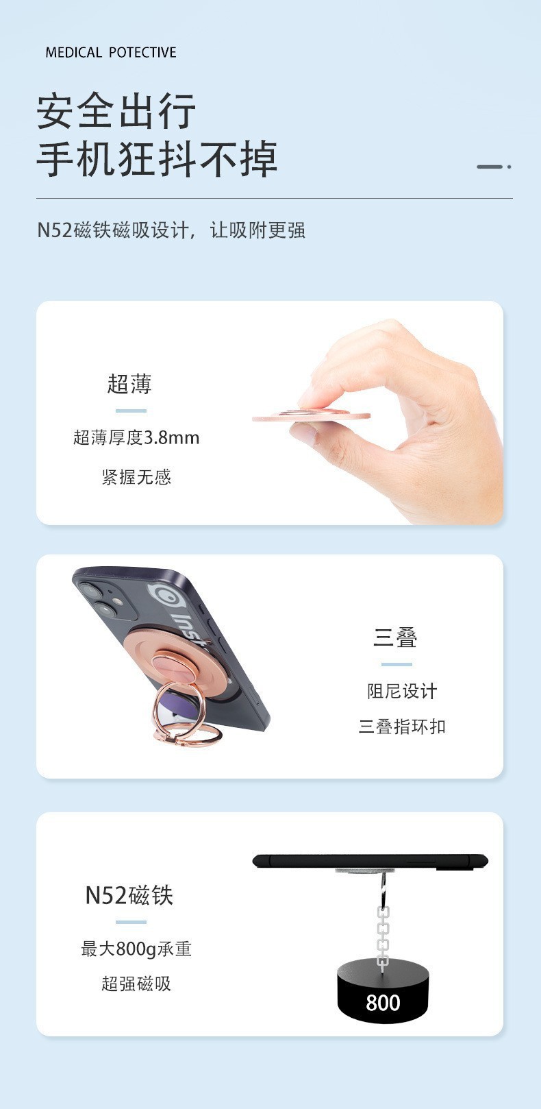 새로운 magsafe 자기 휴대 전화 홀더 모든 금속 휴대 전화 게으른 홀더 자기 링 홀더 다기능스토어 가기