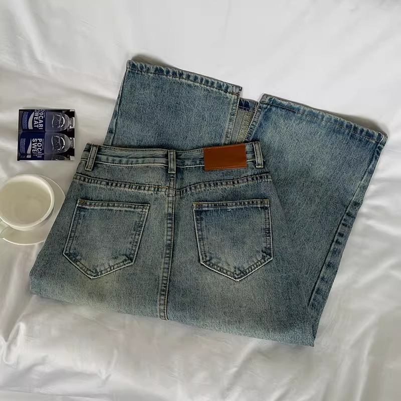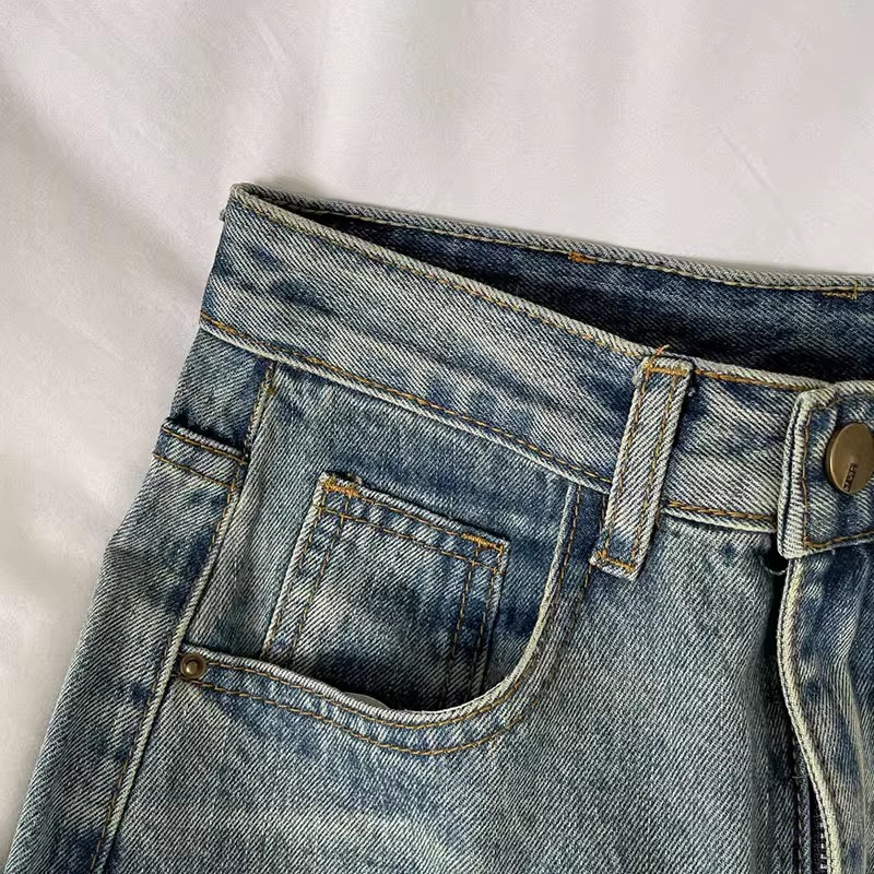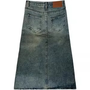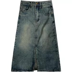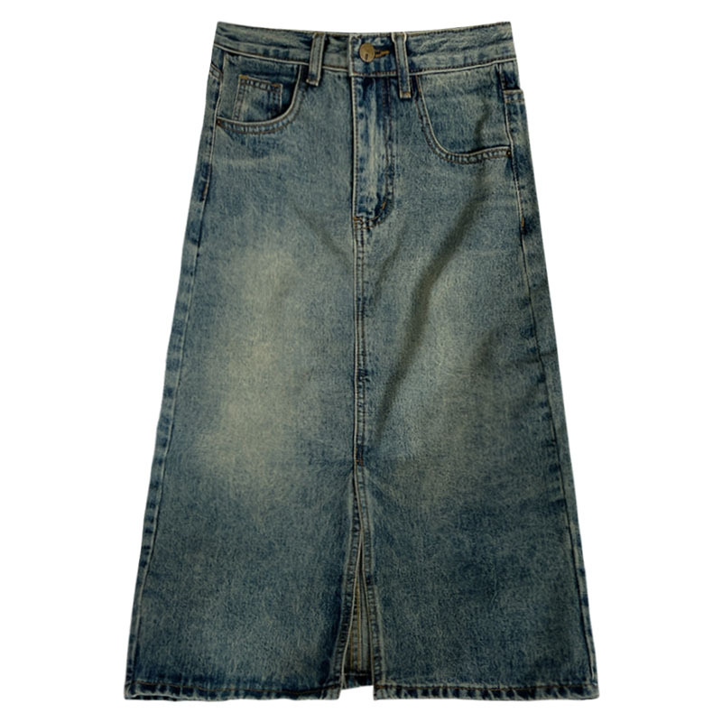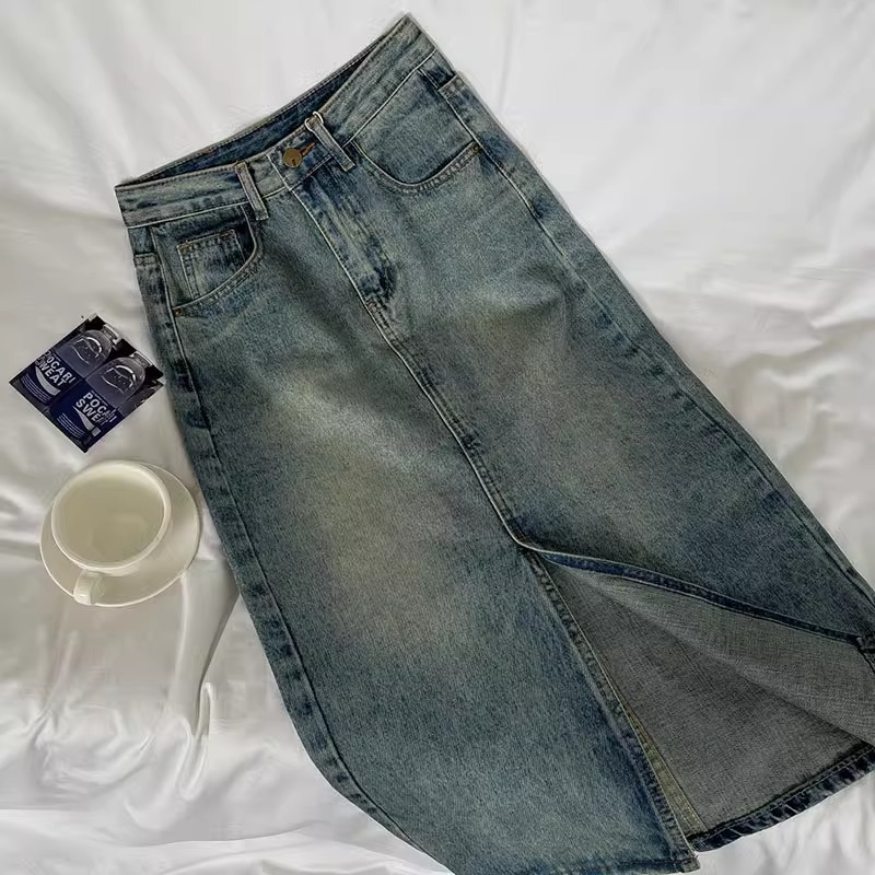 빈티지 높은 허리 데님 스커트 여성 2025 년 여름 폭발 플러스 사이즈 통통녀 배 모양의 몸 슬리밍 프론트 스플릿 A 라인 스커트스토어 가기