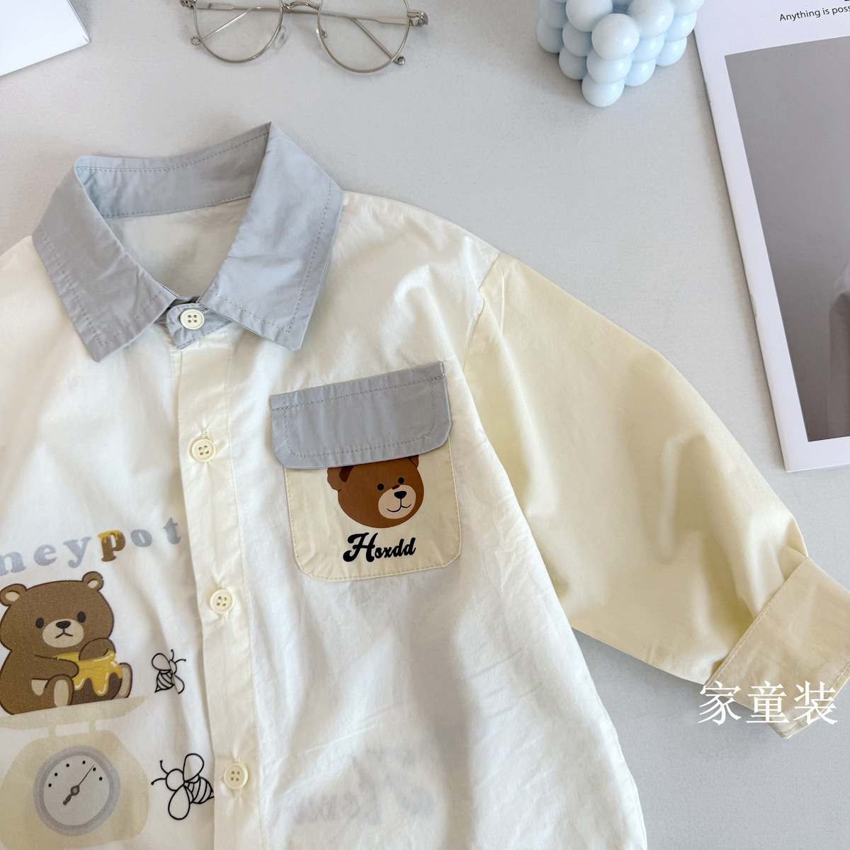 봄 새로운 귀여운 색상 매칭 최고 소년 아기 만화 한국 캐주얼 셔츠 유행 ~ 어린이 서양식 셔츠스토어 가기