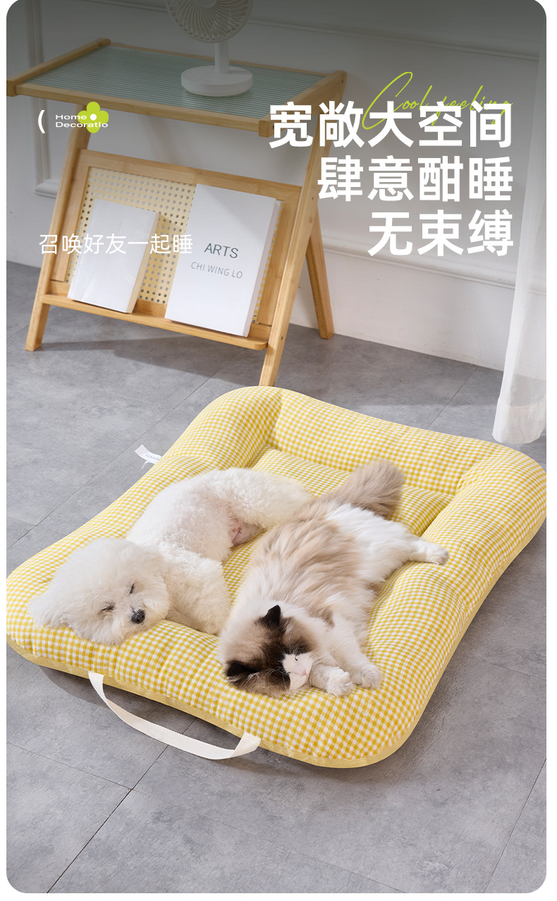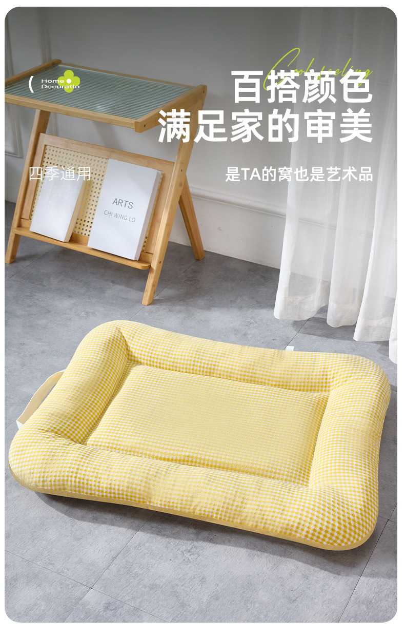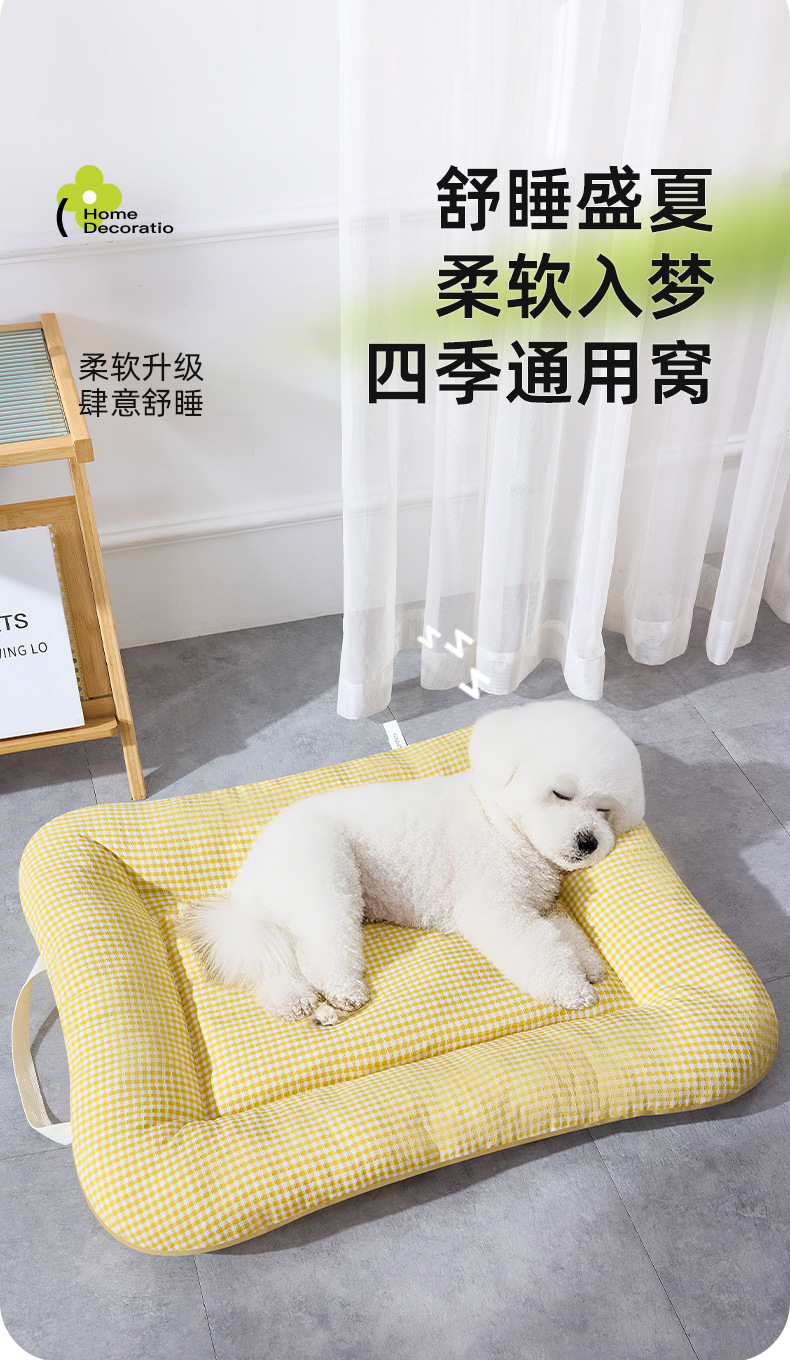 사계절용 개집, 탈부착 및 세탁 가능한 중소형견용 매트리스, 통기성 있는 체크무늬 고양이집, 휴대 가능한 애완동물 집