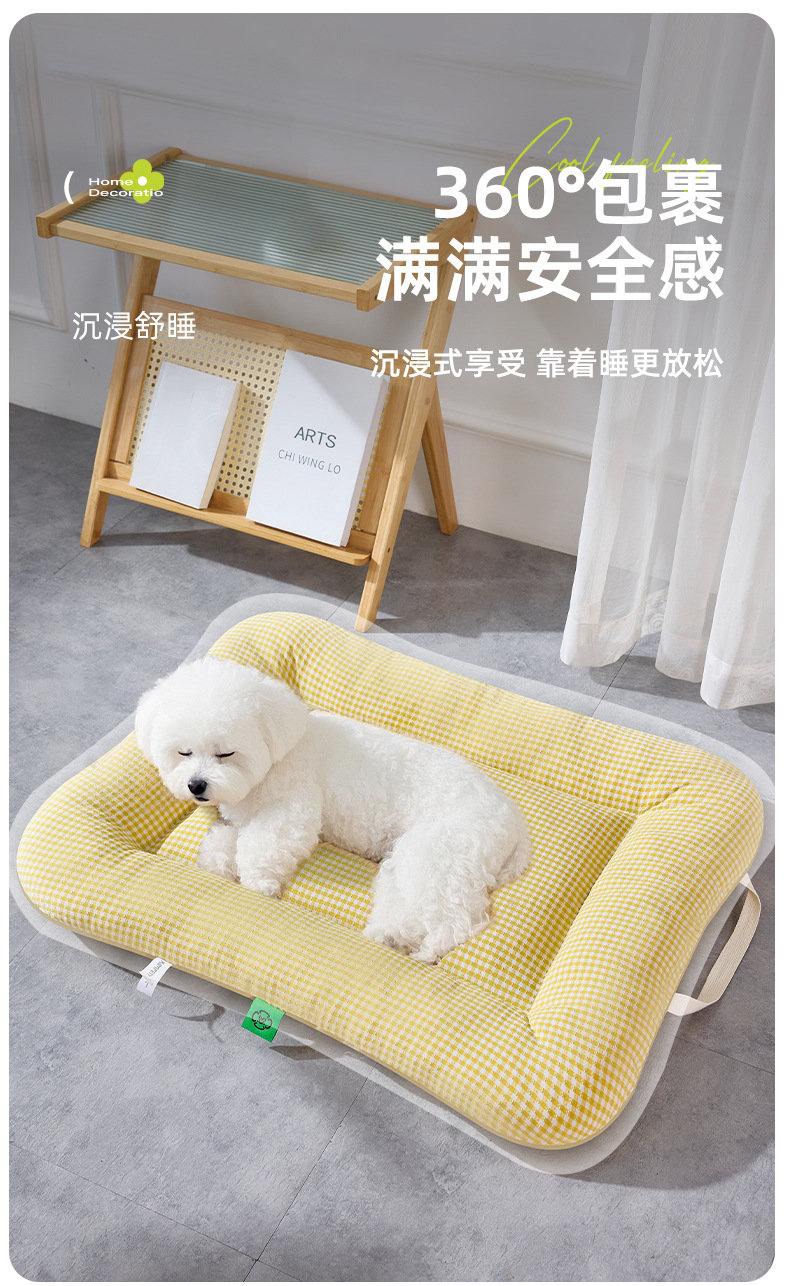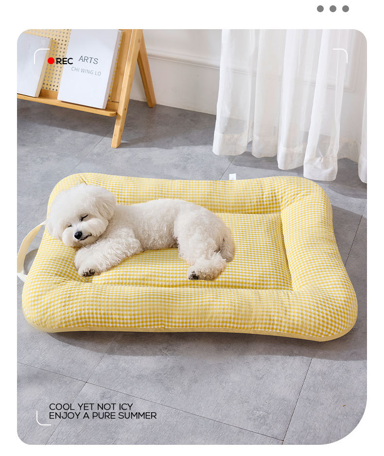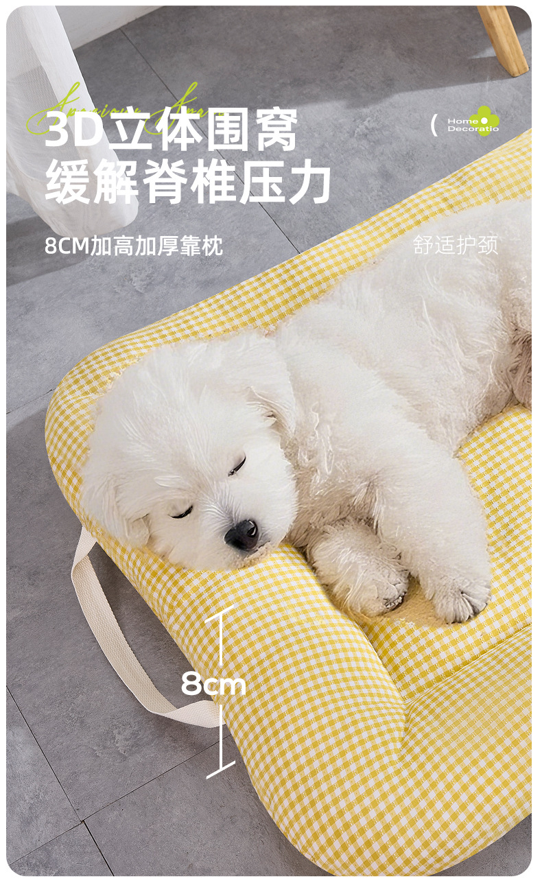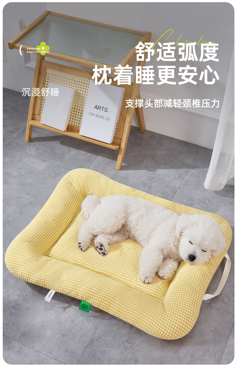 사계절용 개집, 탈부착 및 세탁 가능한 중소형견용 매트리스, 통기성 있는 체크무늬 고양이집, 휴대 가능한 애완동물 집