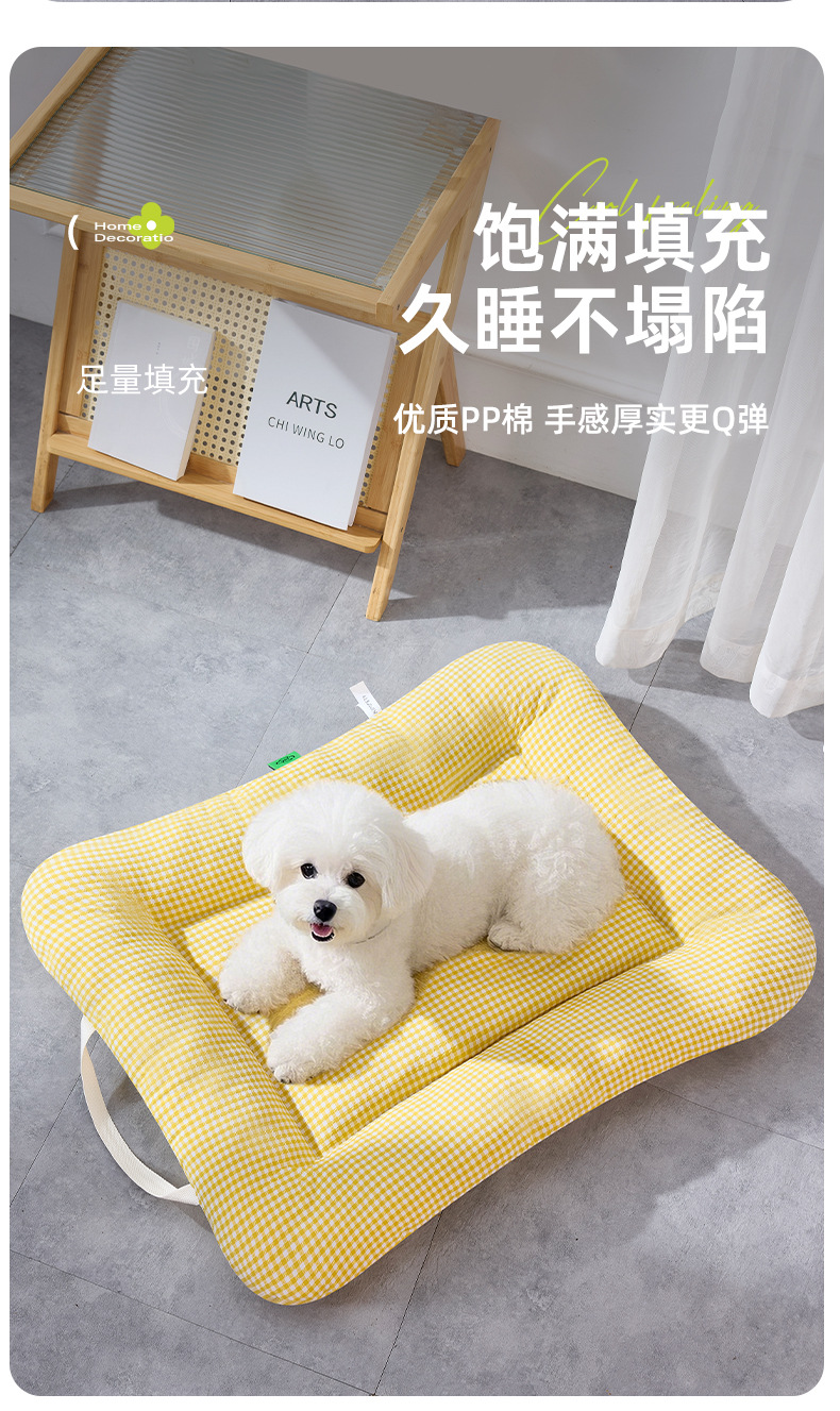 사계절용 개집, 탈부착 및 세탁 가능한 중소형견용 매트리스, 통기성 있는 체크무늬 고양이집, 휴대 가능한 애완동물 집스토어 가기