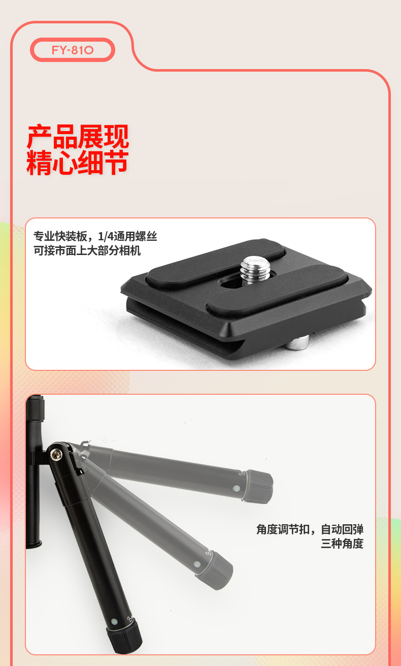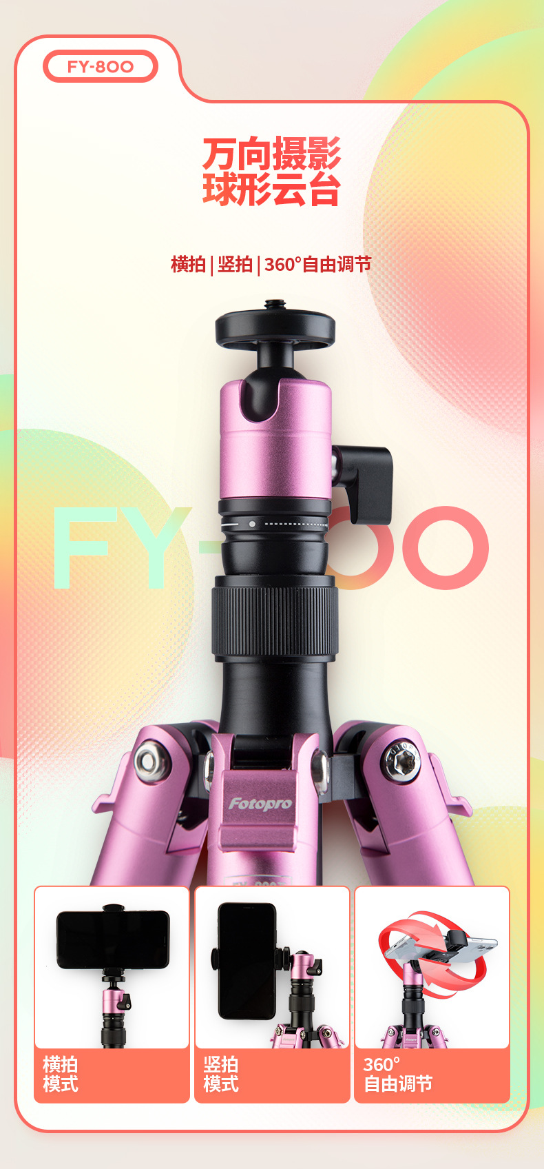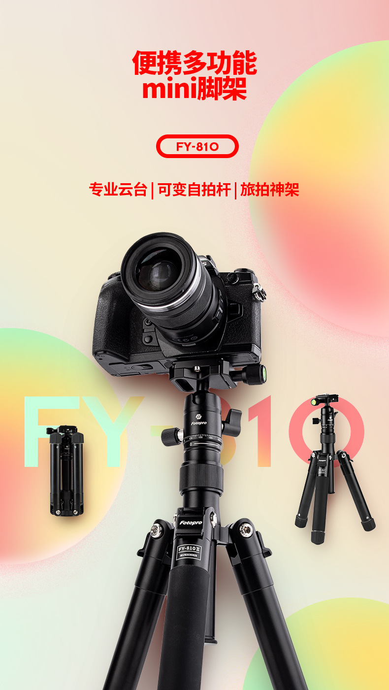 Futaba FY810 디지털 파노라마 짐벌 셀카봉 데스크탑 삼각대 디지털 휴대폰 3가지 모드 삼각대