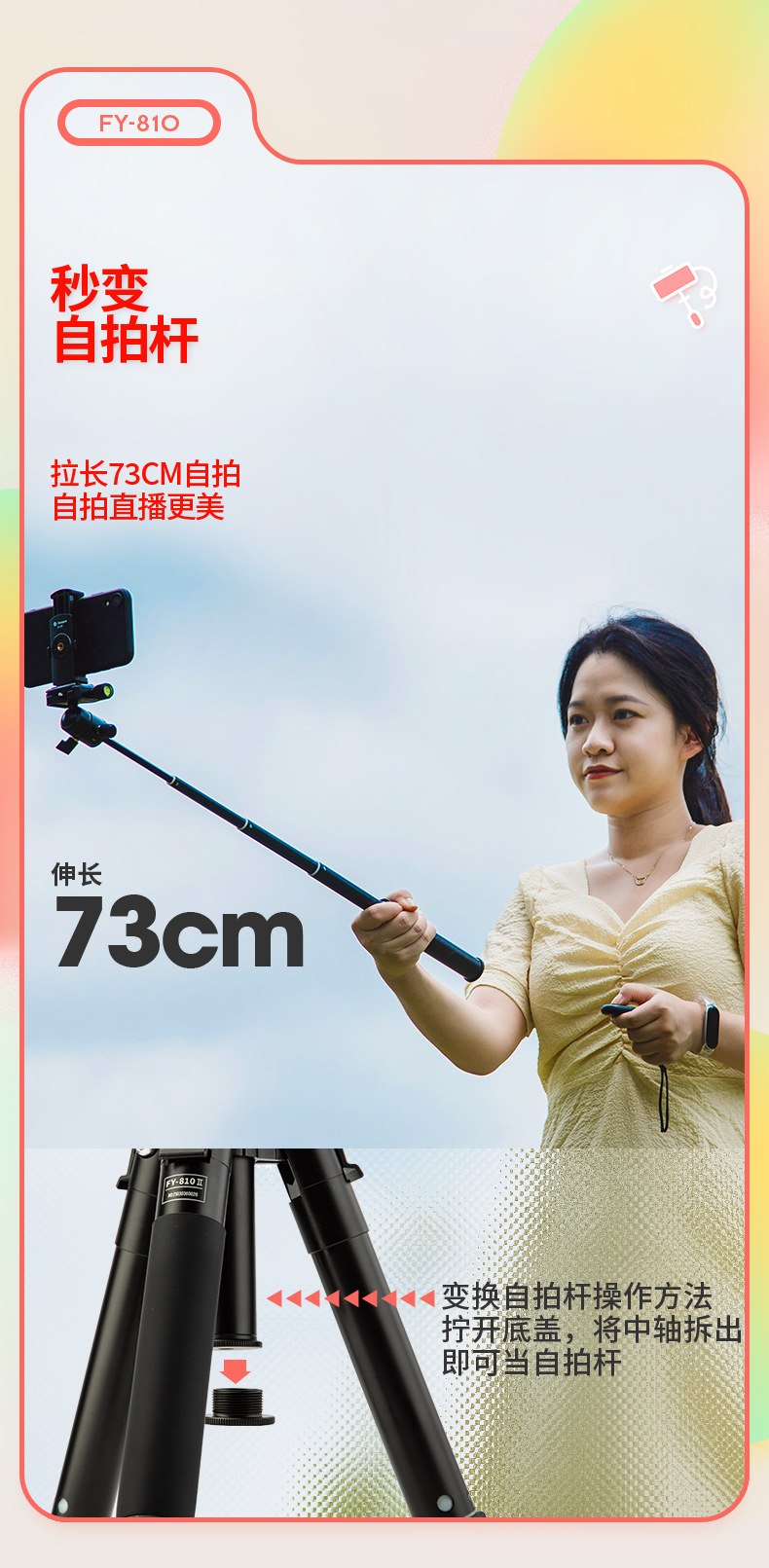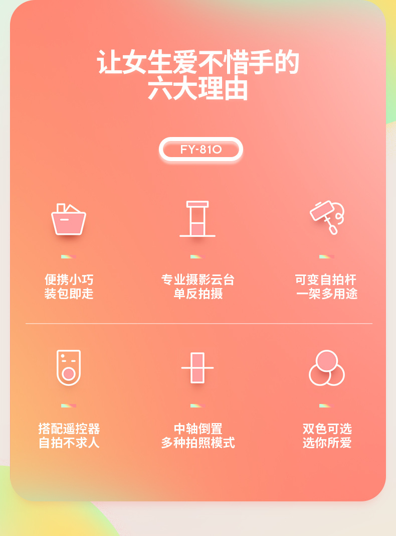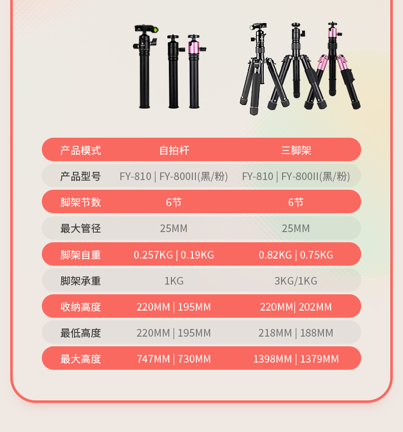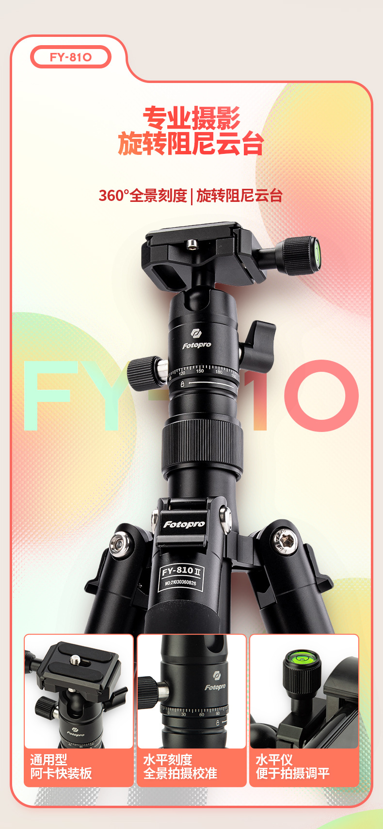Futaba FY810 디지털 파노라마 짐벌 셀카봉 데스크탑 삼각대 디지털 휴대폰 3가지 모드 삼각대