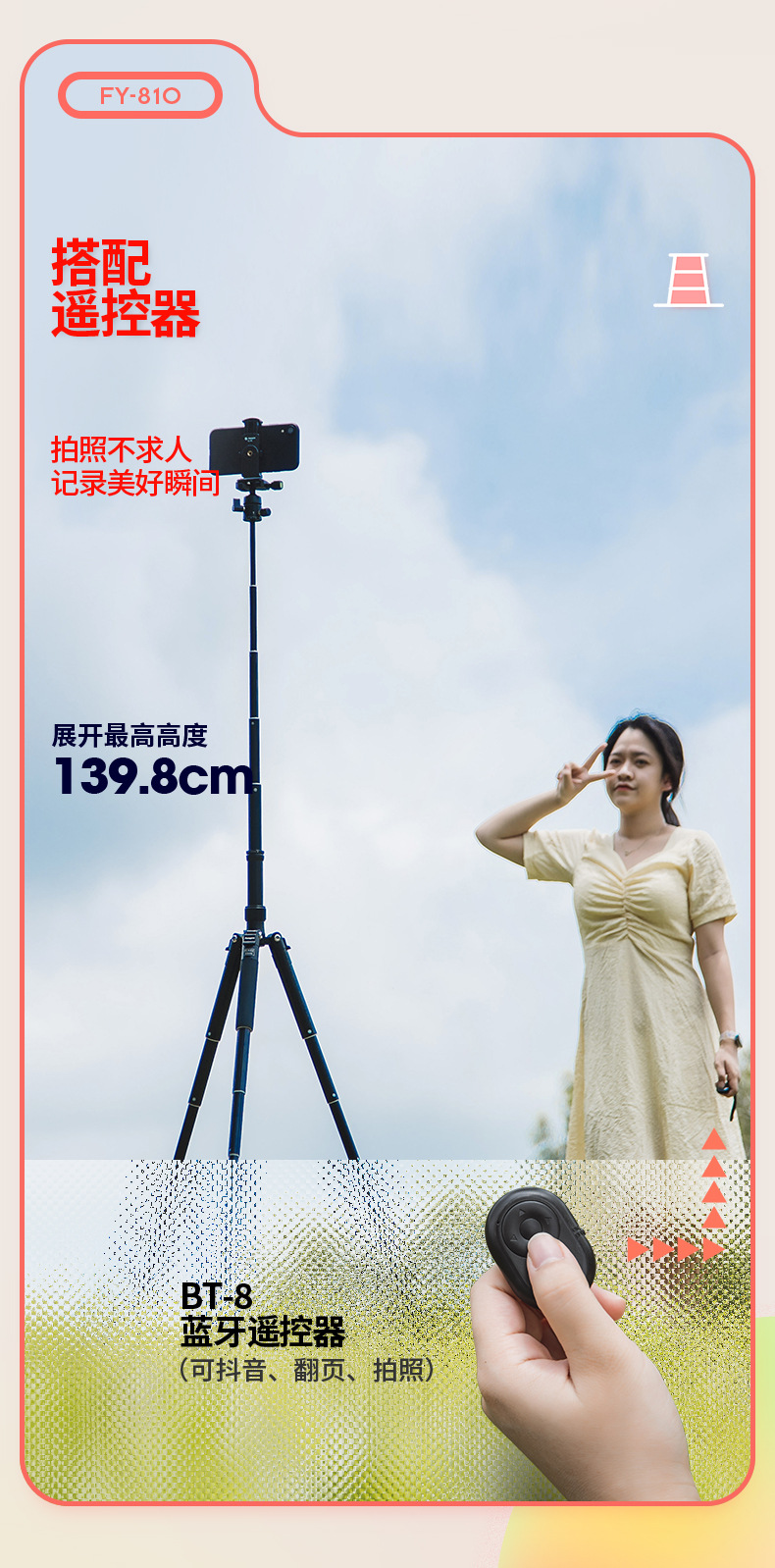 Futaba FY810 디지털 파노라마 짐벌 셀카봉 데스크탑 삼각대 디지털 휴대폰 3가지 모드 삼각대스토어 가기
