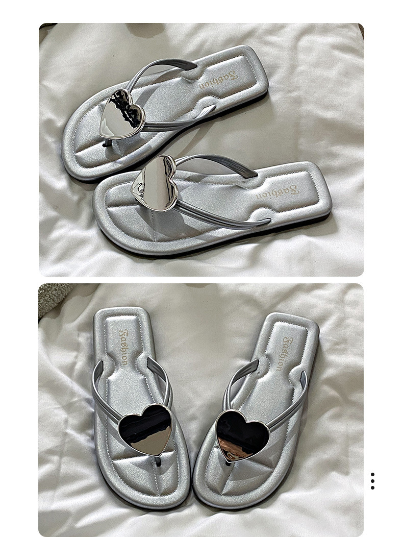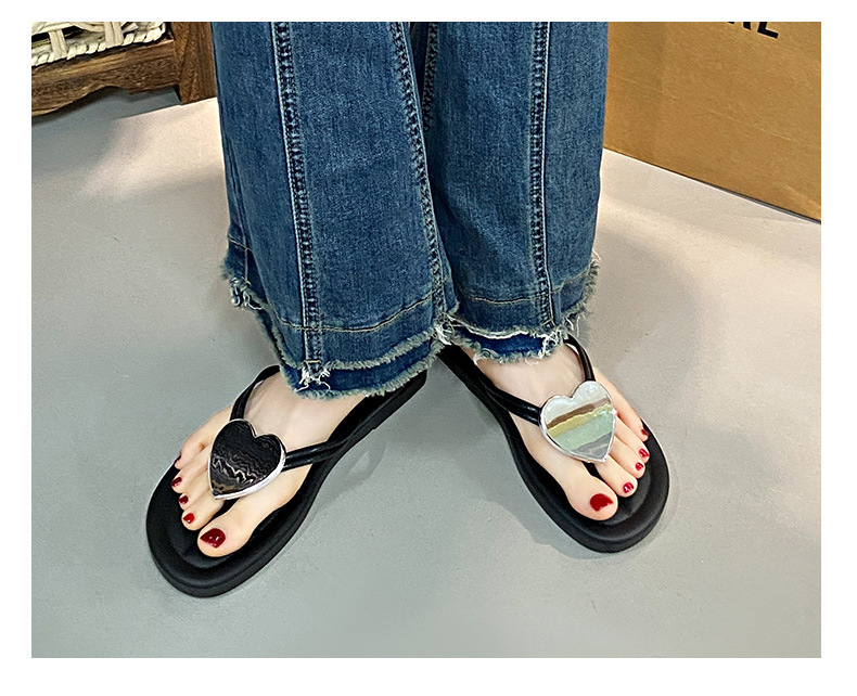 새로운 여성 봄 여름 플립 플롭 복숭아 하트 모양의 간단하고 다재다능한 야외 해변 신발 소녀 패션 매칭 샌들스토어 가기