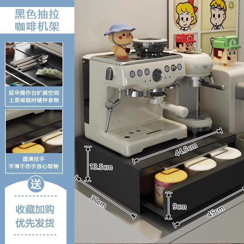 • 업그레이드형 슬라이딩 커피 머신 받침대 - 블랙 (뒷판 포함)