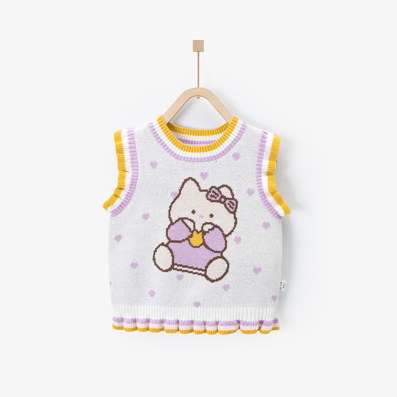 아기 조끼 봄과 가을 겉옷 아기 소녀 니트 조끼 조끼 만화 옷 탑 민소매 스웨터스토어 가기