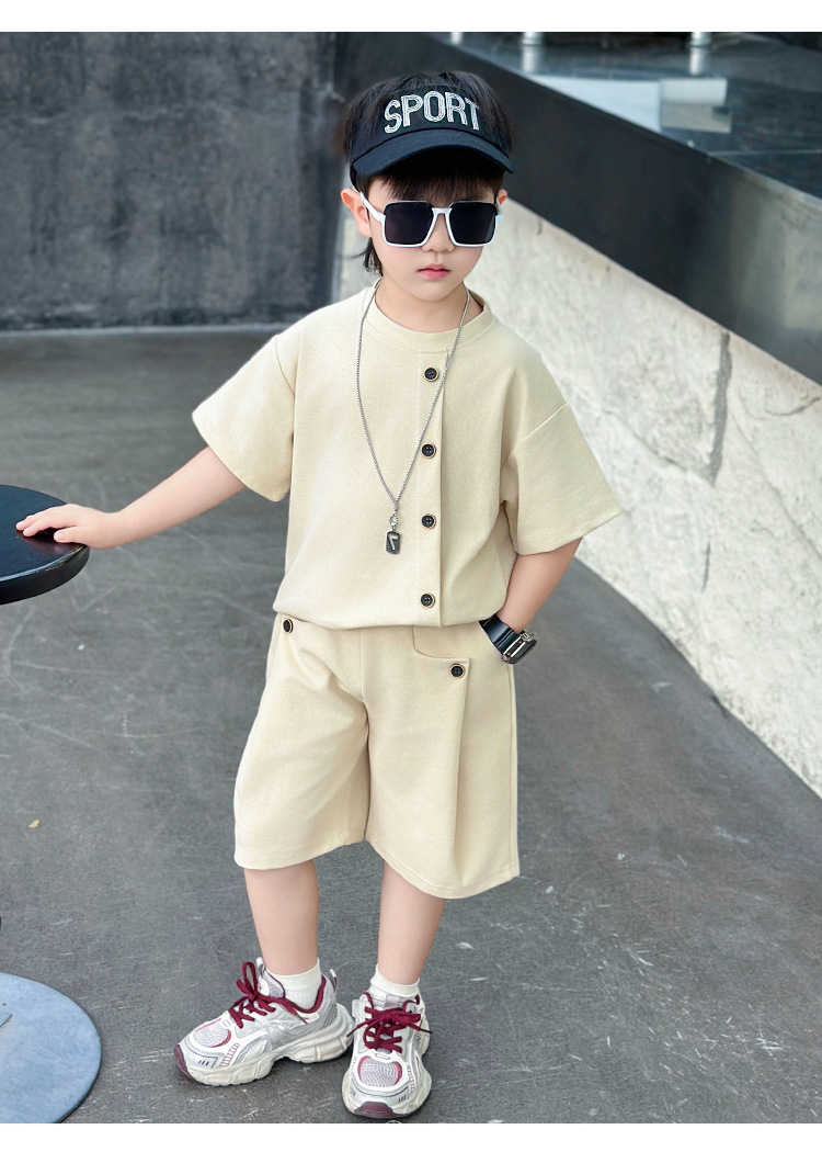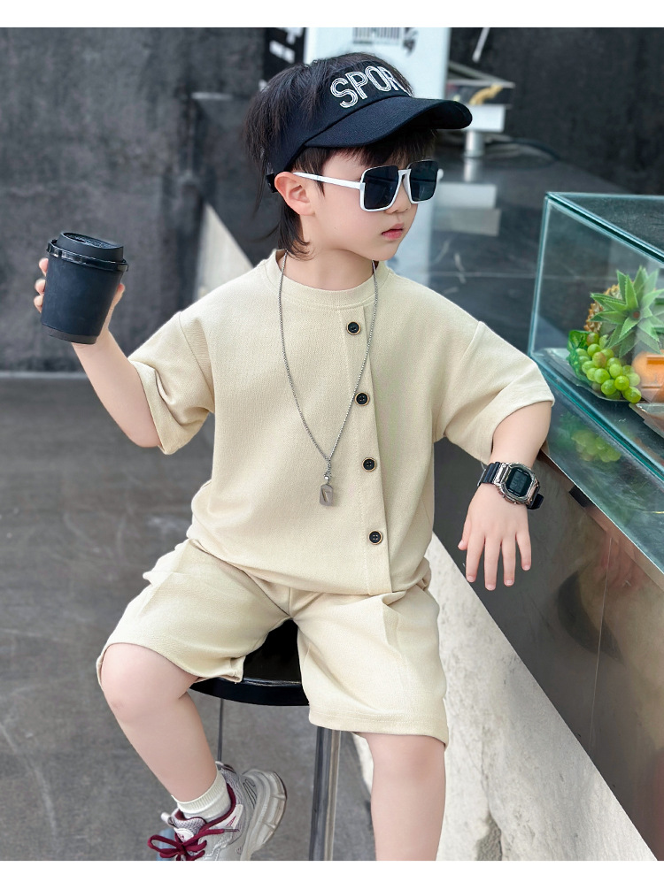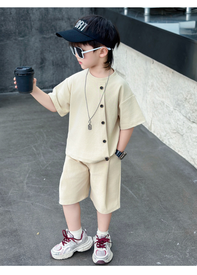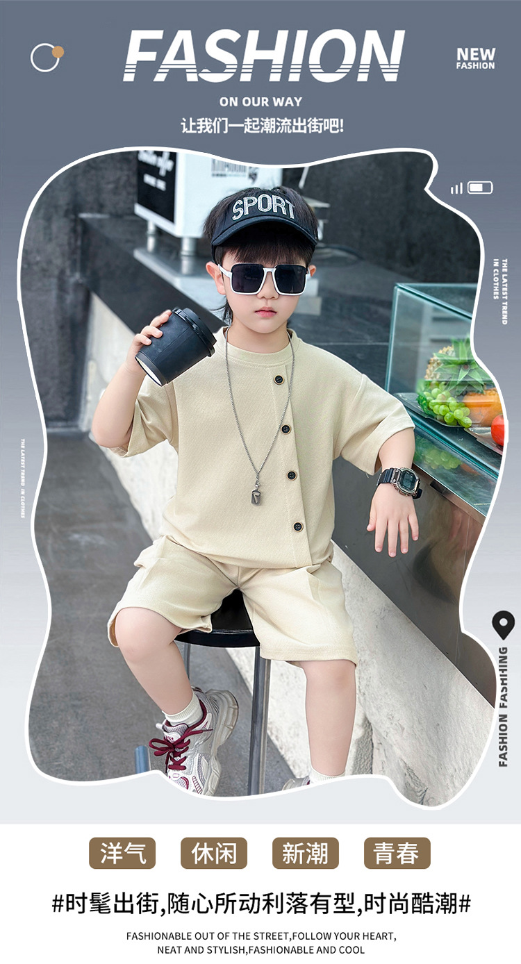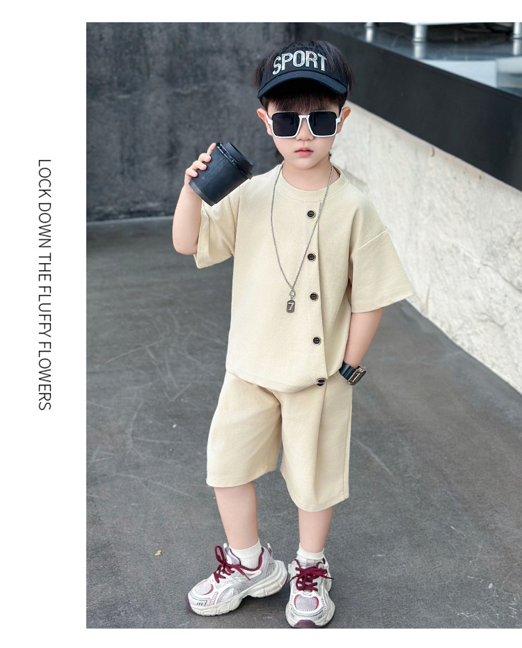 남학생의 반팔 7 버튼 세트 2025 년 여름 새 어린이 잘 생긴 투피스 세트 아동복 대외 무역 조수스토어 가기