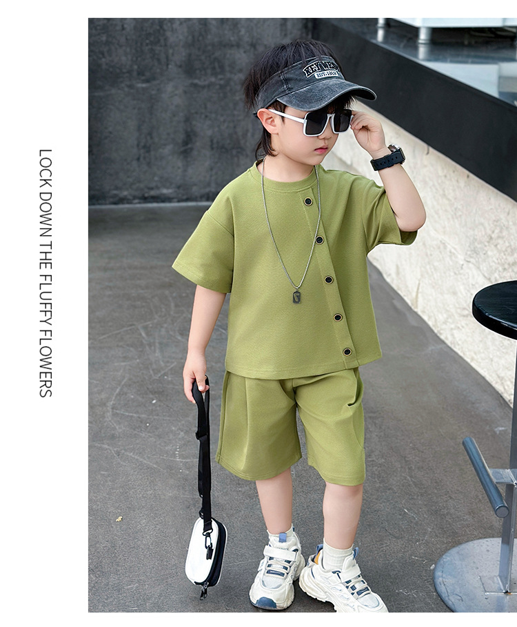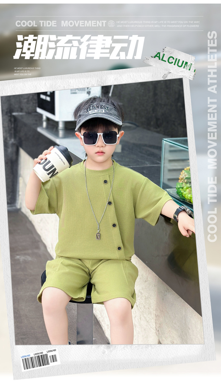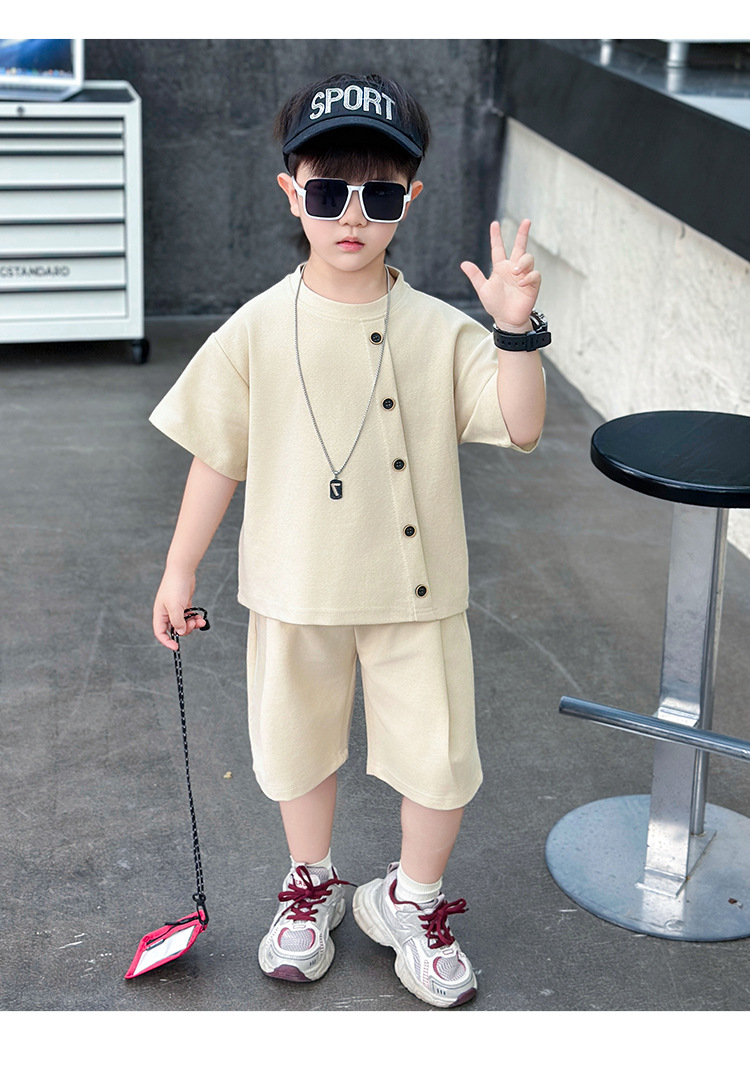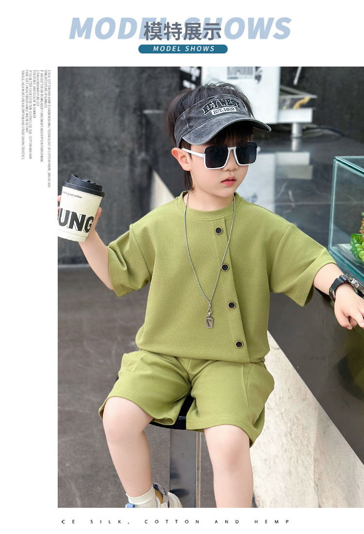 남학생의 반팔 7 버튼 세트 2025 년 여름 새 어린이 잘 생긴 투피스 세트 아동복 대외 무역 조수스토어 가기