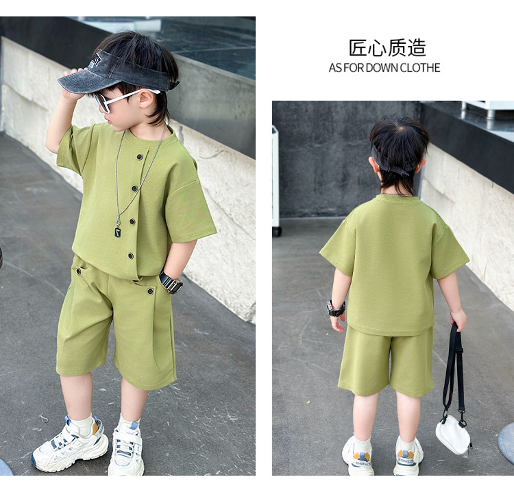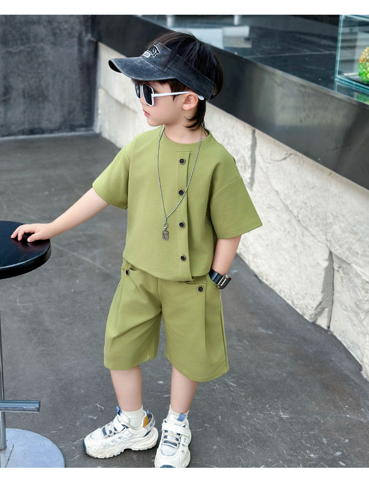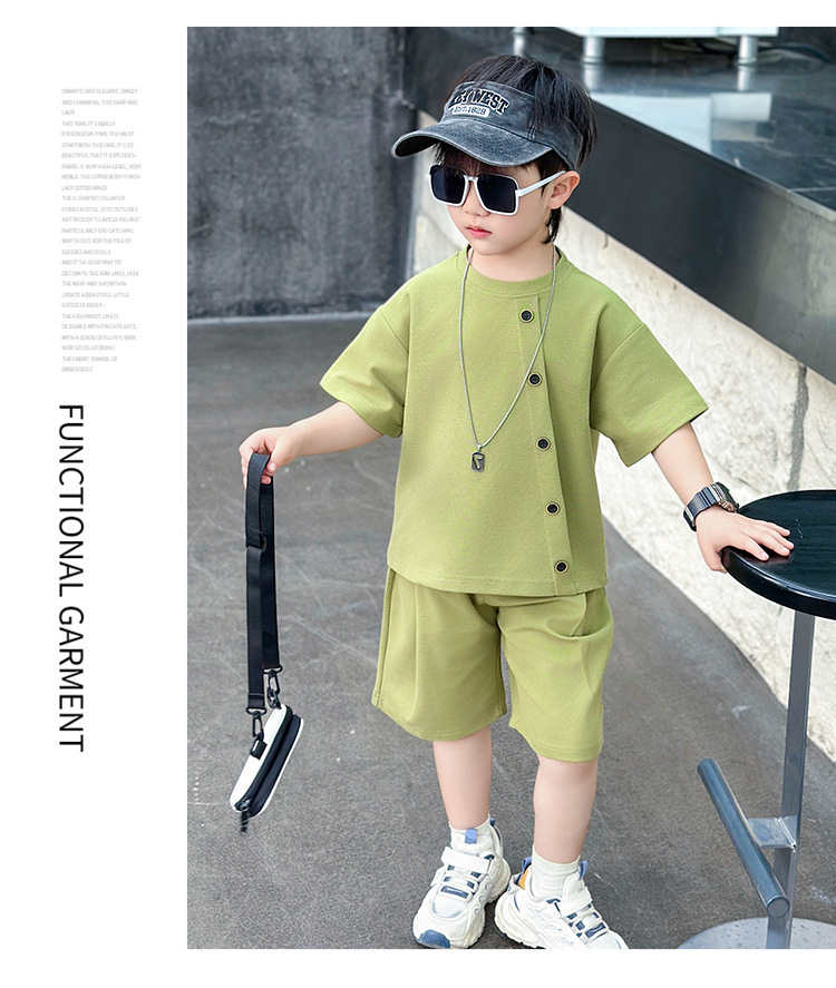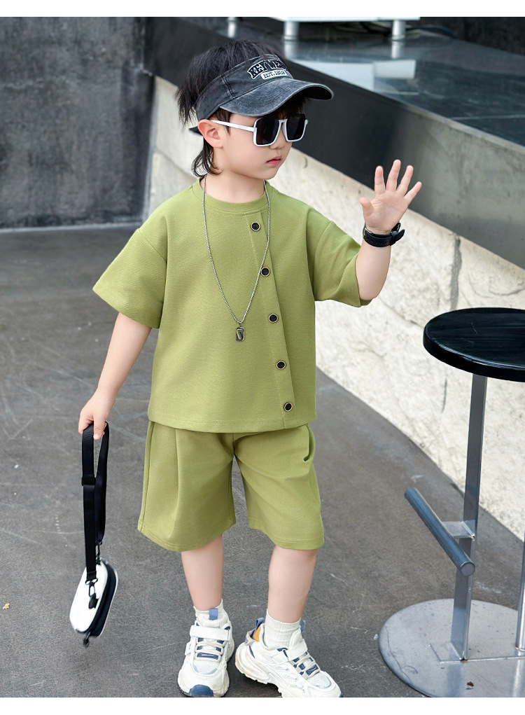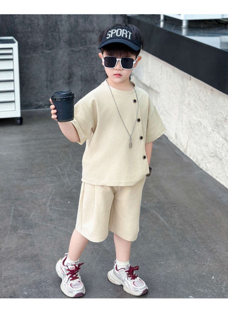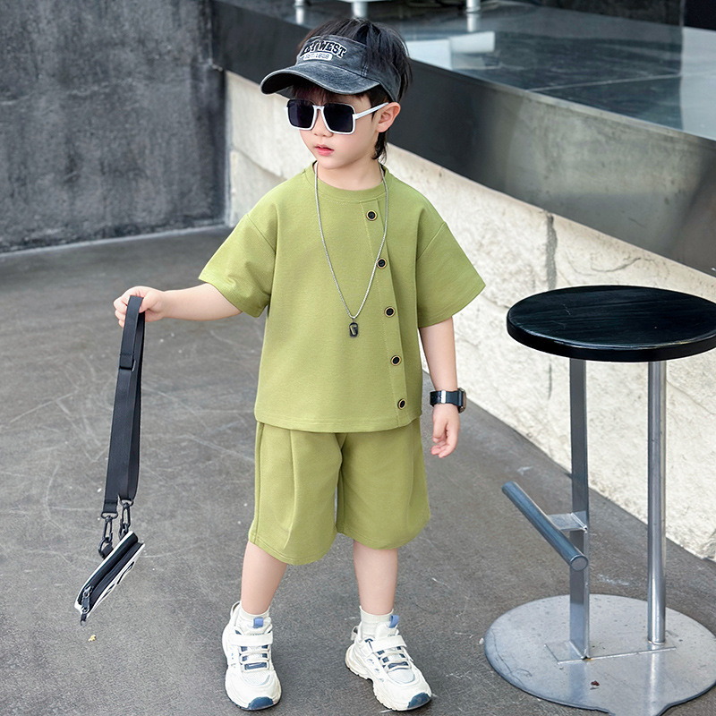 남학생의 반팔 7 버튼 세트 2025 년 여름 새 어린이 잘 생긴 투피스 세트 아동복 대외 무역 조수