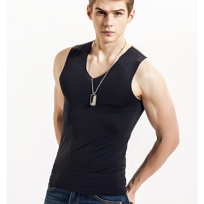 남자 트렌디 한 아이스 실크 조끼 남자 트렌디 한 얇은 민소매 티셔츠 피트니스 꽉 맞는 스포츠 농구 빠른 건조 아우터 웨이스트 코트