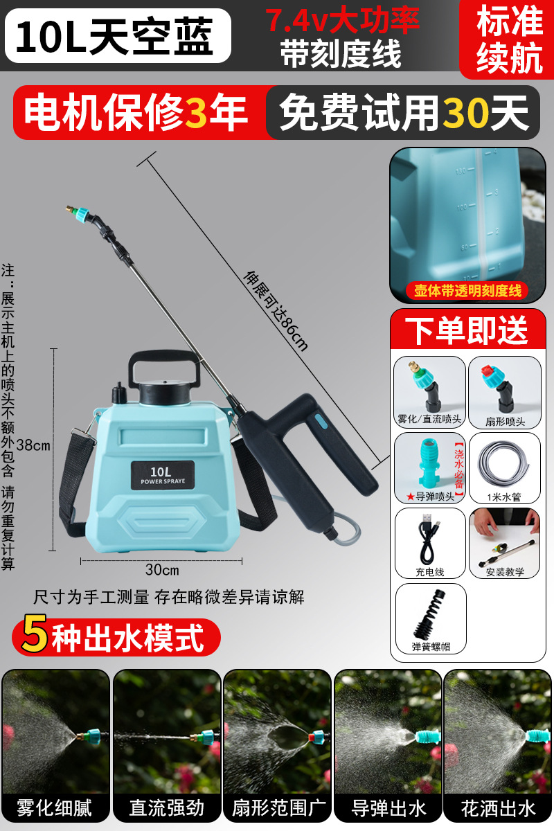 • [85%의 사람들이 선택] 10L 스카이블루 [7.4v 고출력] 업그레이드된 배터리 수명