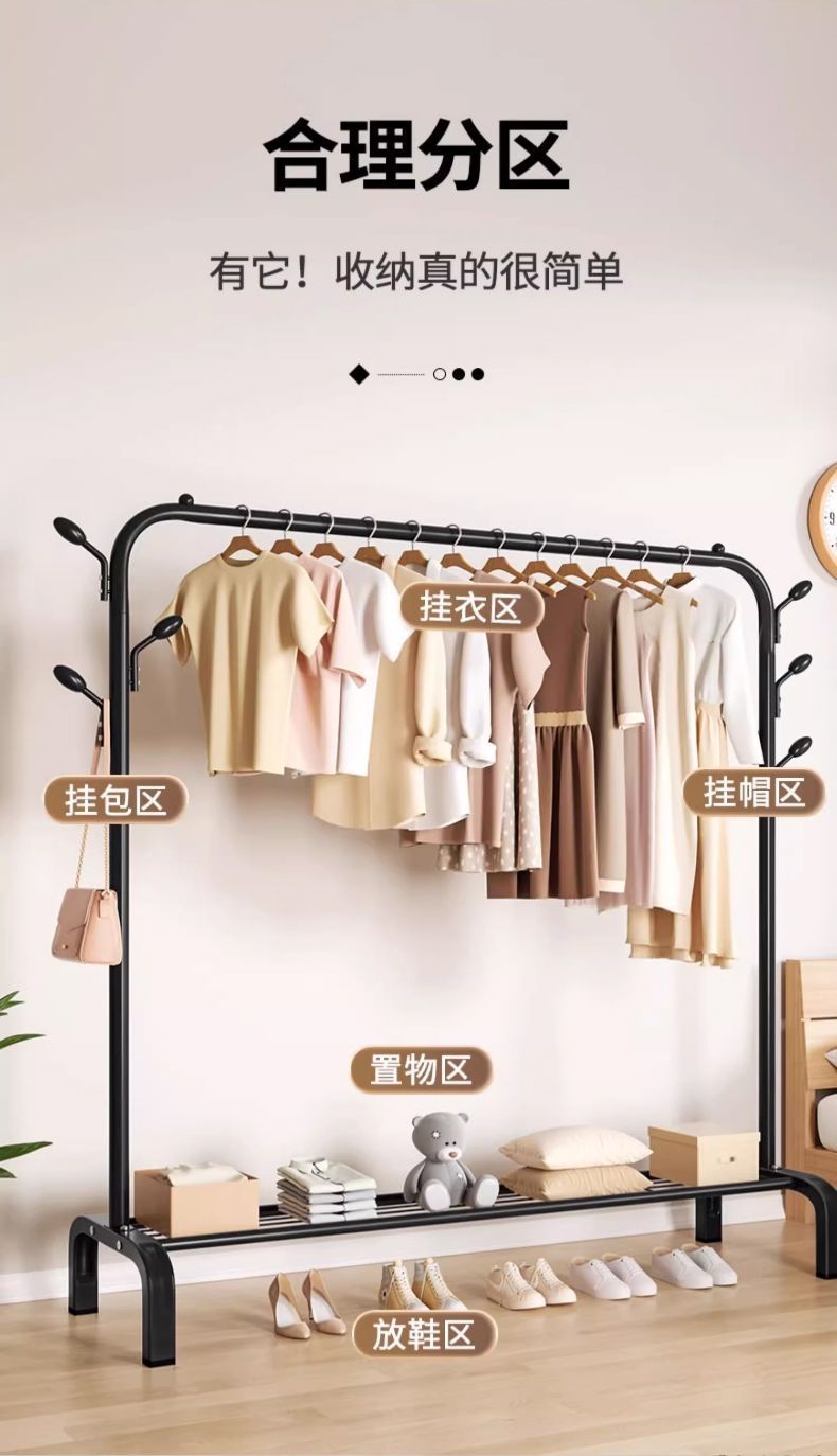 코트 랙, 바닥에서 천장까지 침실 옷걸이, 이동식 옷 보관 랙, 인터넷 연예인 라이트 럭셔리 홈 실내 옷 건조 랙스토어 가기