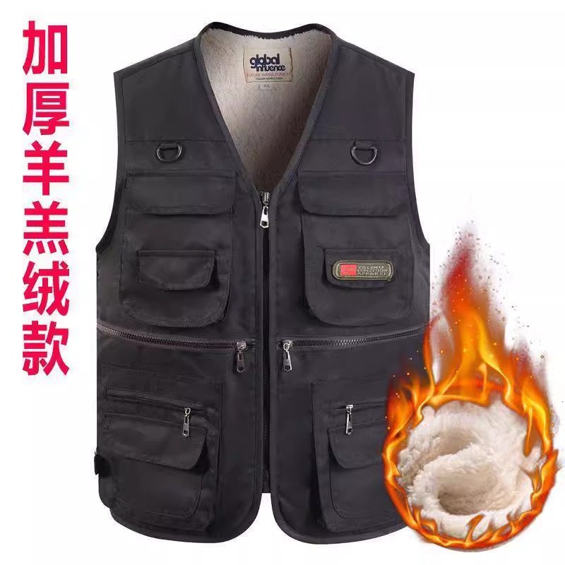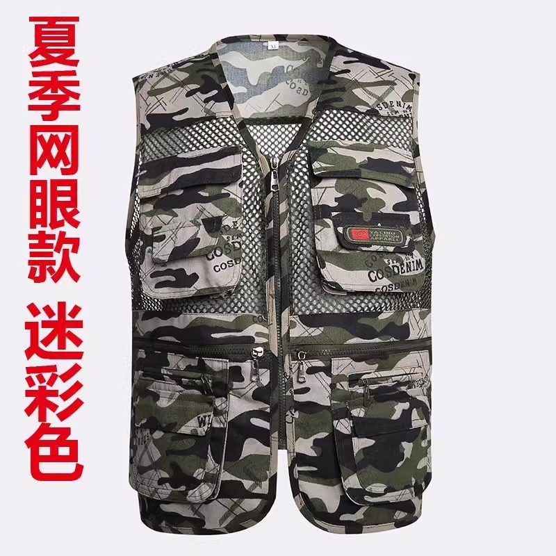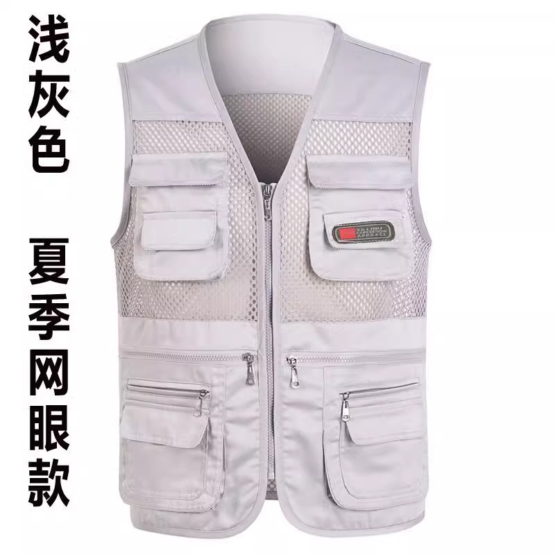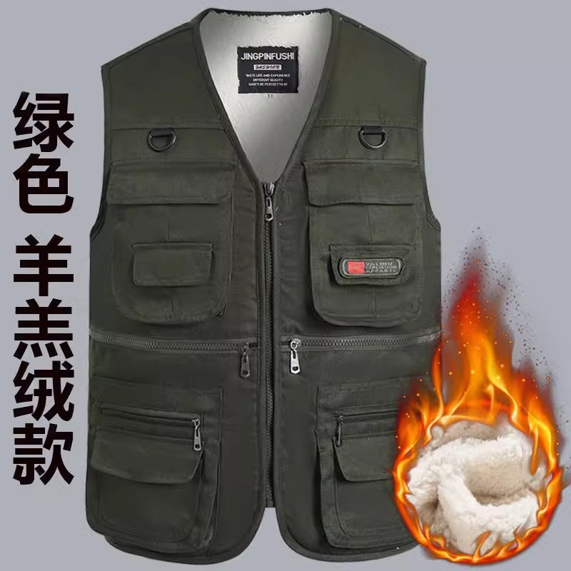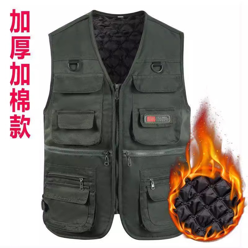 봄과 가을 중년 남성 V 넥 조끼 멀티 포켓 조끼 조끼 아빠 야외 사진 낚시 조끼