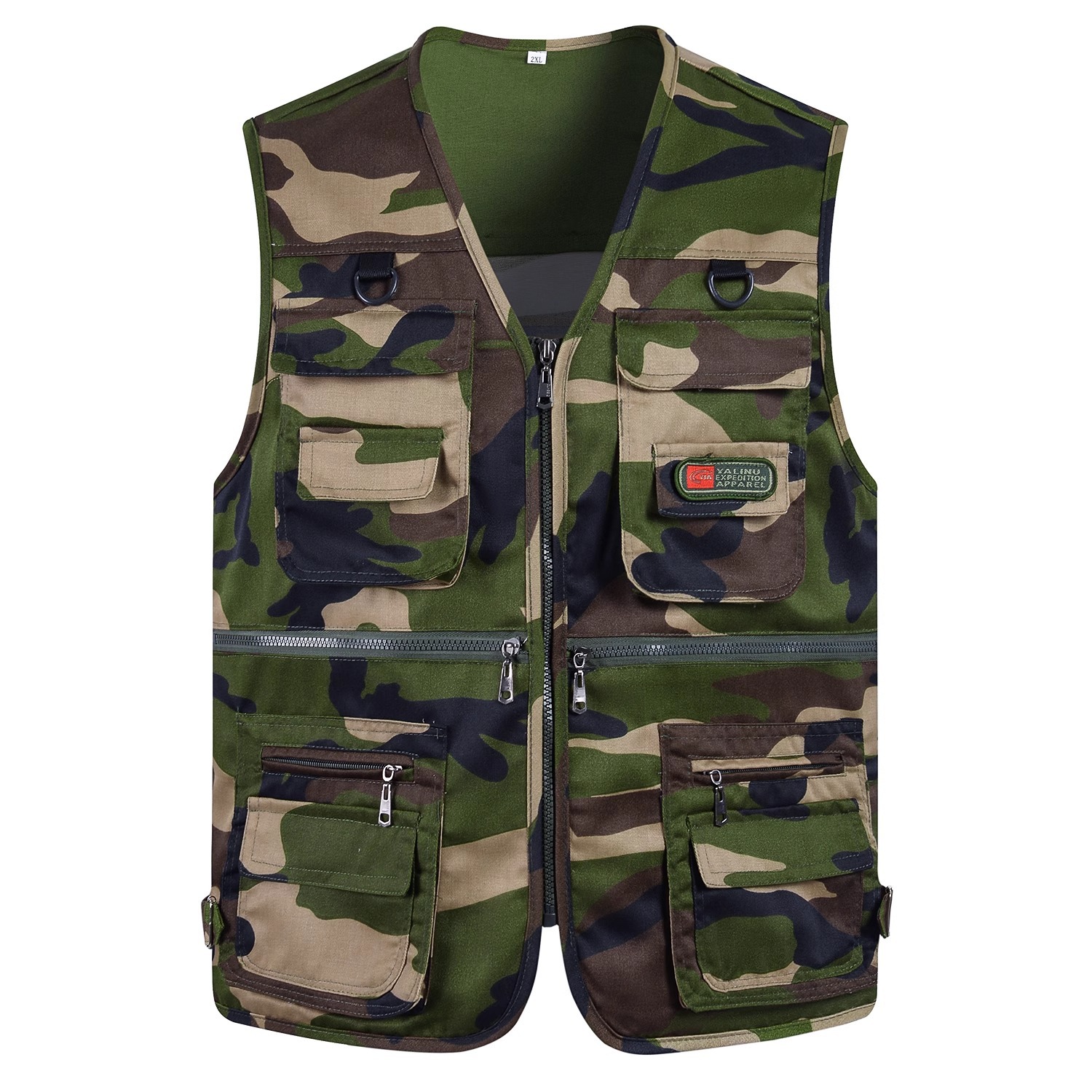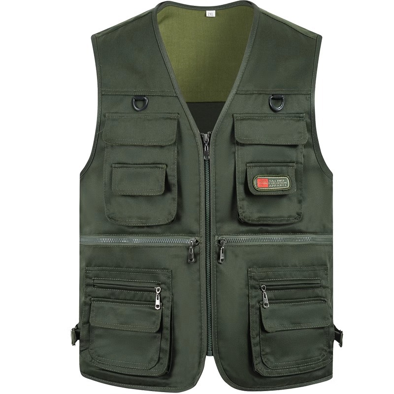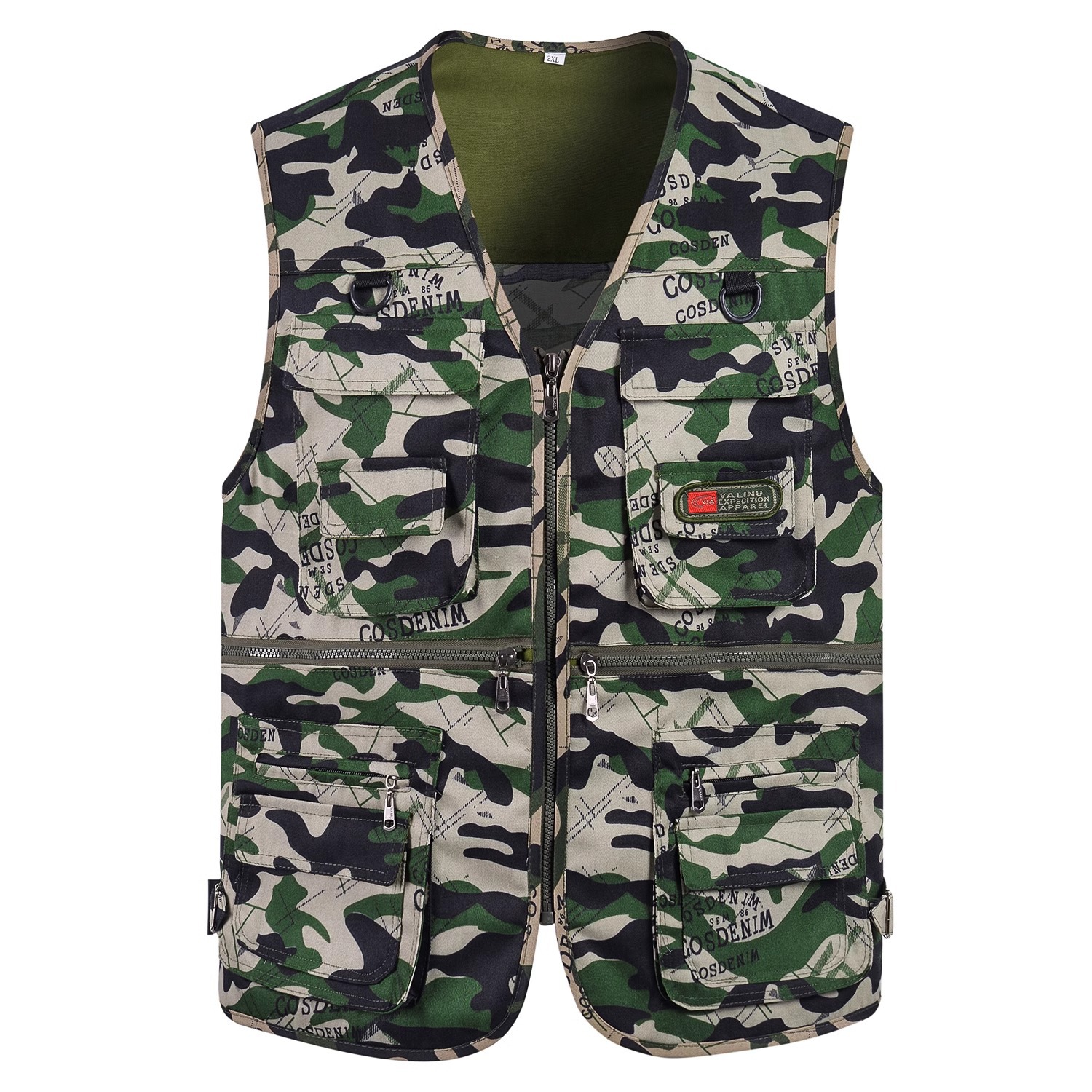 봄과 가을 중년 남성 V 넥 조끼 멀티 포켓 조끼 조끼 아빠 야외 사진 낚시 조끼