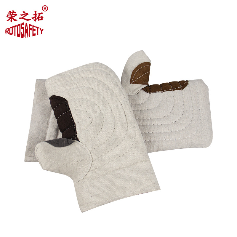 고온 방지 및 화상 방지 장갑, 두 손가락 면 슬랩, 두꺼운 긴 캔버스, 전자 레인지 베이킹, 노동 보호 및 단열